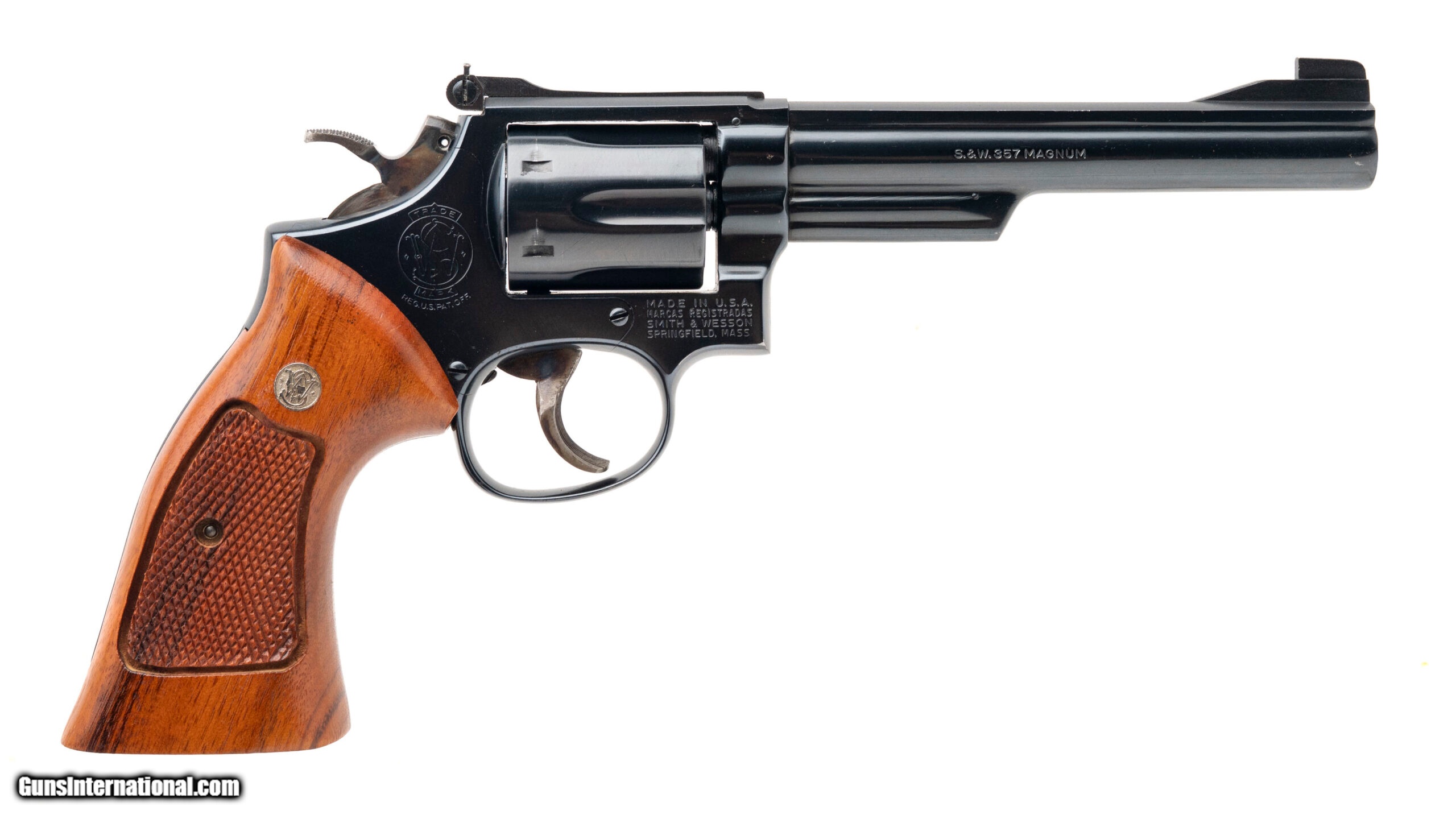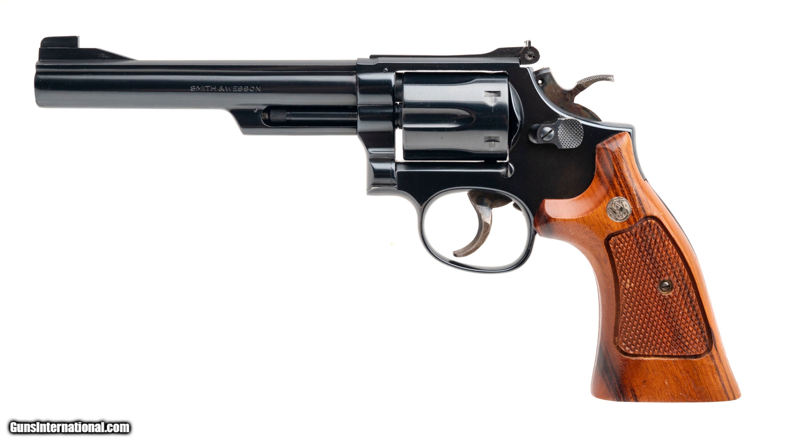 Description: "SN: 55K2863. Made in 1979, .357 Magnum with a 6"" barrel. Blued K-frame revolver, pinned & recessed with checkered wood grips. Very good condition overall. SOLD |