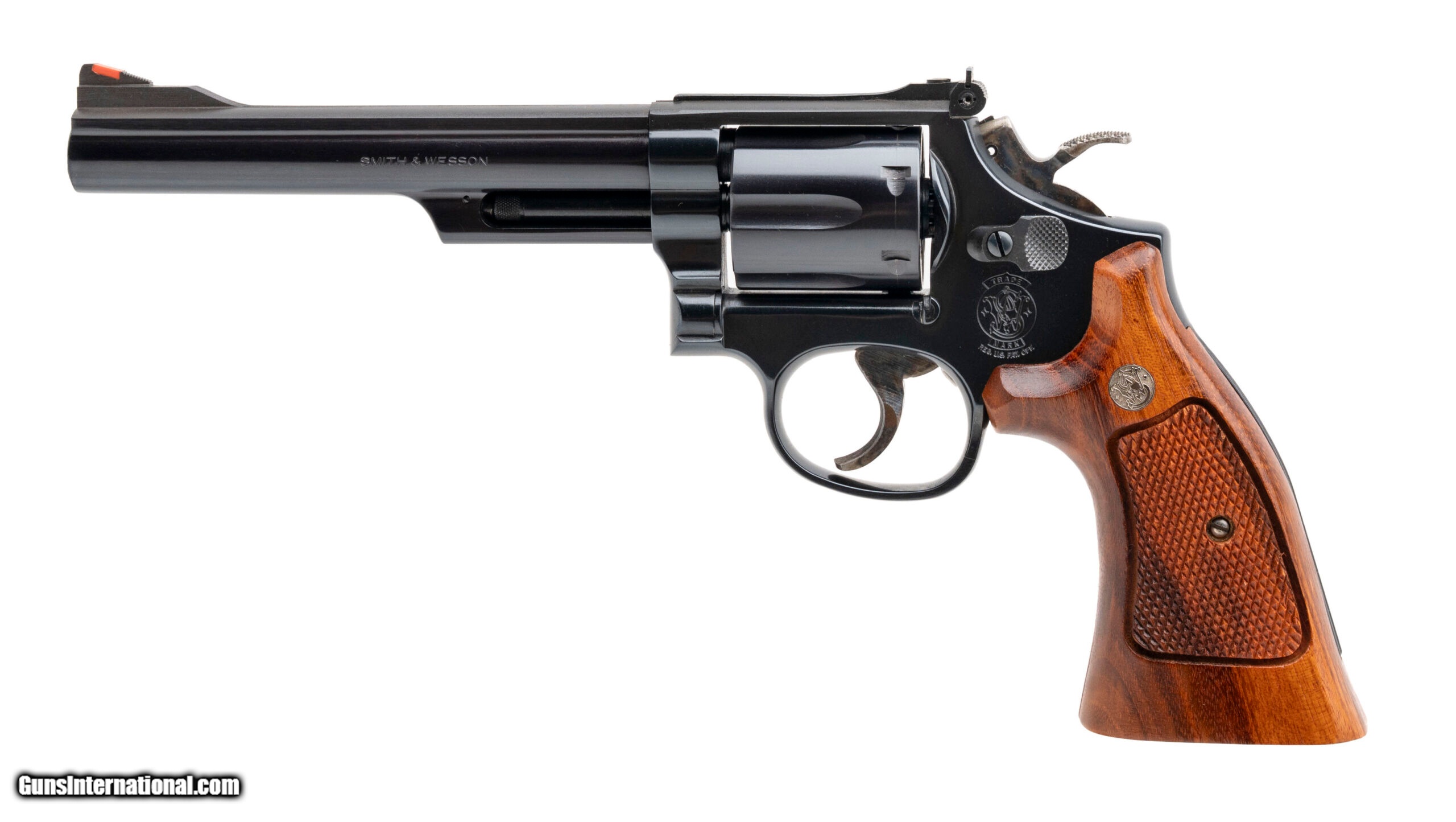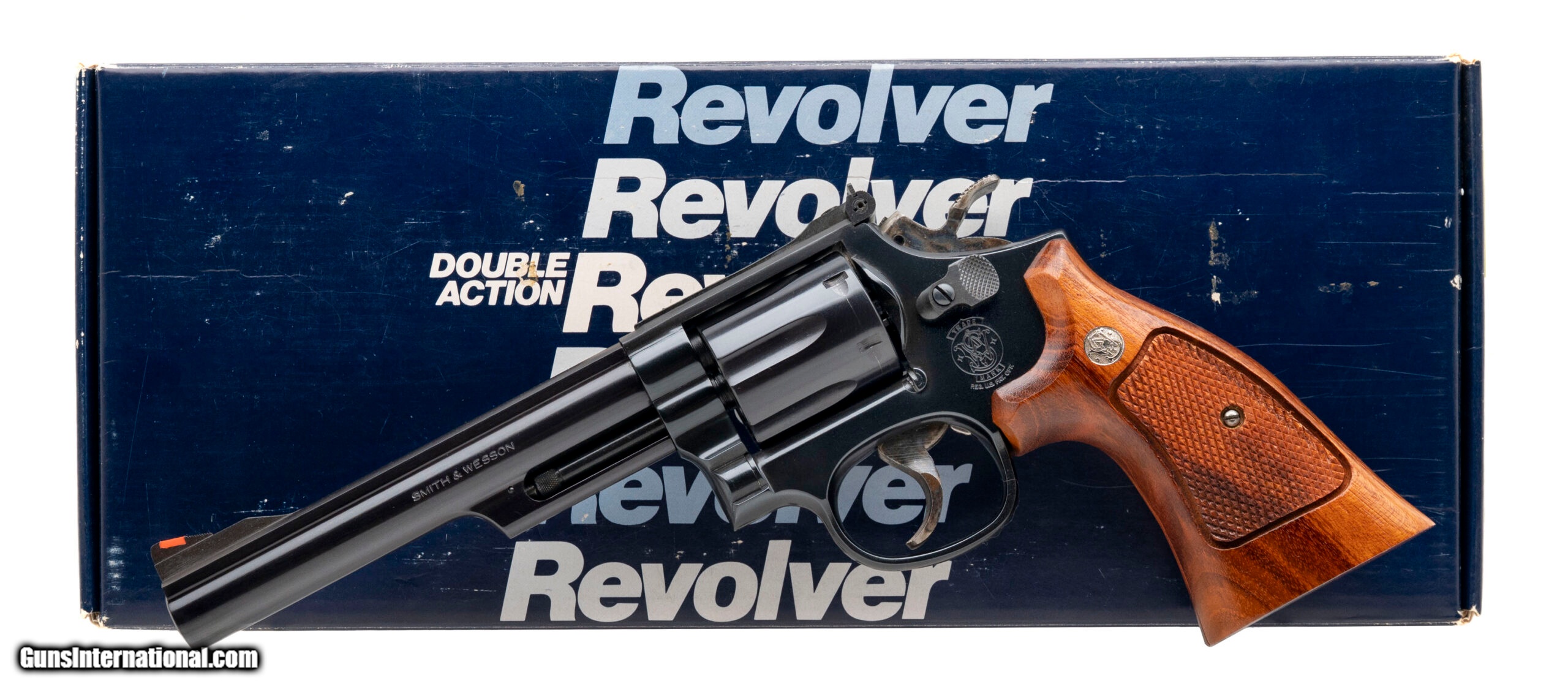 Description: "SN: BFW3080. 1990s Vintage, .357 Magnum with a 6"" barrel. Bore is bright with strong rifling. Desirable blued K-frame revolver with checkered wood grips. Overall condition is excellent. Comes with box, manual, and tools. SOLD |