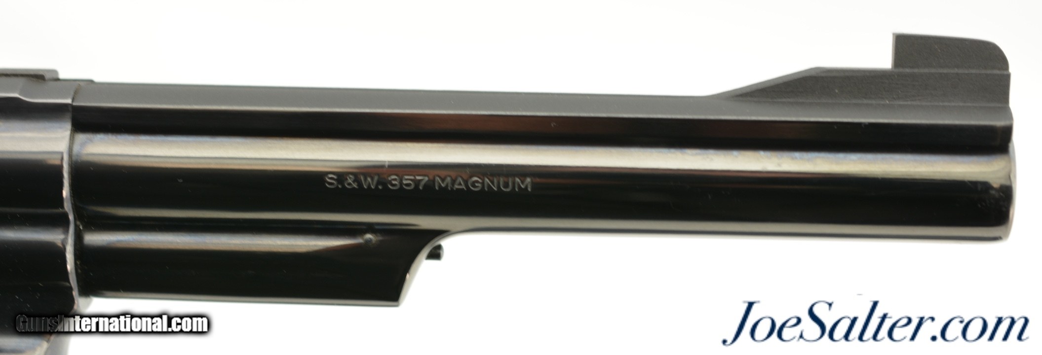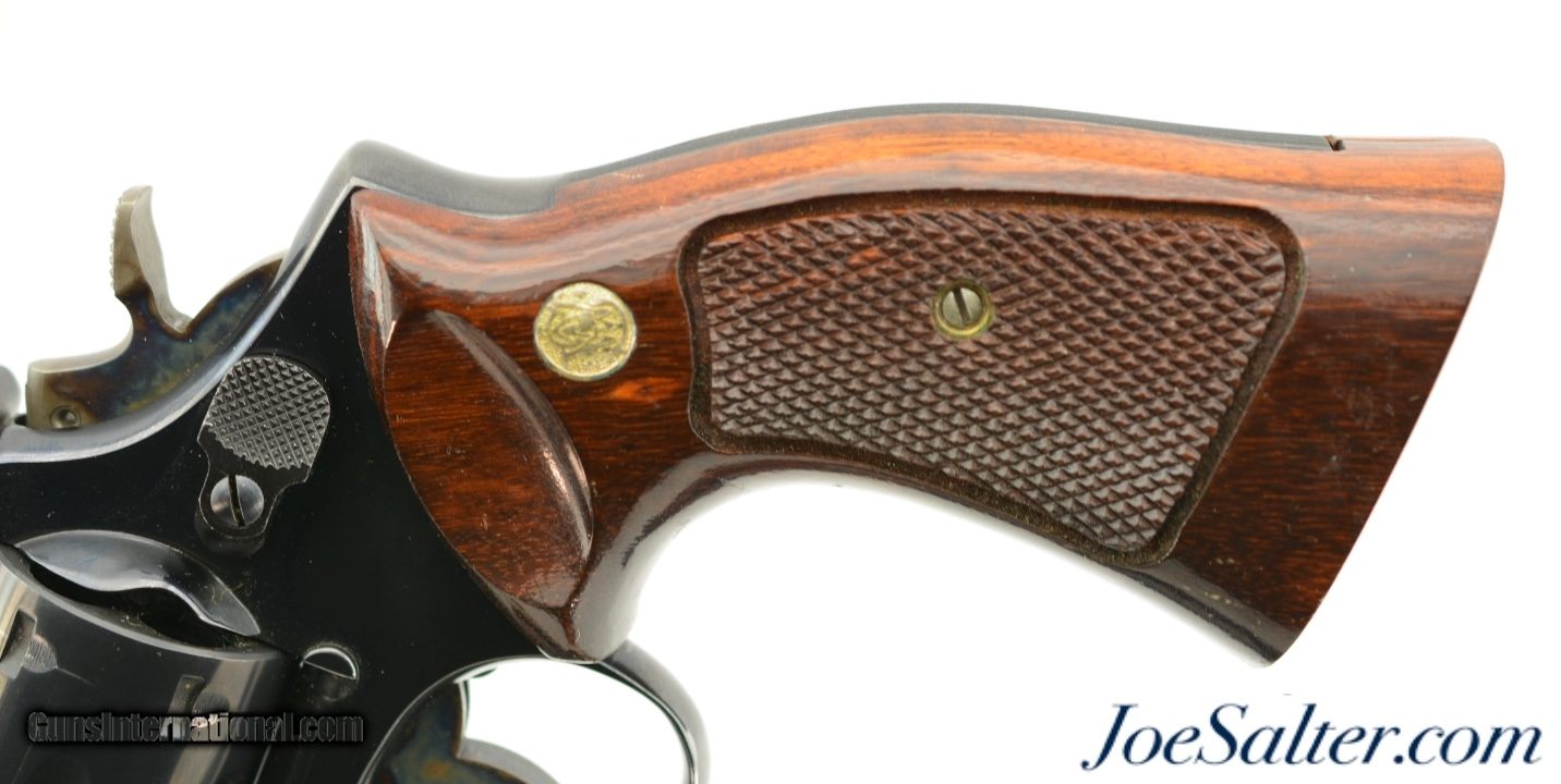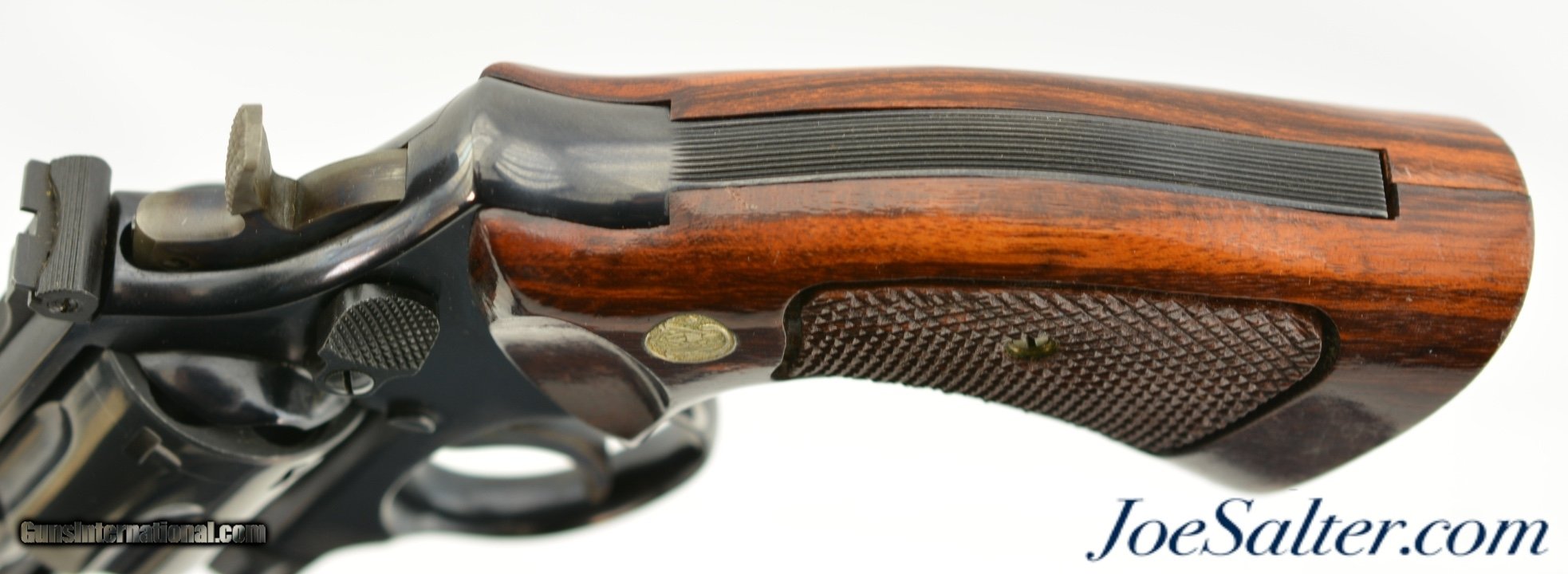 Description: Serial #7K57629, .357 Magnum, 6 inch barrel with a bright, excellent bore. This is the Smith & Wesson Model 19-3 Combat Magnum revolver manufactured in 1975. In excellent condition the barrel, frame and cylinder retain virtually all, 98-99% of the original blue finish with only a faint drag line on the cylinder. The service hammer and trigger retain vibrant case-hardened colors. The checkered Goncalo Alves grips with S&W medallions and extractor cutout rate excellent and are numbered to the gun with only very minor handling marks. The revolver has a Patridge front sight and factory black blade micro adjustable rear sight. It come in the original two piece blue Bangor Punta box numbered to the gun. An excellent example of these very well built mid-1970's revolvers. FFL or C&R; Don't forget about Free 100% Guaranteed shipping & Insurance for orders over $500 and no CC fees. ; SOLD |