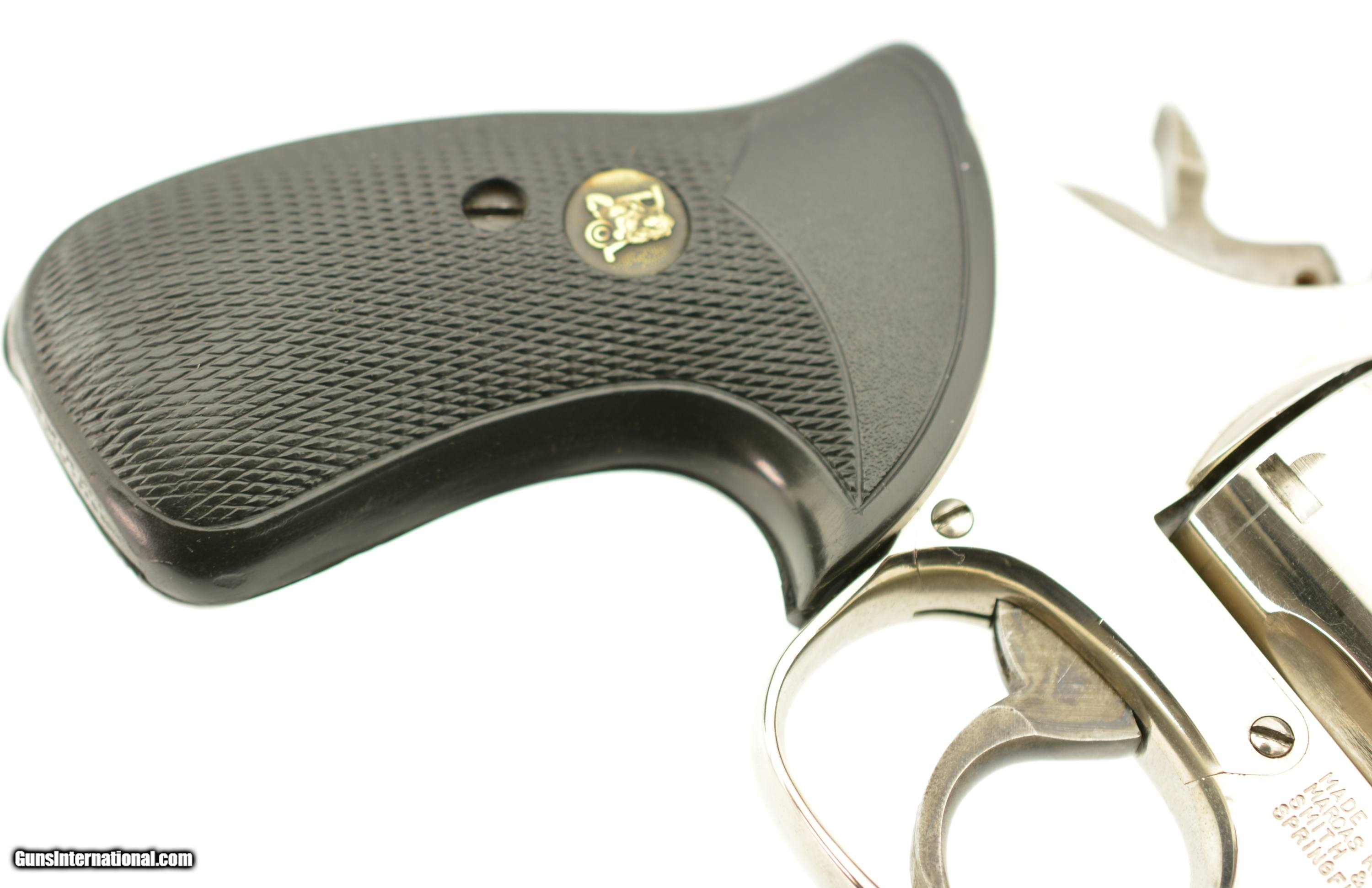 Description: Serial #ALC7420, .357 Magnum, 2 ½ inch barrel with an excellent bore. This is the S&W model 19-5 revolver featuring a bright nickel plating, built between 1984-86 which had a white outline adjustable rear and red ramp front sights. The Combat Magnum has is equipped with Pachmayr presentation rubber grips. In excellent condition the metal surfaces retain virtually all, 96-98% of the original bright nickel finish with some minor handling and use marks with a scratch on the right side of the frame plate. The hammer and trigger show generous amounts of muted case color and the grips rate excellent. A desirable 19-5 that was made for only a short period of time. FFL SOLD Manufacturer: S&W Model: 19 Serial Number: ALC7420 Caliber Info: .357 Mag Gauge Info: .357 Mag |
