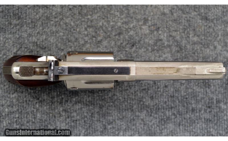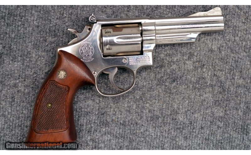 Description: For your consideration, a Smith & Wesson model 19-3 chambered in .357 Magnum. Per the "N" stamp on the left grip frame, the nickel finish is factory. The barrel is pinned and the chambers are recessed. This piece dates to 1974. .357 Magnum SOLD Chambers: 6 Metal Condition: Very Good+ Wood Condition: Very Good Bore Condition: Excellent Barrels: 4 Triggers: Serrated Weight: 2.25 lbs Sights: Iron Sights Item Location: Hamburg, PA |