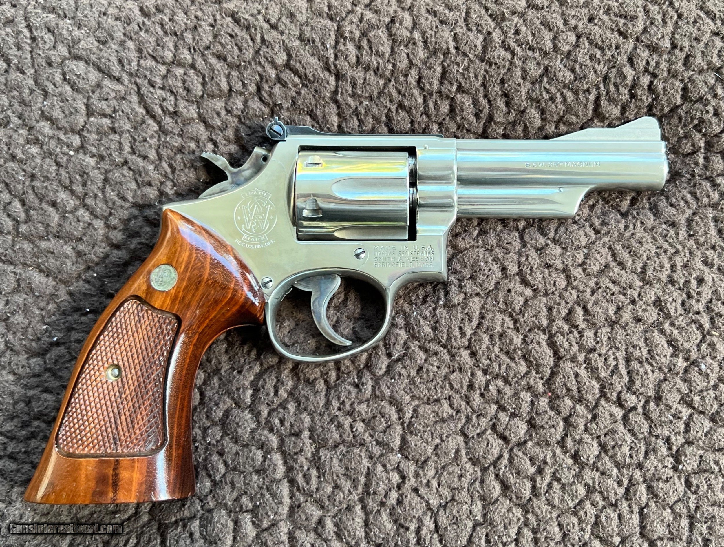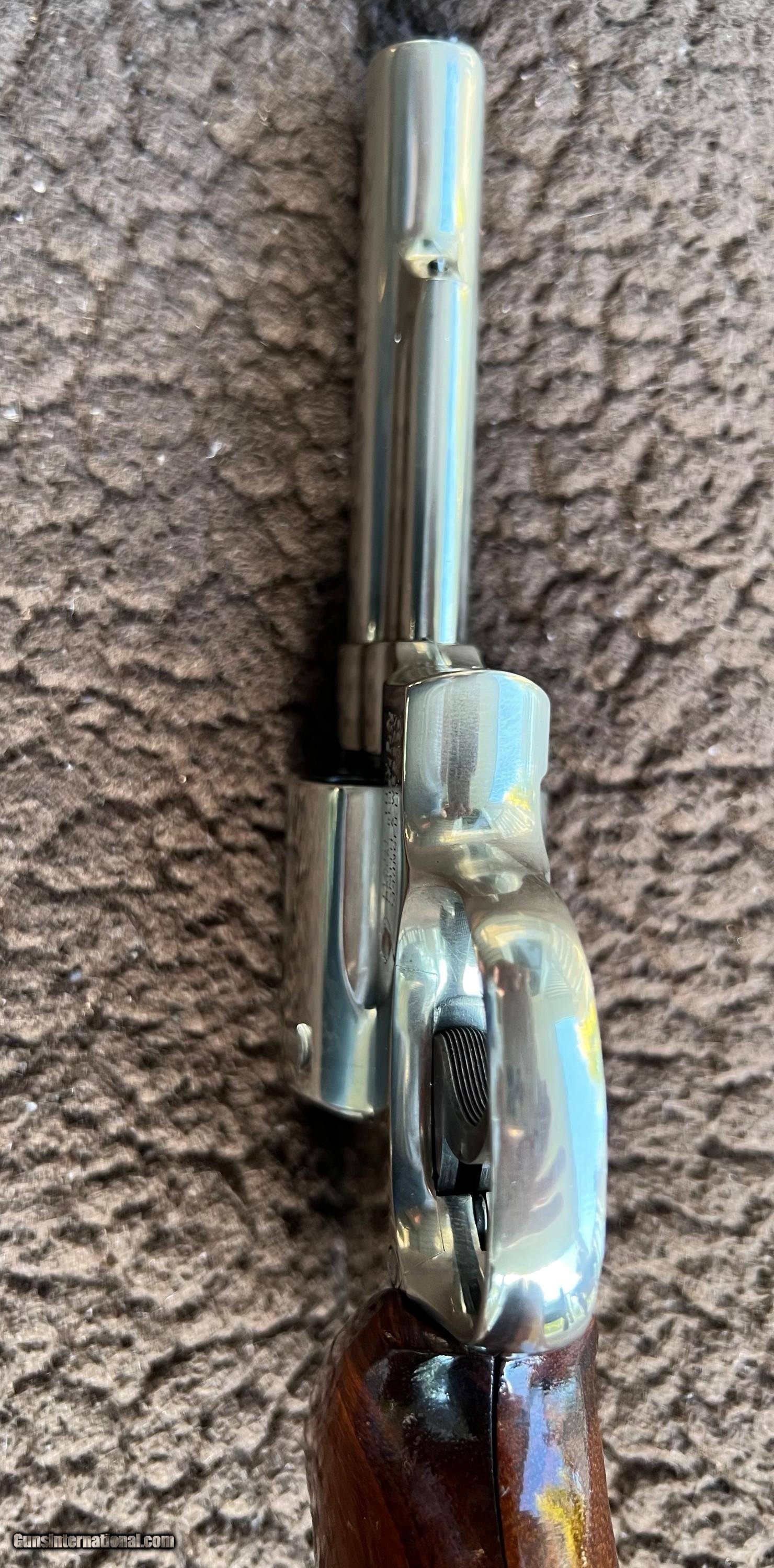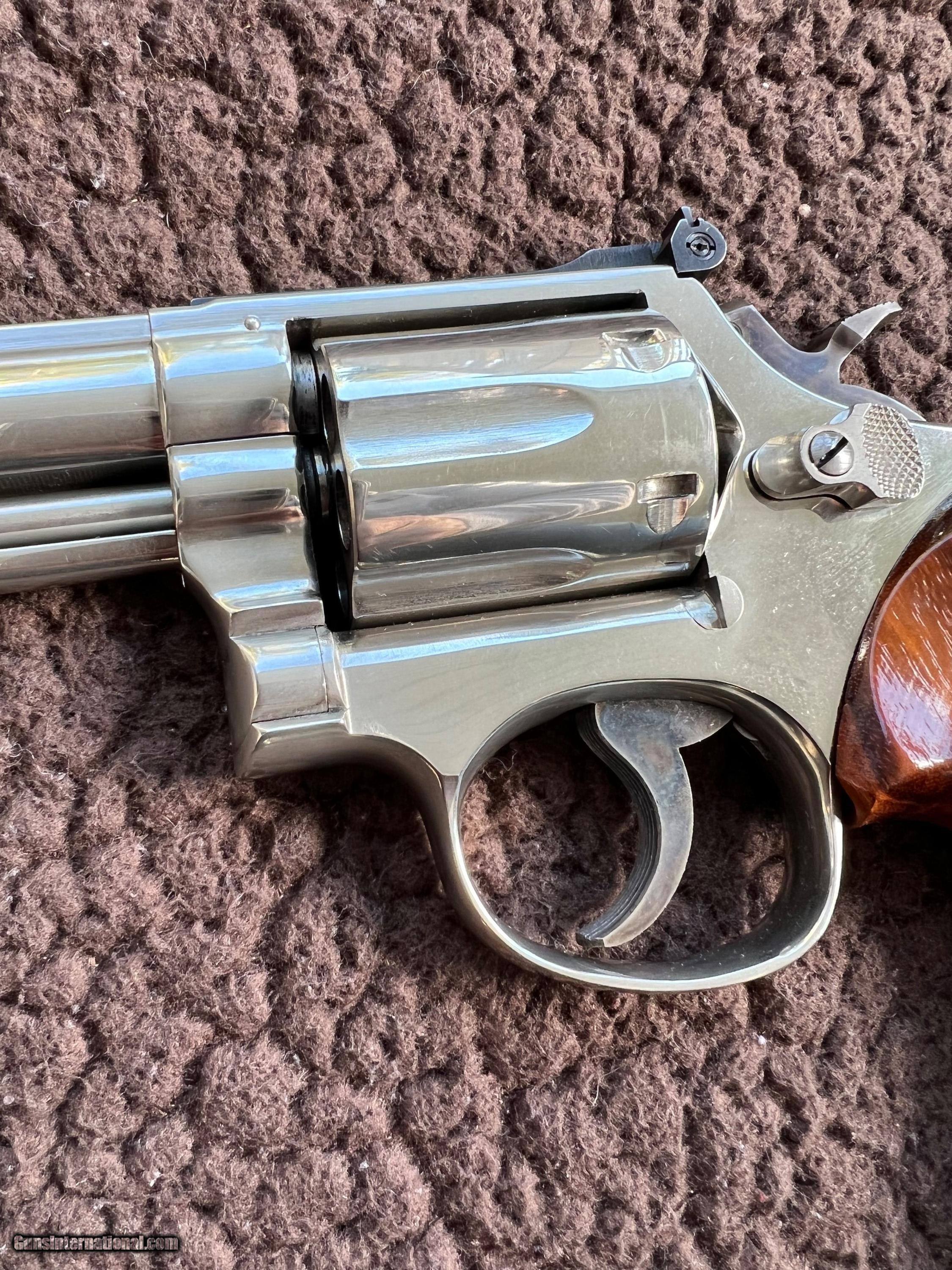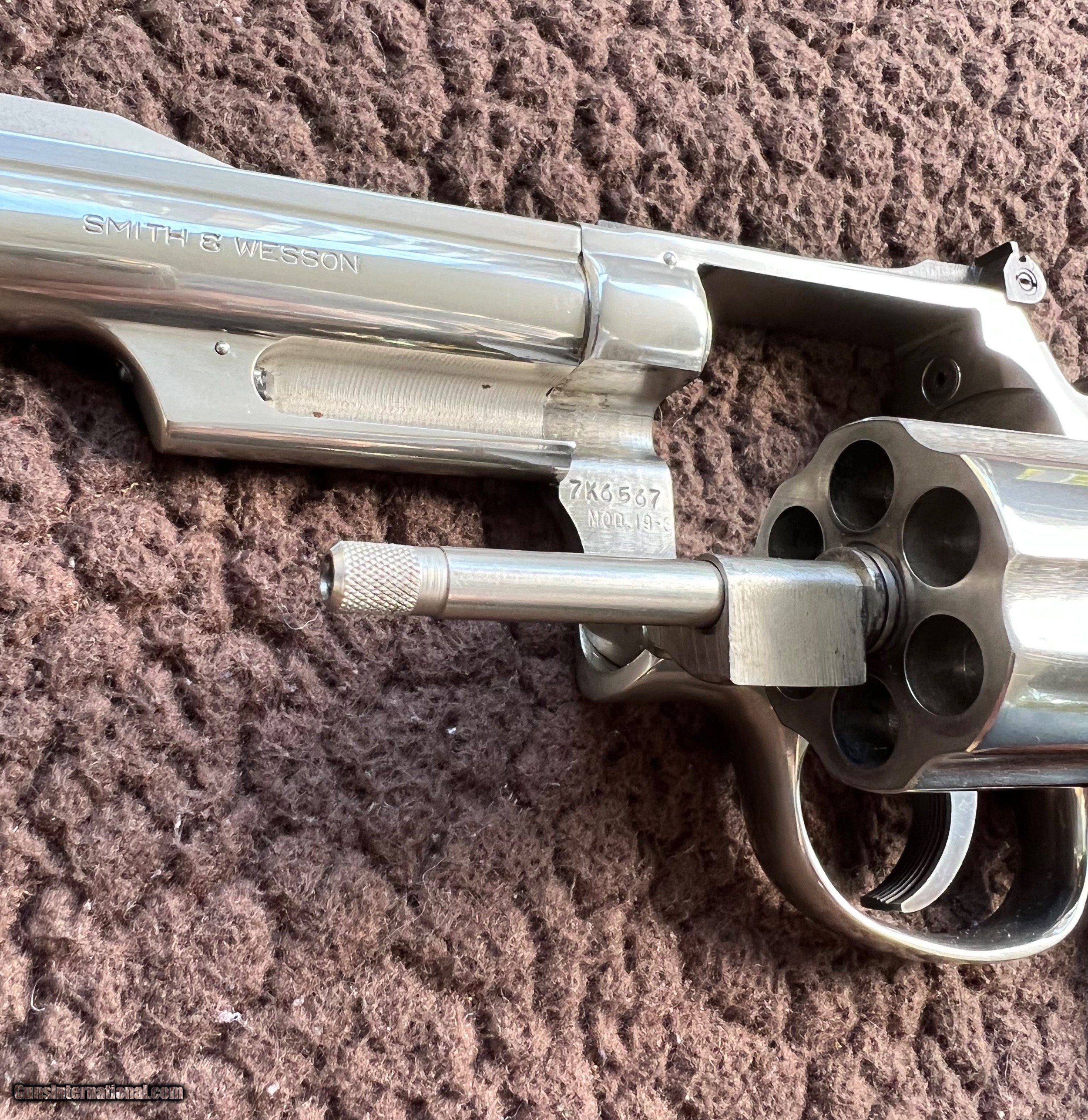 Description: S&W model 19-3 .nickel 357 magnum 4" barrel. Nickel finish is in excellent shape. Pinned and recessed cylinder. Grips are in good shape. No box or paperwork. $40 shipping. SOLD Handgun Caliber: .357 Magnum Manufacturer: S&W Model: 19 Barrel Length: 4” Condition: Excellent Metal Condition: Nickel Wood Condition: Good Bore Condition: Good |