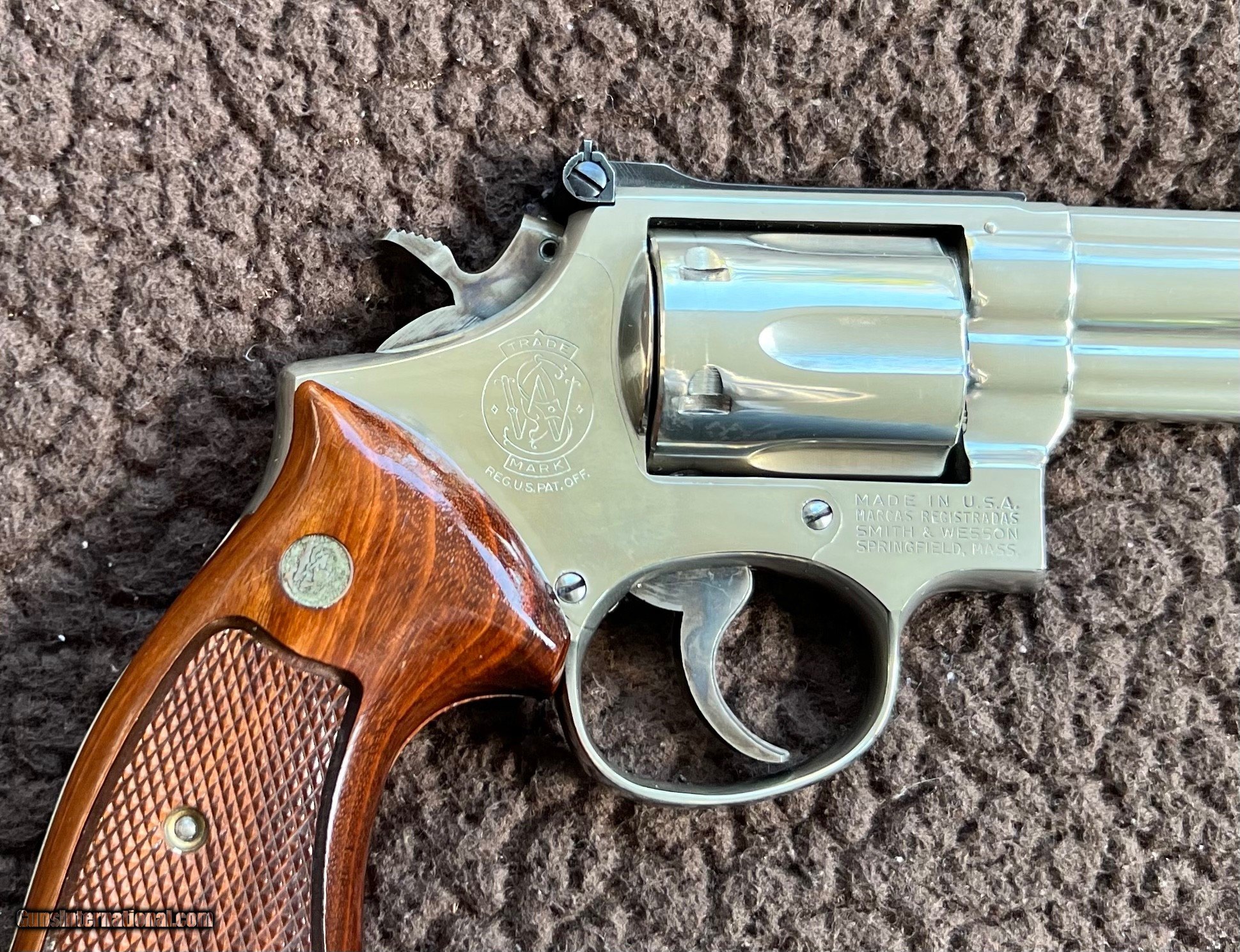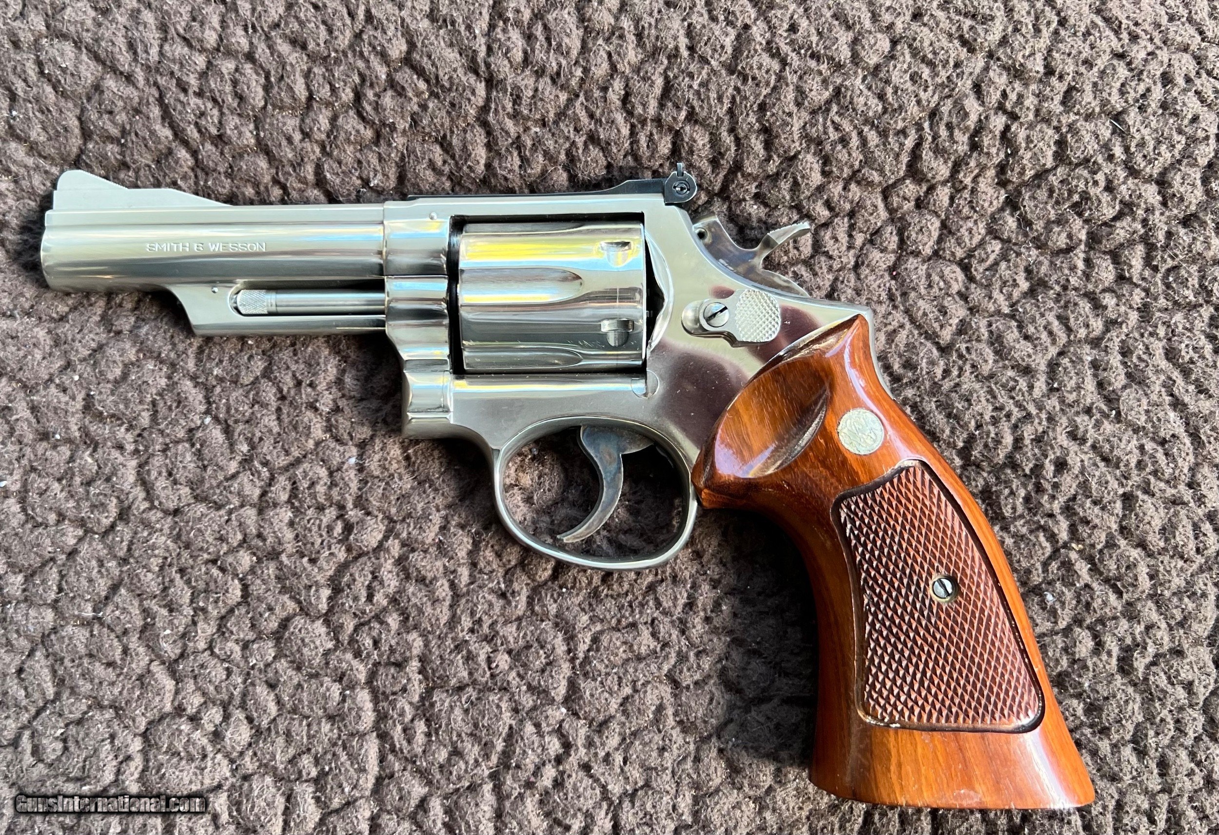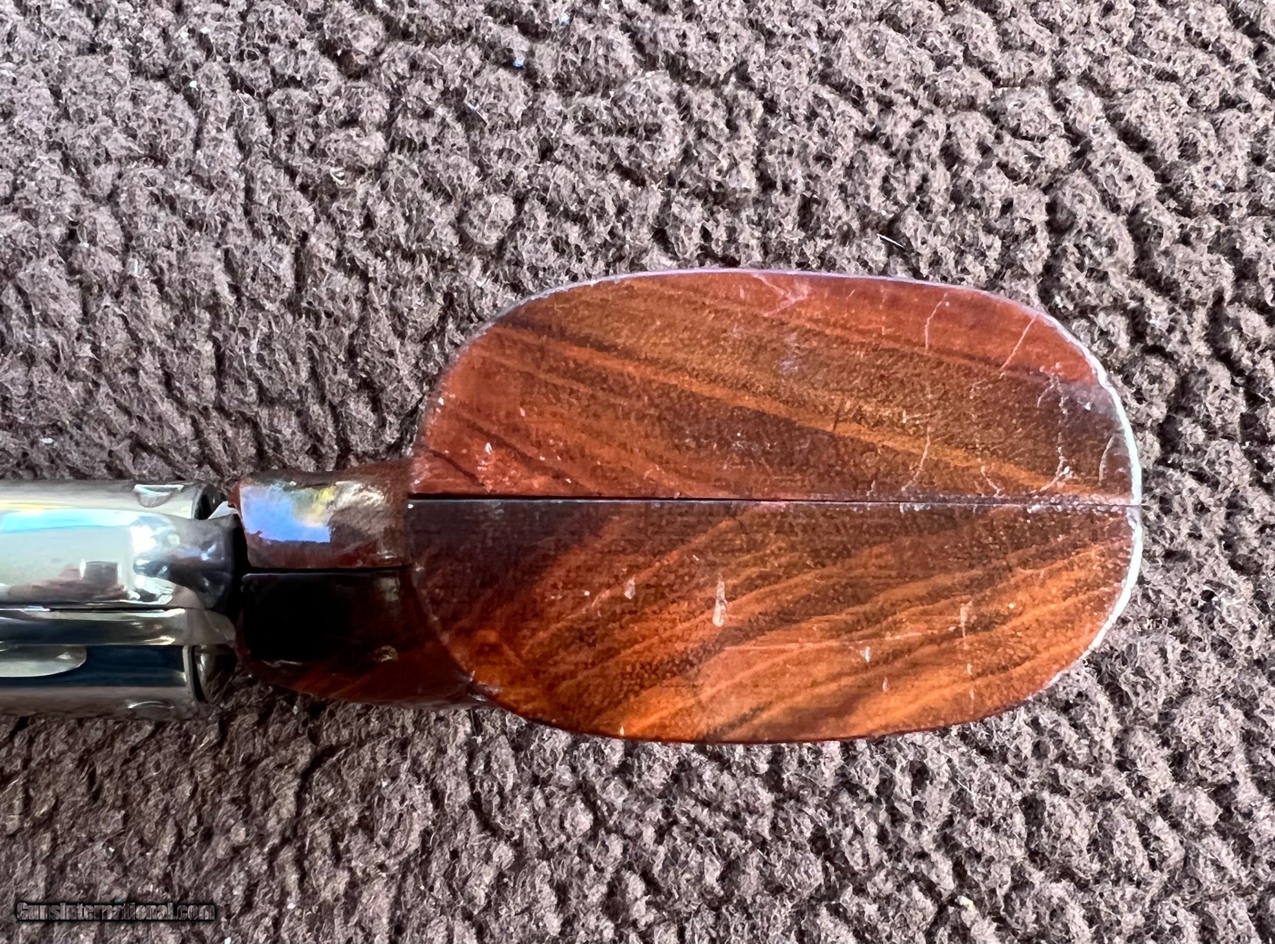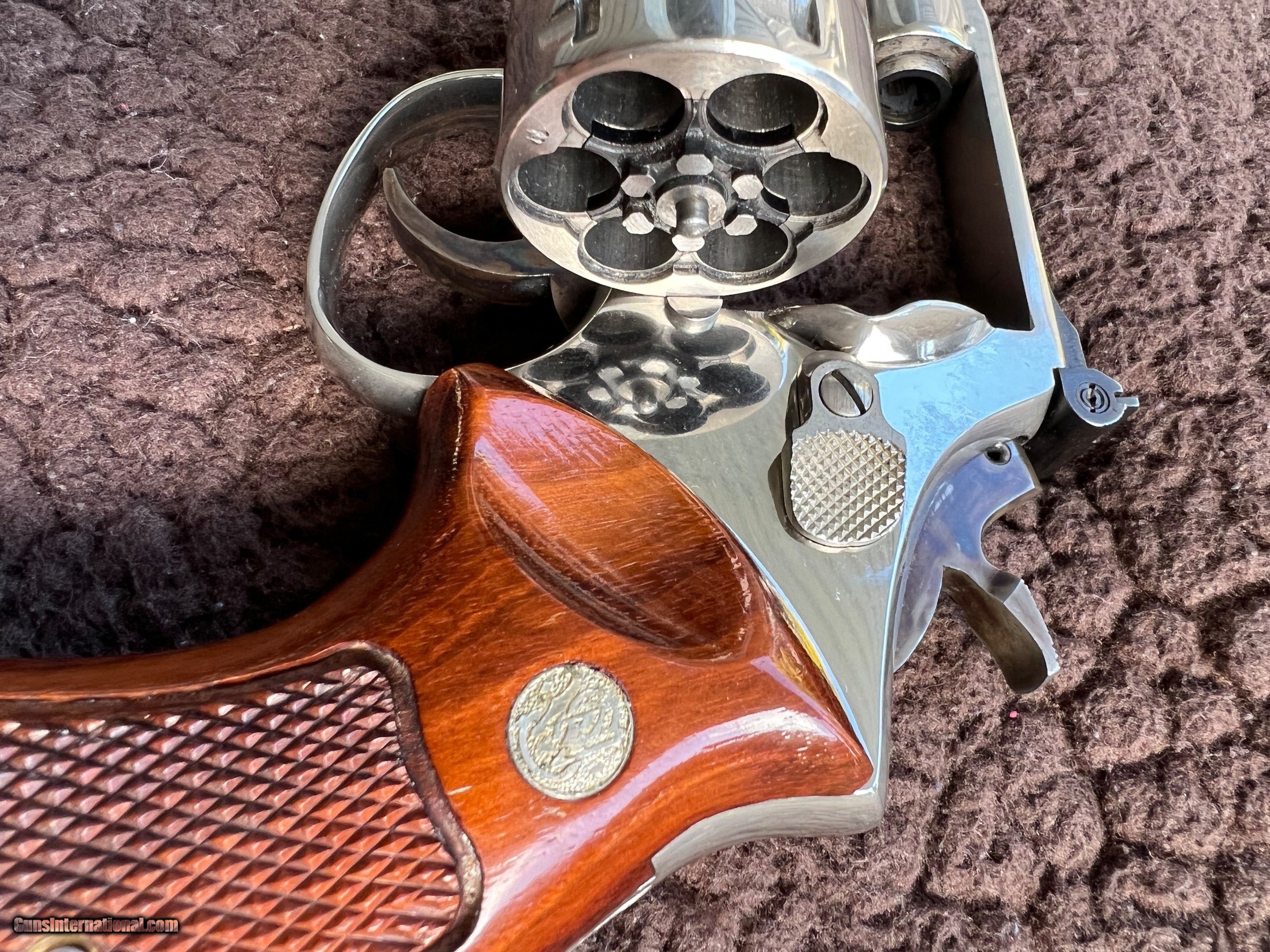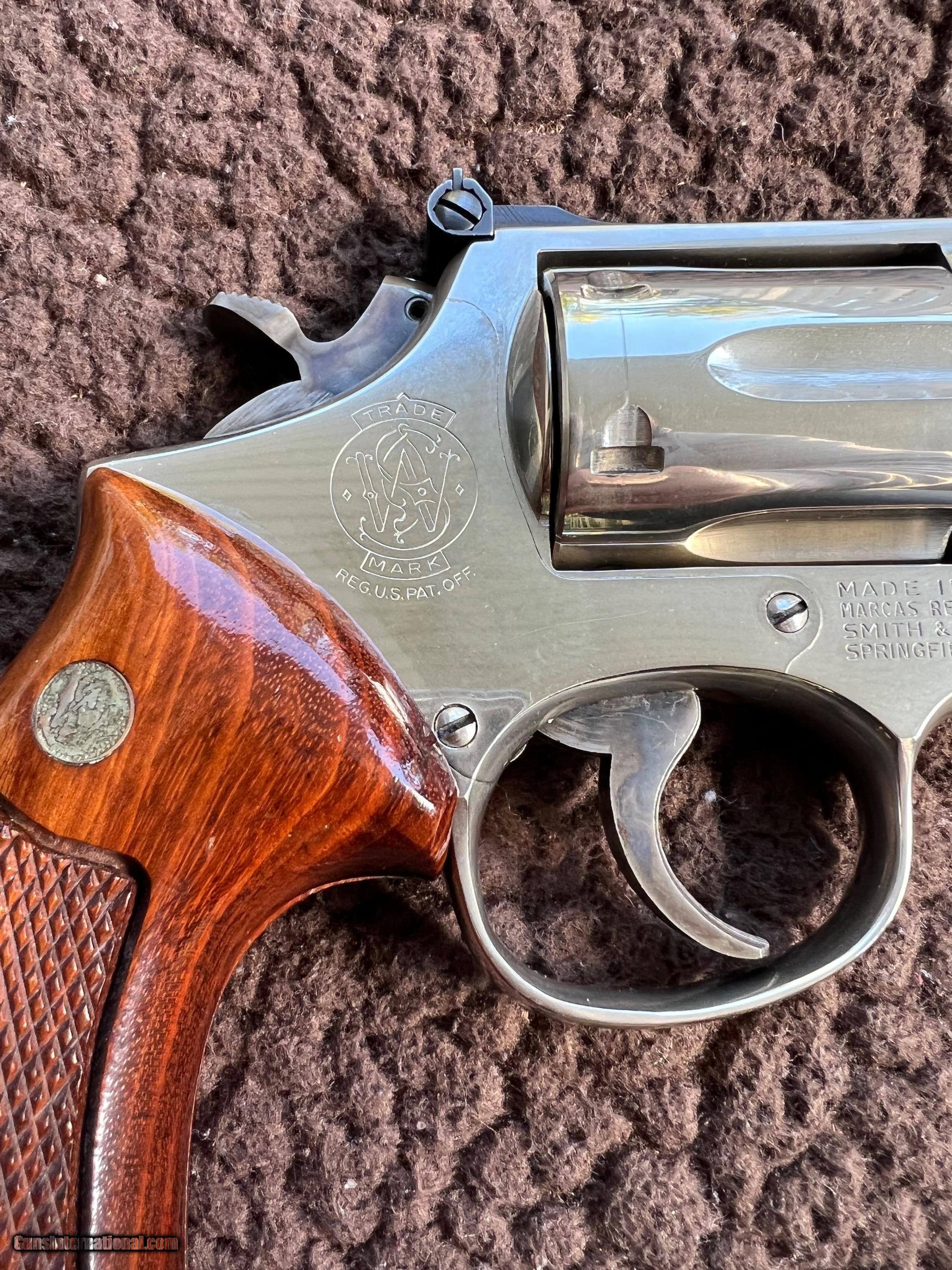 Description: S&W model 19-3 .nickel 357 magnum 4" barrel. Nickel finish is in excellent shape. Pinned and recessed cylinder. Grips are in good shape. No box or paperwork. $40 shipping. SOLD Handgun Caliber: .357 Magnum Manufacturer: S&W Model: 19 Barrel Length: 4” Condition: Excellent Metal Condition: Nickel Wood Condition: Good Bore Condition: Good |