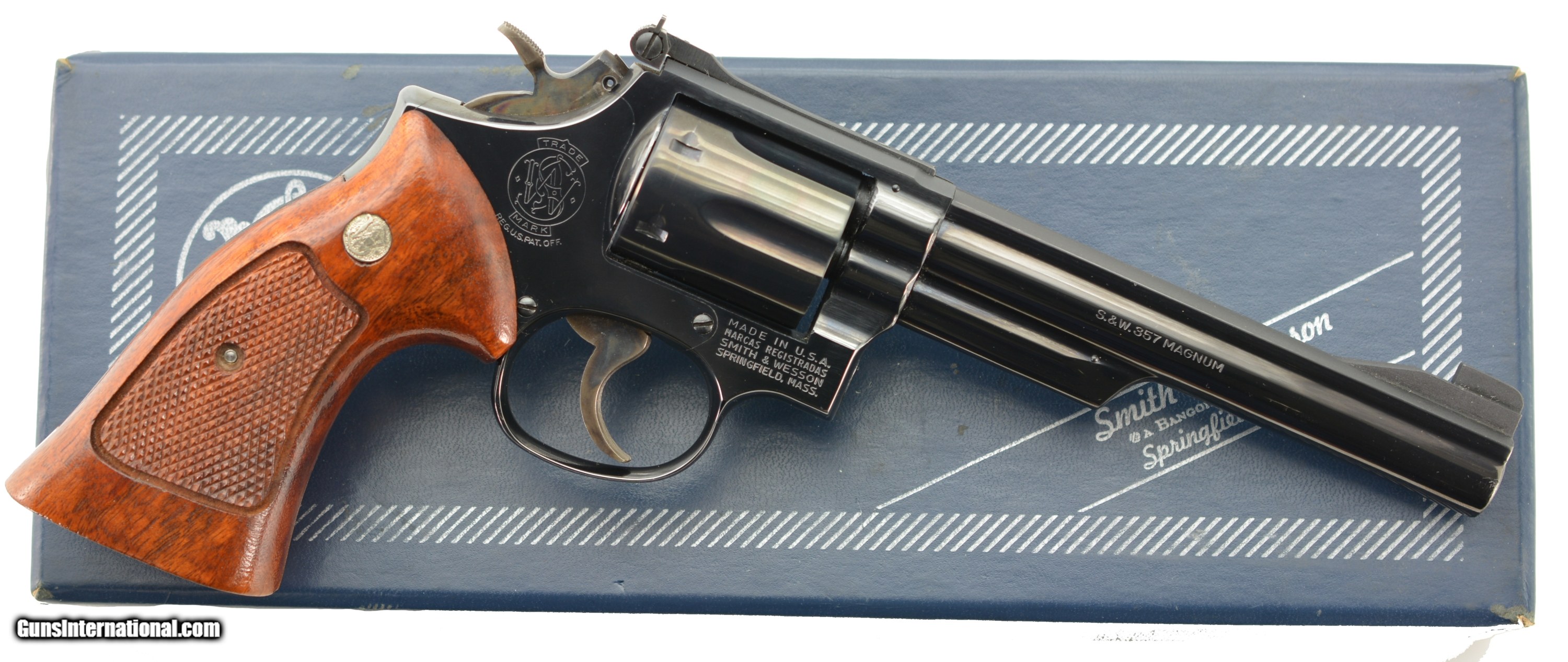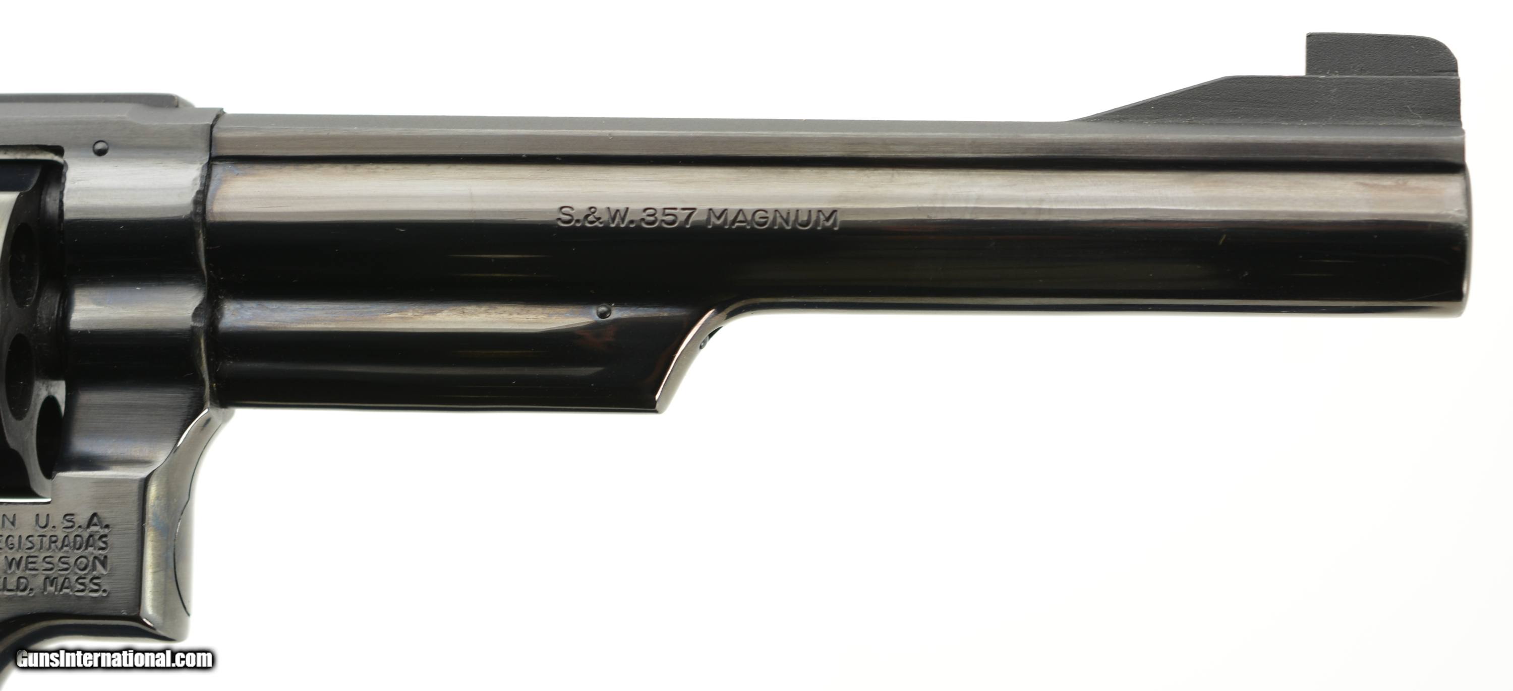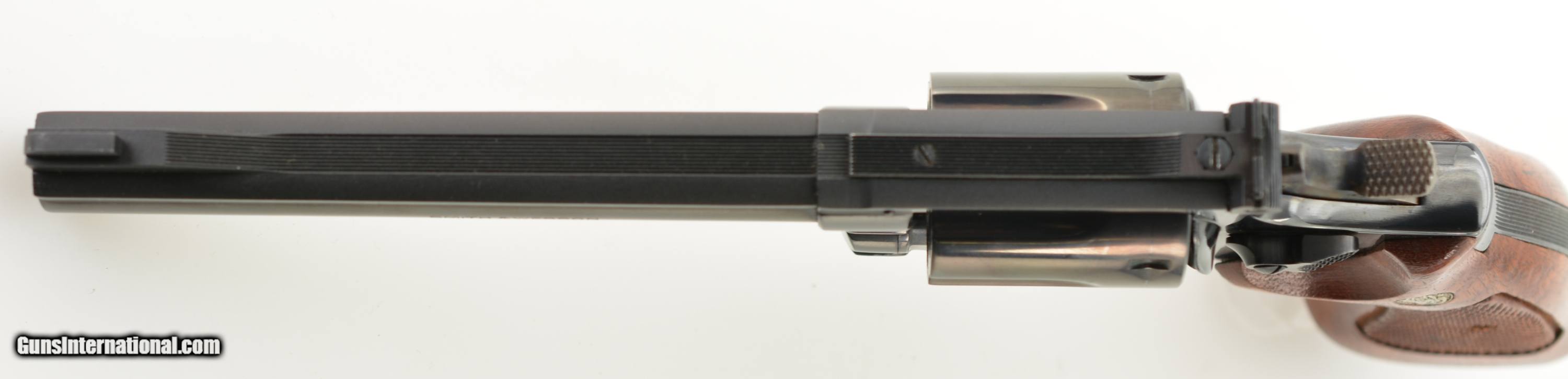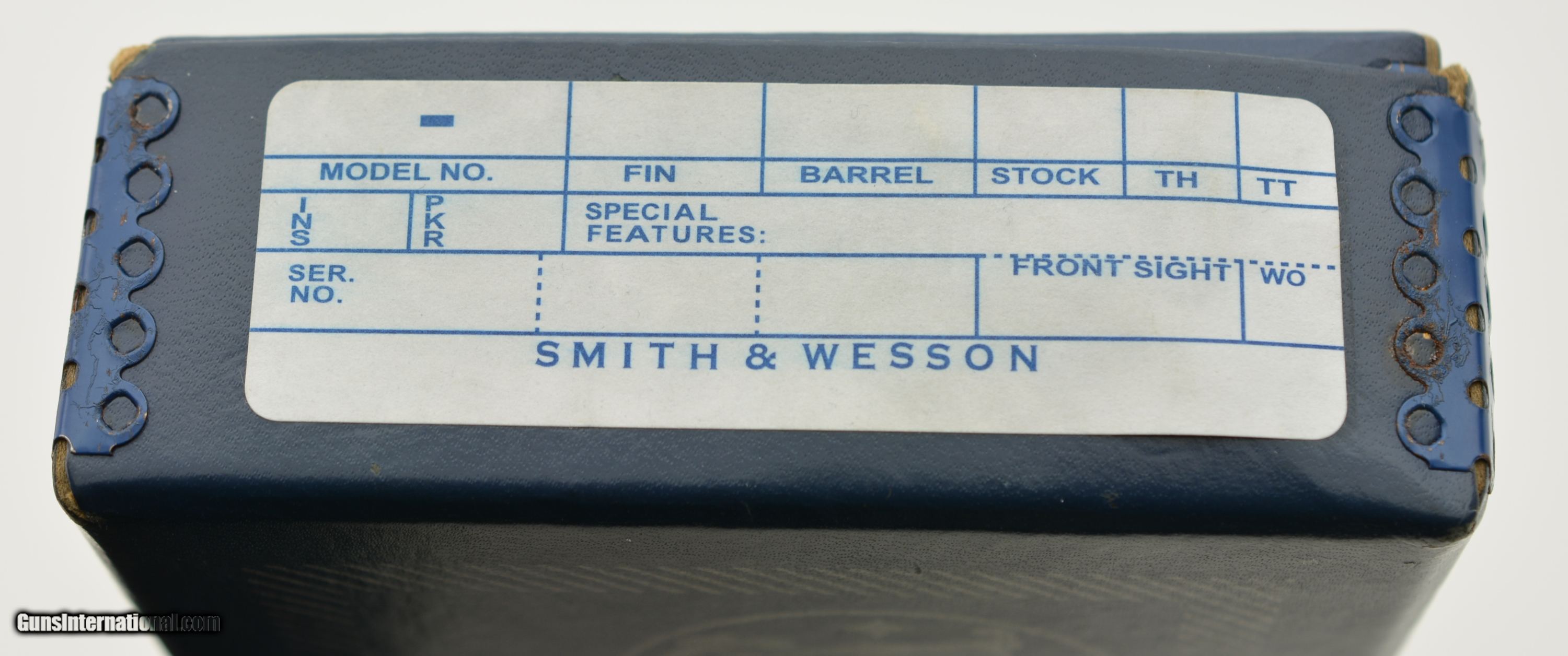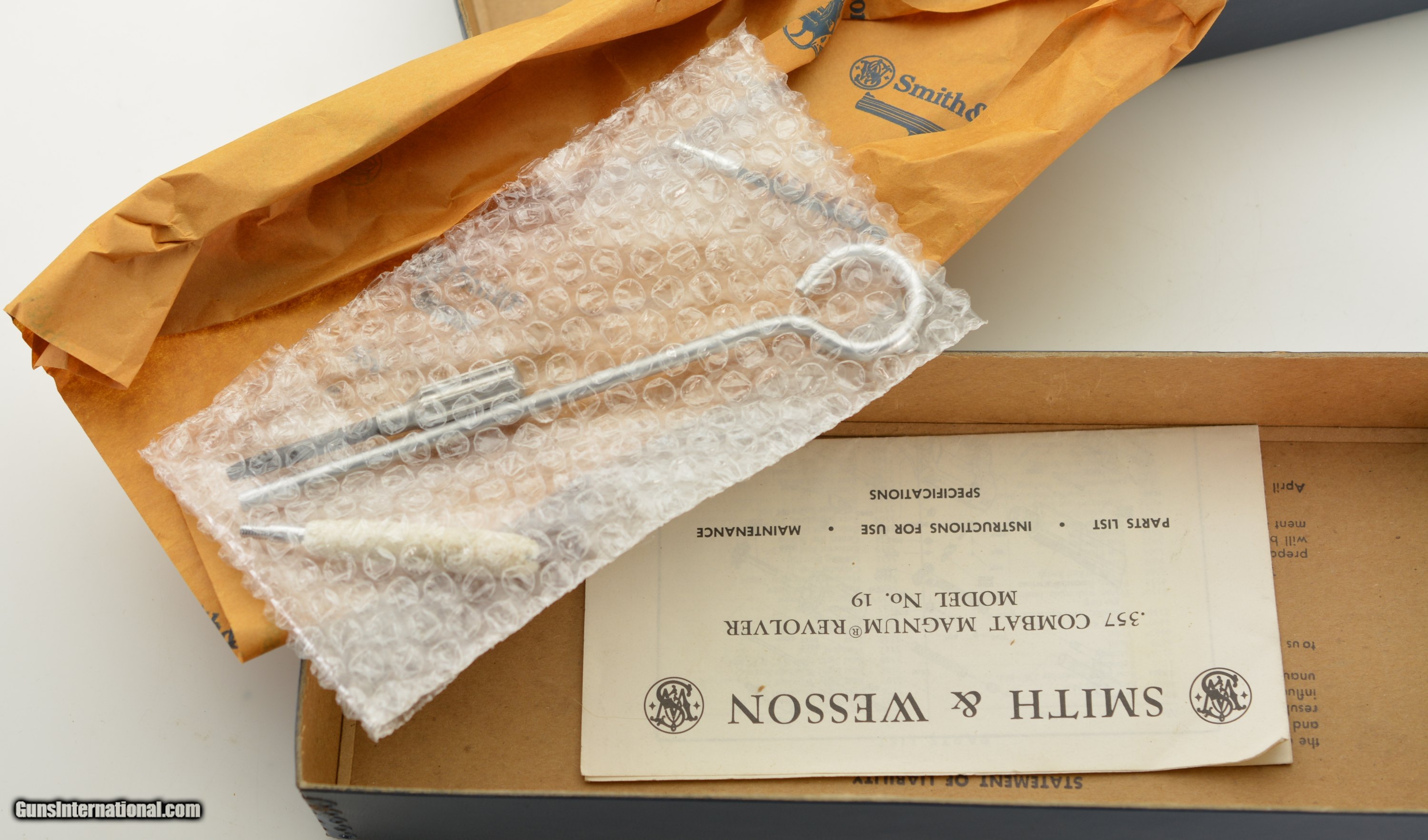 Description: Serial #56K5928, .357 Magnum, 6" barrel with an excellent, bright bore. This is a little-used revolver that has retained nearly all of the original blue with the exception of a mild turn-ring on the cylinder. The hammer and trigger retain a commensurate amount of the original color case-hardening, while the S&W medallion grips are in excellent shape, and exhibit almost no handling mark, or flattening of the points. The revolver is housed in a blue, two-piece Bangor Punta box with blank end label. The box contains the original instruction sheet, cleaning rod, bore brush, bore mop, screwdriver, and S&W paper wrap. This is a great K-Frame .357, and is in excellent condition overall. FFL SOLD Manufacturer: S&W Model: 19 Serial Number: 56K5928 Caliber Info: .357 Gauge Info: .357 |