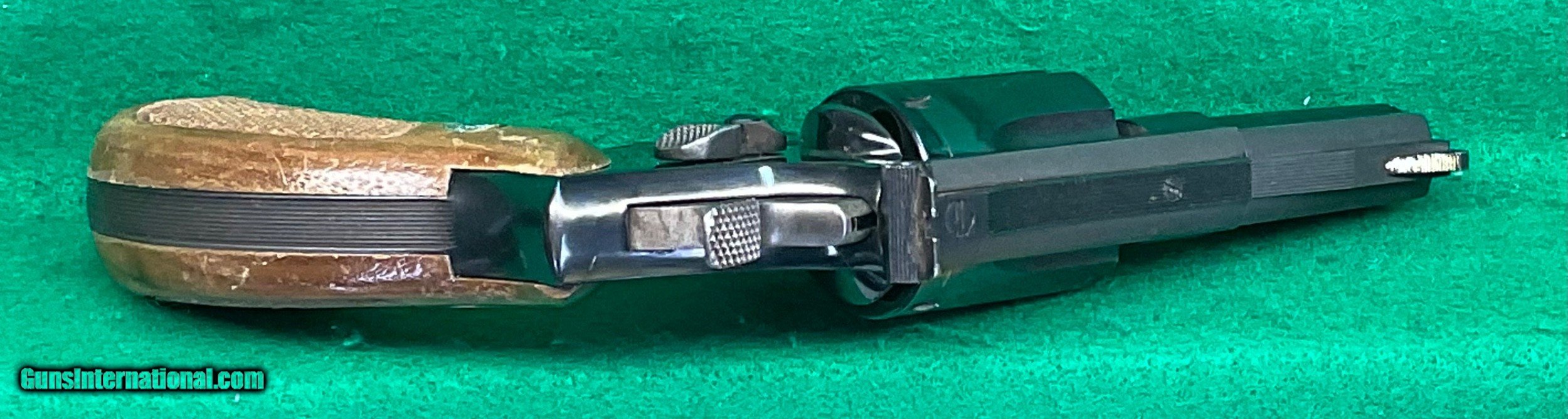 Description: REDUCED, NOW $998 /// S&W model 19-5 in 357 magnum. Shorty version with 2 1/2 inch barrel and round butt. Last of the good ones with firing pin on the hammer before they lawyered them up. Small chip at top of right grip.. white paint on front sight, easily removed. excellent condition. $998 plus $30 insured shipping. Layaway available. No credit cards and no trades. More photos on request, SOLD |
