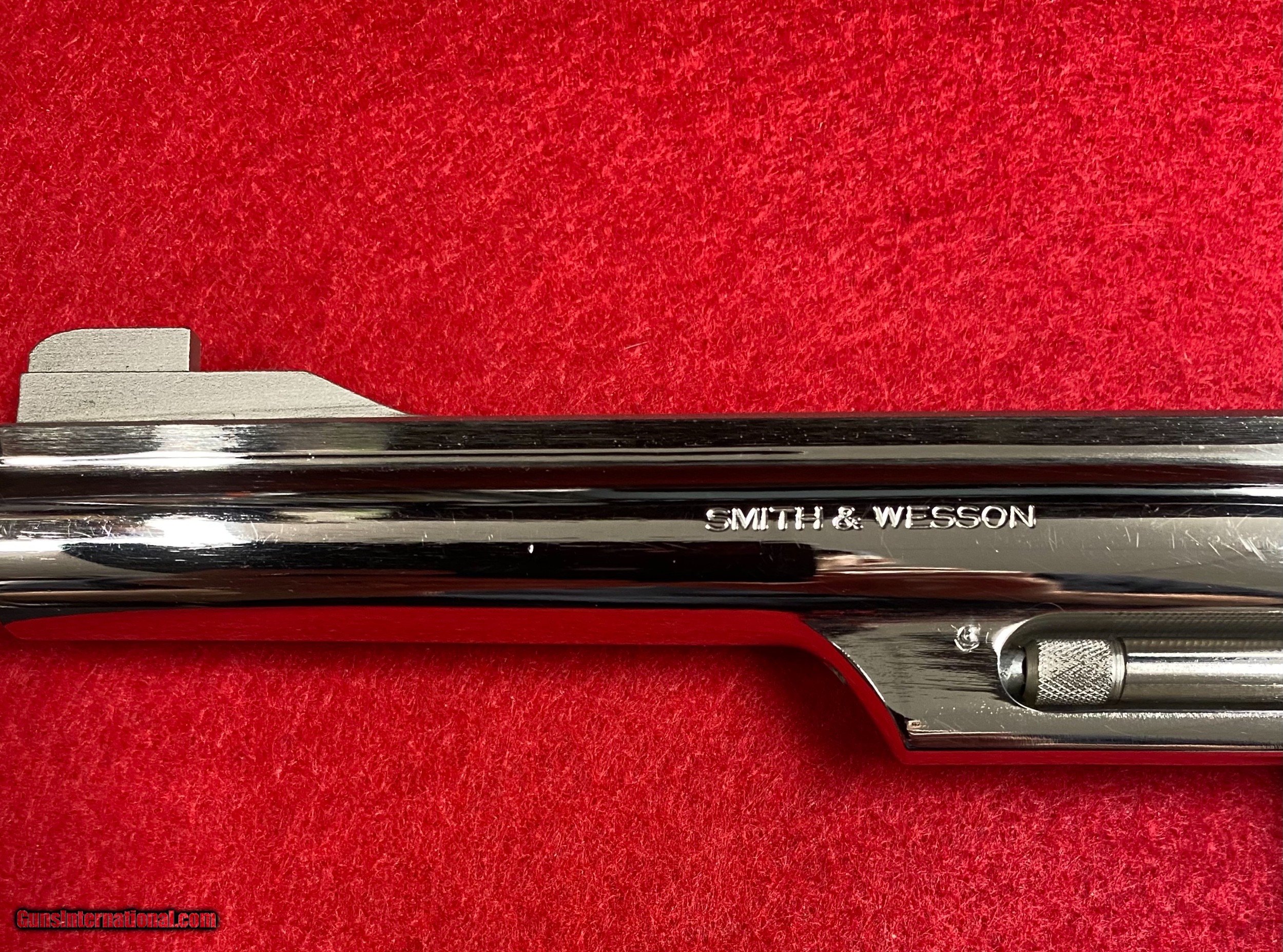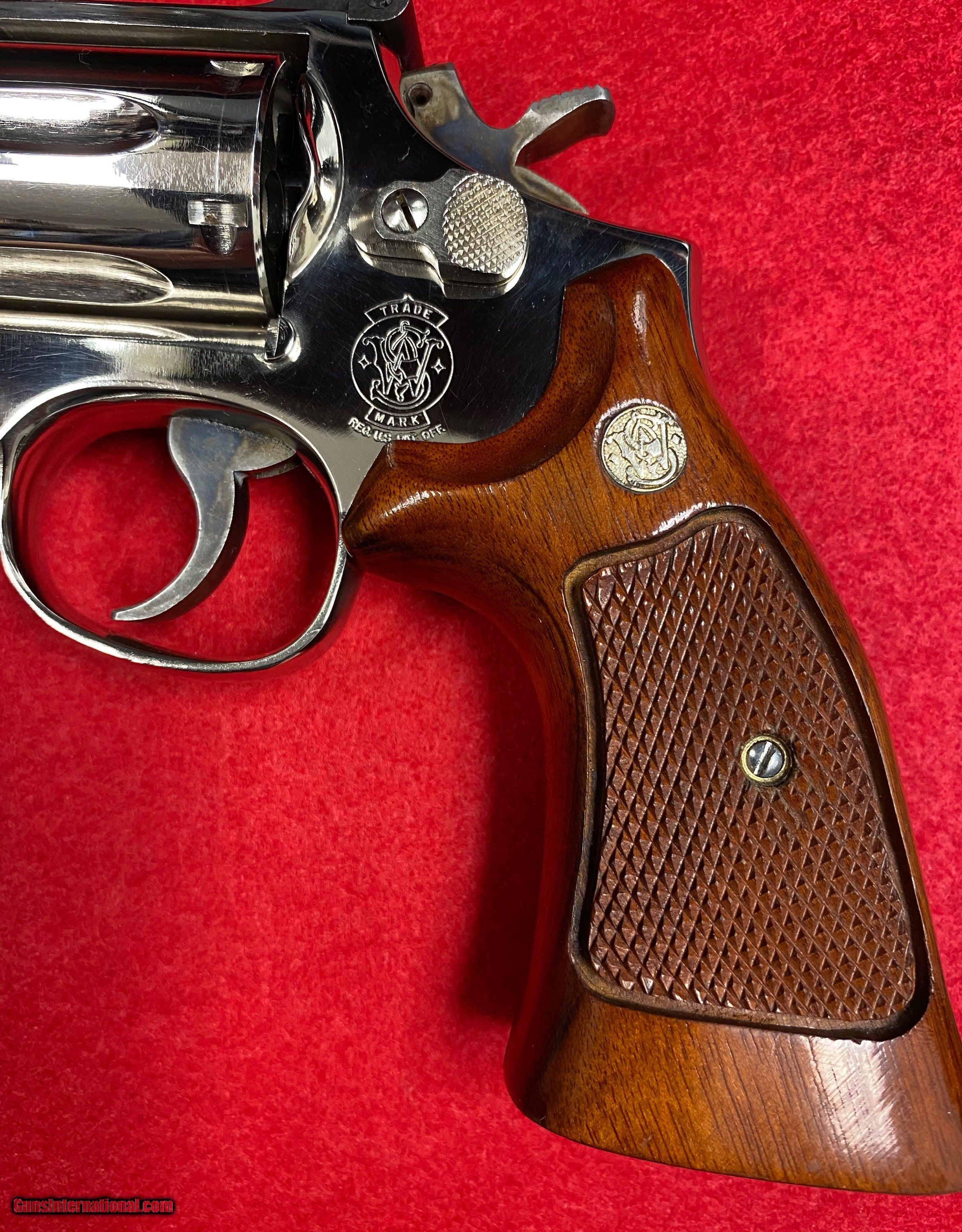 Description: S&W Model 19-5 Nickel .357 Combat Magnum with a 6" Barrel in 98% plus condition. Manufactured in 1982. Absolutely beautiful gun in excellent condition overall with flawless action. SOLD Handgun Caliber: .357 Magnum Manufacturer: Smith & Wesson Model: 19-5 Serial Number: 197K835 Barrel Length: 6” Condition: Excellent Metal Condition: Excellent Wood Condition: Excellent Bore Condition: Excellent Action: SA/DA Finish: Nickel Manufacture Date: 1982 Item Location: WV |