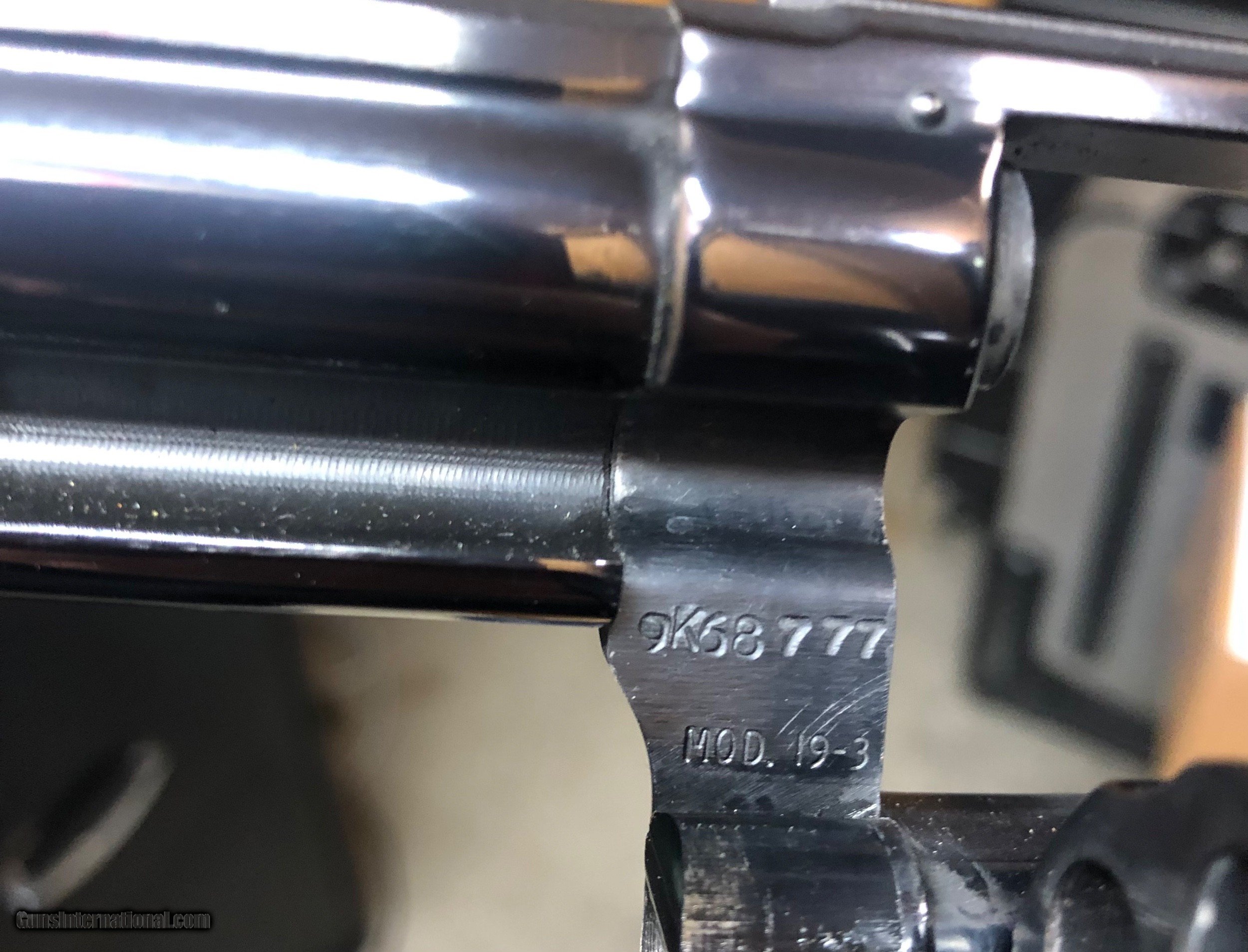 Description: SOLD TO CHARLES A very fine 19. Blue finish, 4 inch pinned barrel, recessed cylinder, target sights, and wood grips. Super clean finish. Wood grips show some flattening of the checkering. Has a box not numbered to the gun with some paper. Please email with questions. Shipping and insurance are included (west coast add $75), Venmo and cash app accepted. SOLD Manufacturer: Smith and Wesson Model: 19-3 Barrel Length: 4 inch Condition: Used Metal Condition: Excellent Wood Condition: Very good Bore Condition: Excellent Action: Da, sa Finish: Blue Sights: Target Item Location: 37075 |