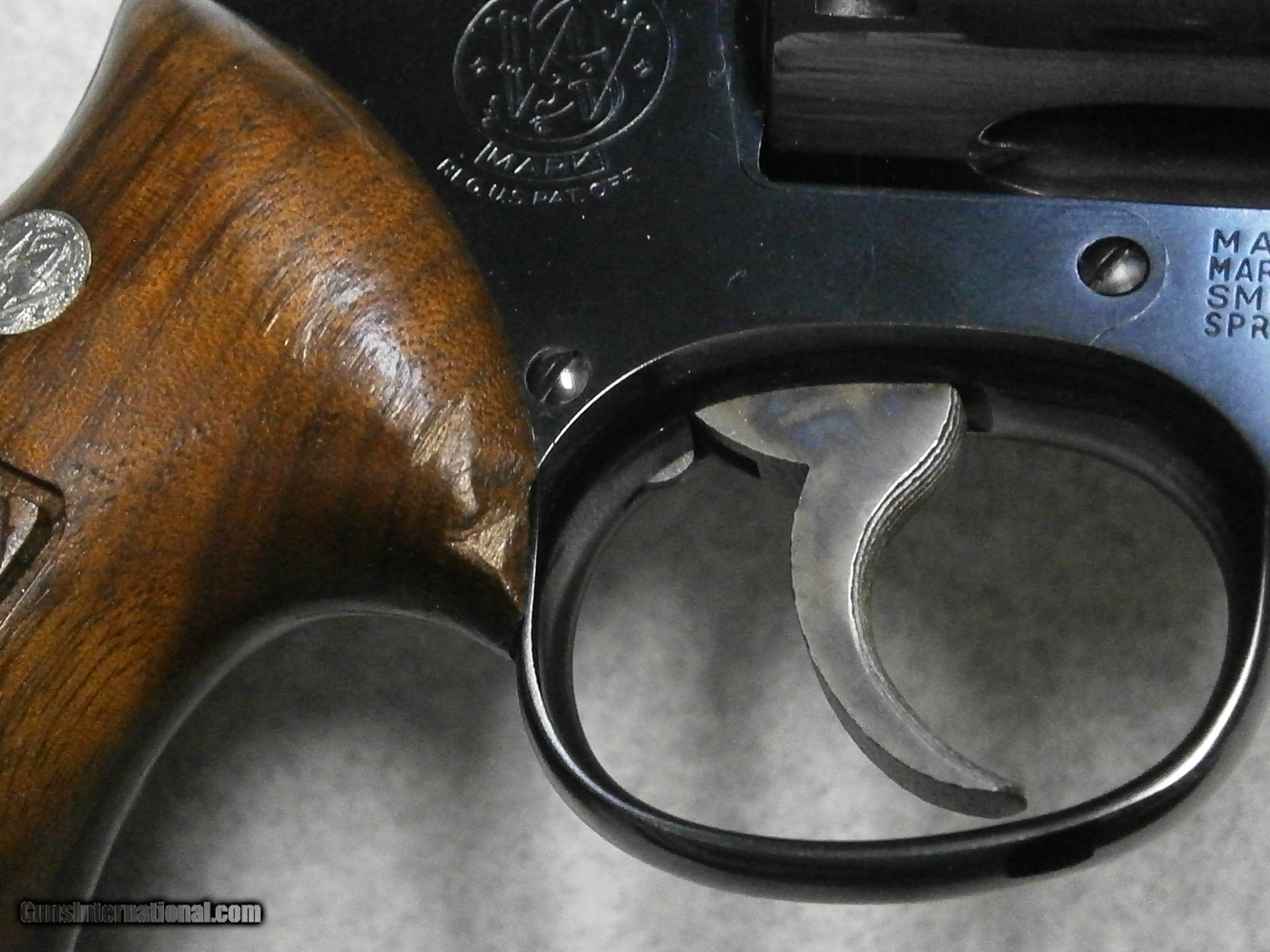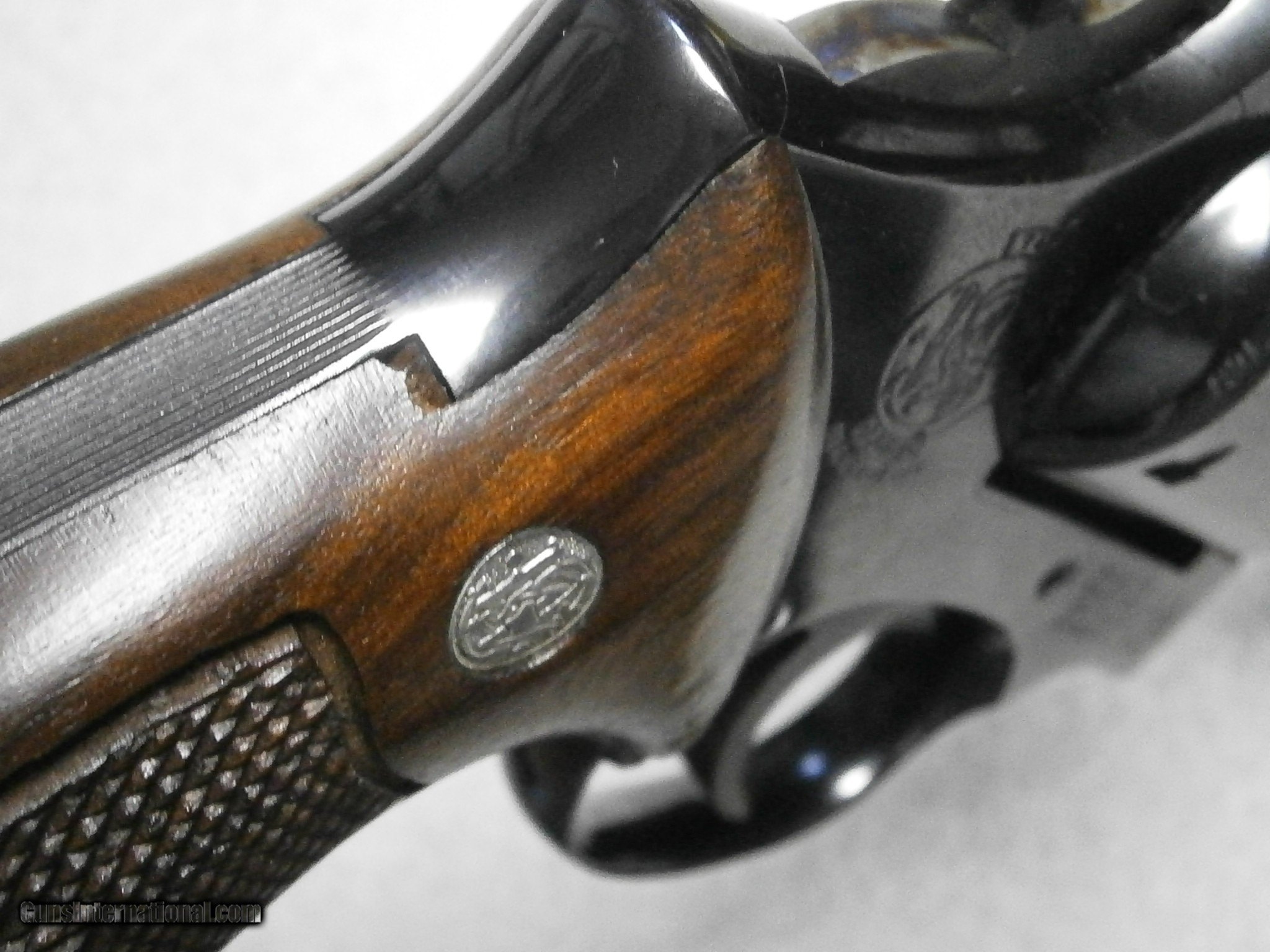 Description: (Sale Pending)Smith and Wesson Combat Masterpiece 357 magnum. This is the original Combat Masterpiece that later became the model 19. Fantastic condition for a 1956 era gun. Virtually no muzzle wear and just a faint turn line on the cylinder. There are a couple of very minor chips in the original diamond target grips as pictured. Please add $40 for shipping and insurance to your FFL. I have many Winchester 9422’s in stock, mostly new in the box. Feel free to contact me if you are looking for a particular model or version. I am a private collector and trader in firearms. I will gladly include a photocopy of my driver’s license and all contact information needed for your FFL dealers records. If your FFL dealer will not accept from a private party, I can go through an FFL dealer. The shipping will be $20 extra for his transfer fees. SOLD Manufacturer: S&W Model: Combat Masterpiece Caliber Info: .357 Magnum Bore: Excellent Condition: Excellent Metal Condition: Excellent Wood Condition: Good Bore Condition: Excellent Barrels: 4 inch Action: Double |