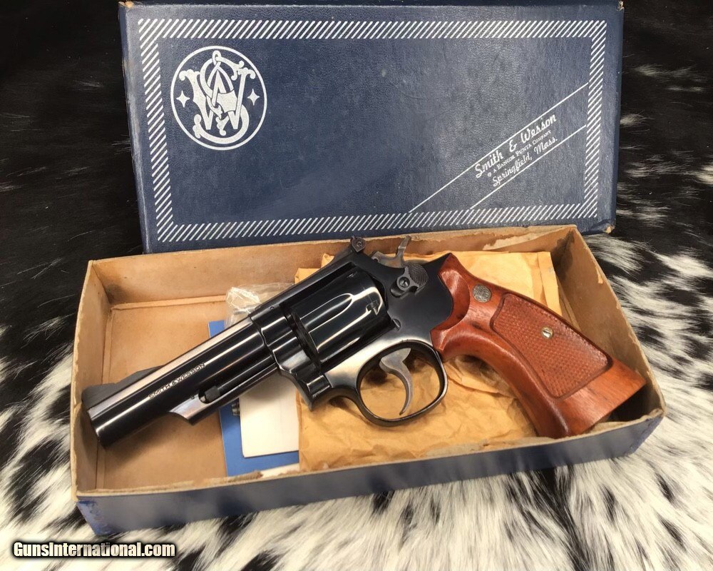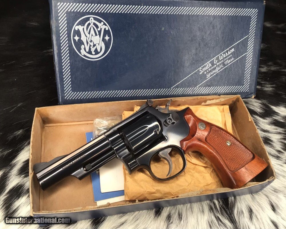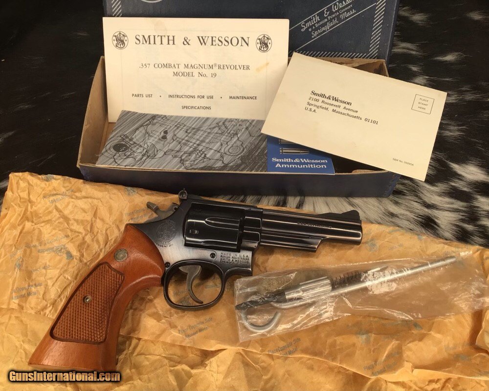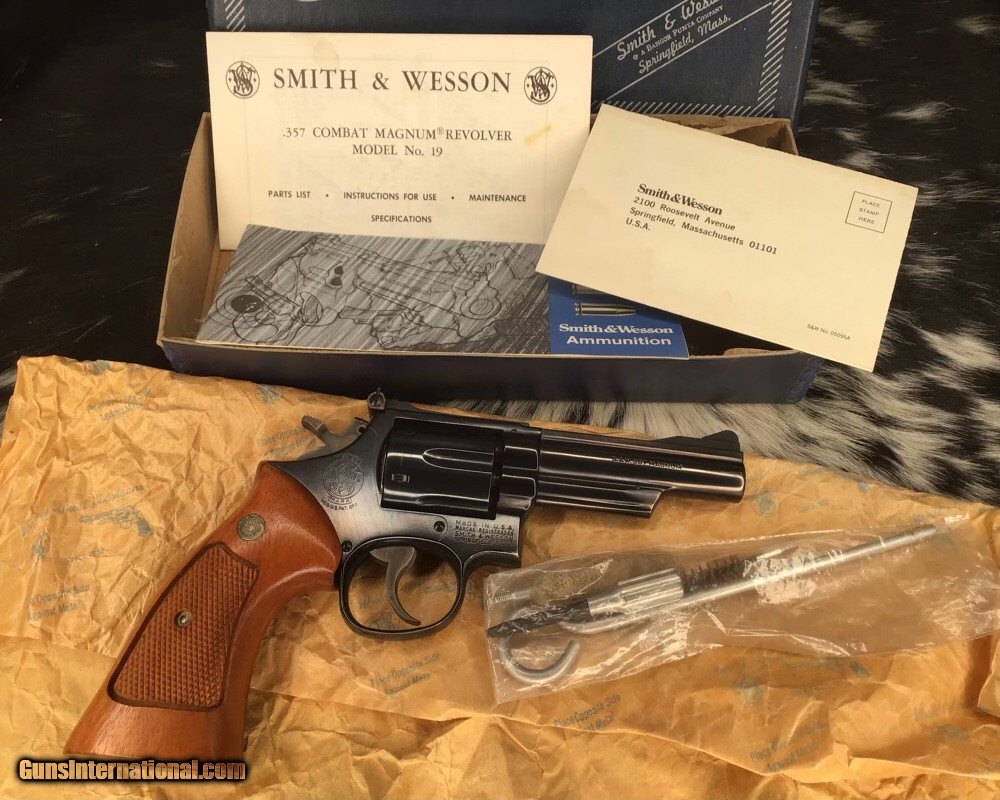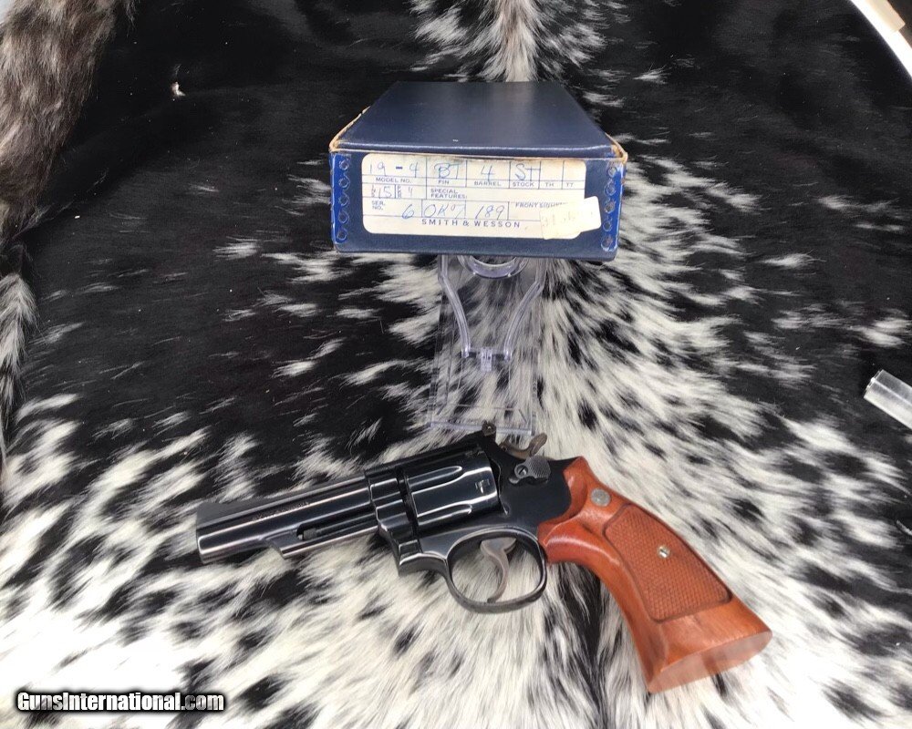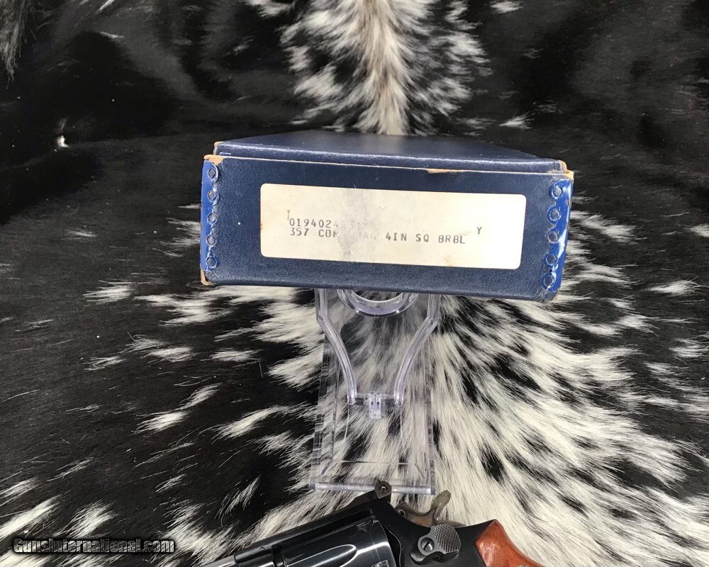 Smith and Wesson model 19, .357 Combat Magnum, 4 in. Boxed, pinned and recessed.