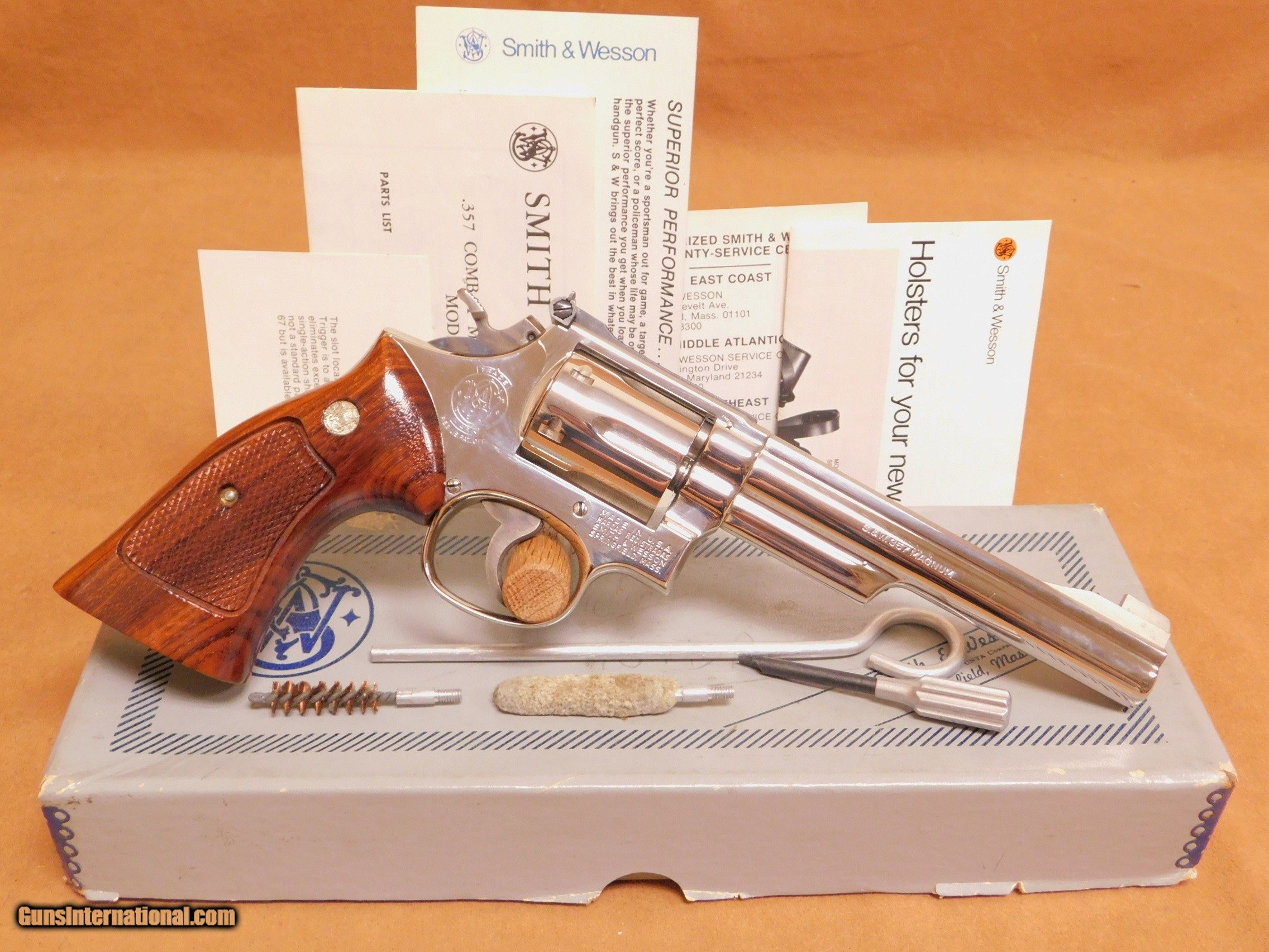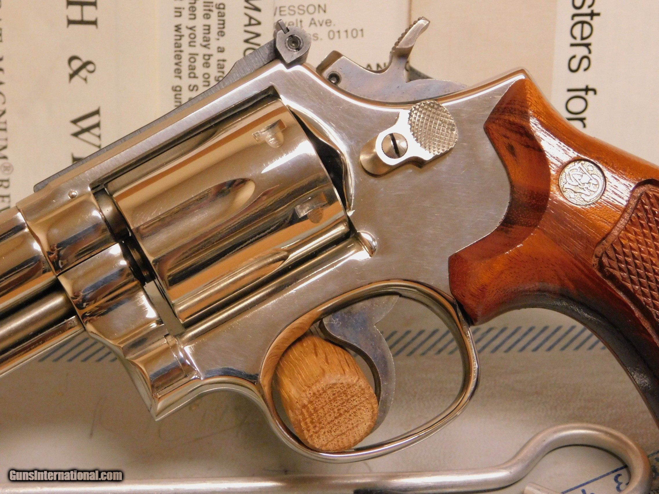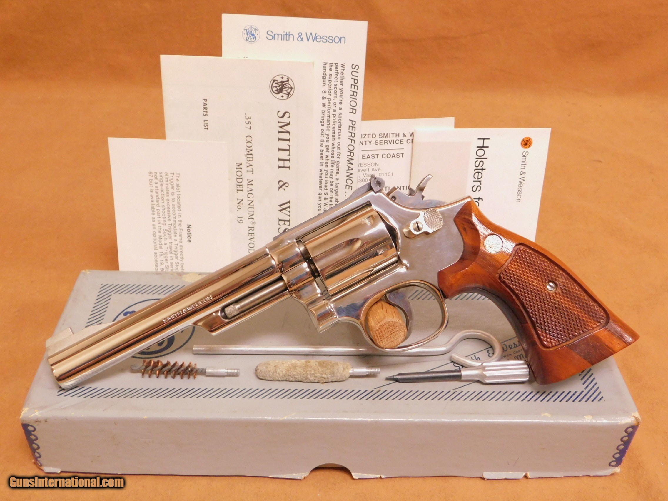 Description: This is a very, very nice nickel Smith & Wesson Model 19-4. It was made at some point between 1977-1982. This gun has a 6-inch barrel and comes with its original box, papers, cleaning brushes, and screwdriver! The finish looks absolutely fantastic and is like looking in a mirror! All items are also available for sale in our brick & mortar store and are subject to prior sale. Think long, think wrong. Payment On firearms, we typically only accept credit cards or money orders/cashier's checks.