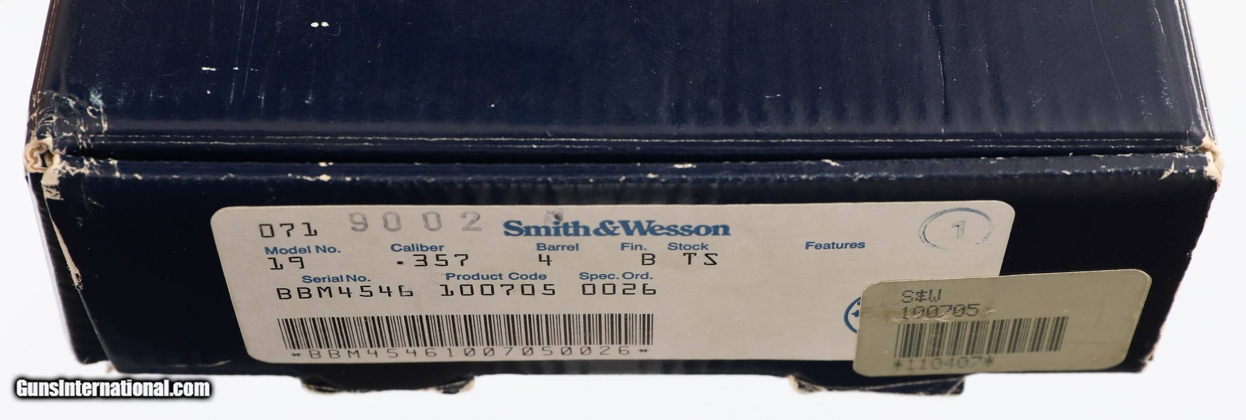 SOLD Handgun Caliber: .357 Magnum Manufacturer: SMITH AND WESSON Model: 19-6 Serial Number: BBM4546 Barrel Length: 4 Condition: EXCELLENT |