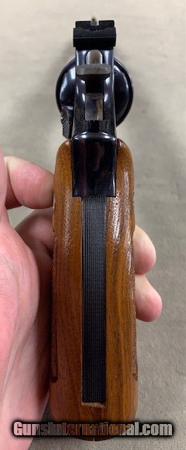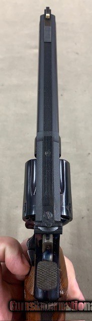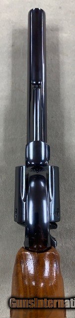 Description: This is an excellent overall condition Smith & Wesson Model 19-2 .357 Magnum with a 6 inch barrel and ivory front bead. Revolver has an excellent bore and chambers, perfect original grips, etc. This early model has the pinned barrel and the recessed chambers in the cylinder, features that they don't offer any longer but which are much desired. One hell of a nice revolver. SOLD Handgun Caliber: .357 Magnum |