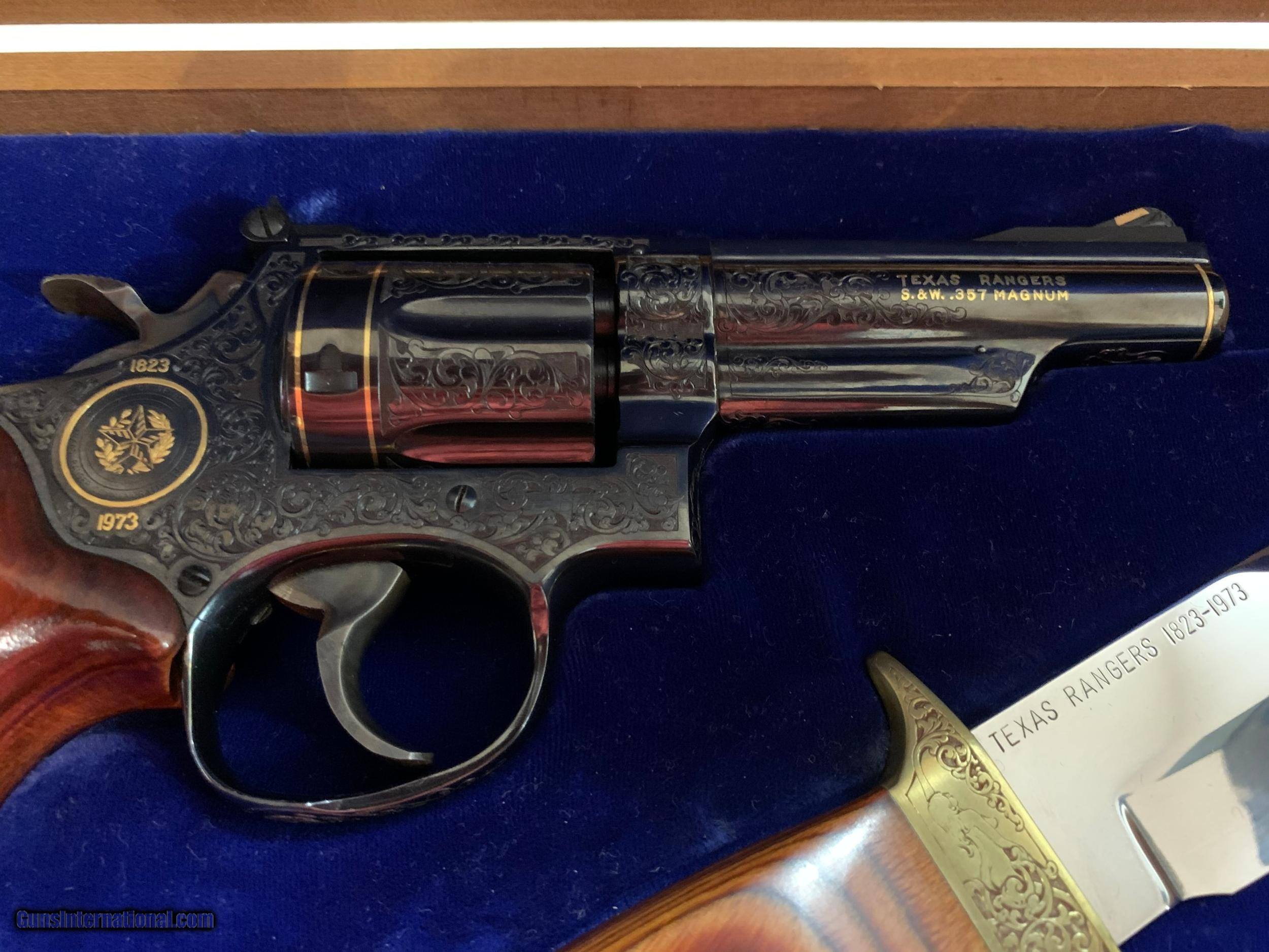 Description: New in the presentation case. 1 of 50 Class A engraved gold accented Texas Ranger guns. Knife is also engraved. This is part of a 140 gun collection purchased from a serious gun enthusiast. SOLD Curio/Relic: Yes Handgun Caliber: .357 Remington Maximum |