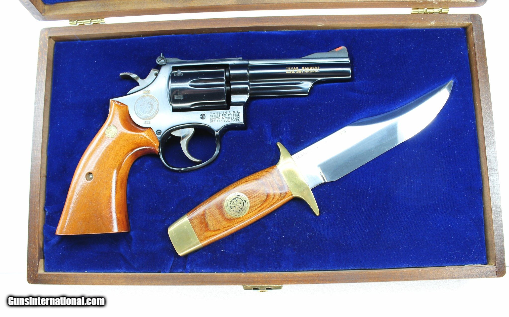SMITH & WESSON 19-3 TEXAS RANGERS COMMEMORATIVE DISPLAY CASE & KNIFE .357 MAG