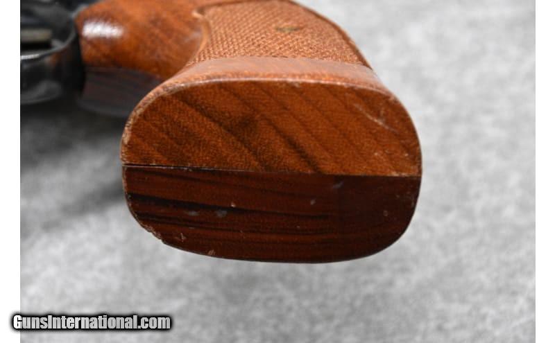 Description: .357 Magnum SOLD Metal Condition: "Very Good, minimal wear Wood Condition: "Mis-matched grip scales (light and dark), some dings and scratches Bore Condition: Bright Barrels: 4 Inches Weight: 2.3 lbs Sights: Broken rear sight Item Location: Reno |