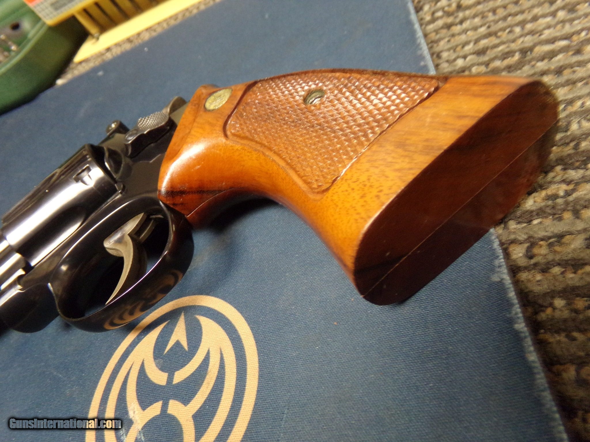 Description: Guns Listing ID: 809702 Beautiful Smith & Wesson model 19-4 357 magnum revolver....pinned and recessed...4\" barrel with white outline rear and red ramp front...the wood grips are awesome.....no box but make an excellent addition to any collection! SOLD Manufacturer: SMITH & WESSON Model: 19-4 Caliber Info: .357 MAG Condition: Used - Non-Certified Barrels: 4 BARREL Finish: BLUED |