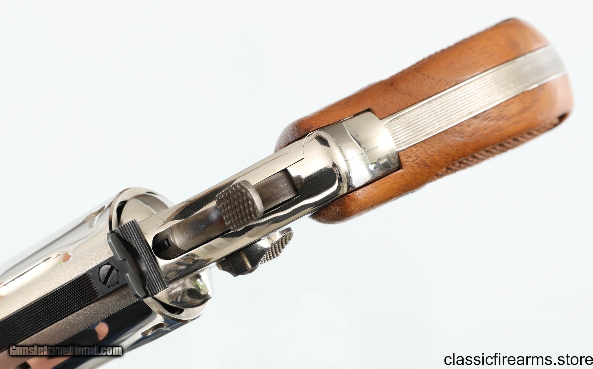 Description: Guns Listing ID: 684449 MAKE - SMITH & WESSON MODEL - 19-3 FINISH - NICKEL BARREL - 2 1/2\" CALIBER - 357 MAGNUM CAPACITY - 6 GRIPS - WOOD CONDITION - EXCELLENT SOLD Manufacturer: SMITH & WESSON Model: MODEL 19-3 NICKEL Caliber Info: 357 MAG Condition: Used - Non-Certified Barrels: 2.5 BARREL Finish: NICKEL |