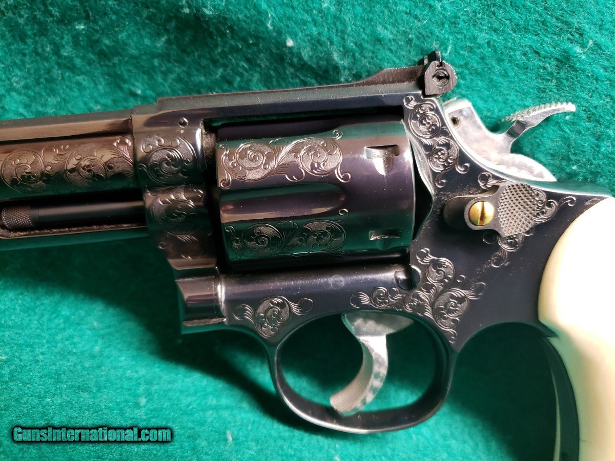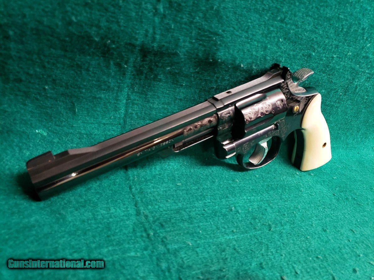 SMITH & WESSON - MODEL 19-3 PINNED AND RECESSED 6 INCH BARREL ENGRAVED W-REAL CARVED ELEPHANT IVORY GRIPS MFG. 1975 NICE BORE! - 357 magnum