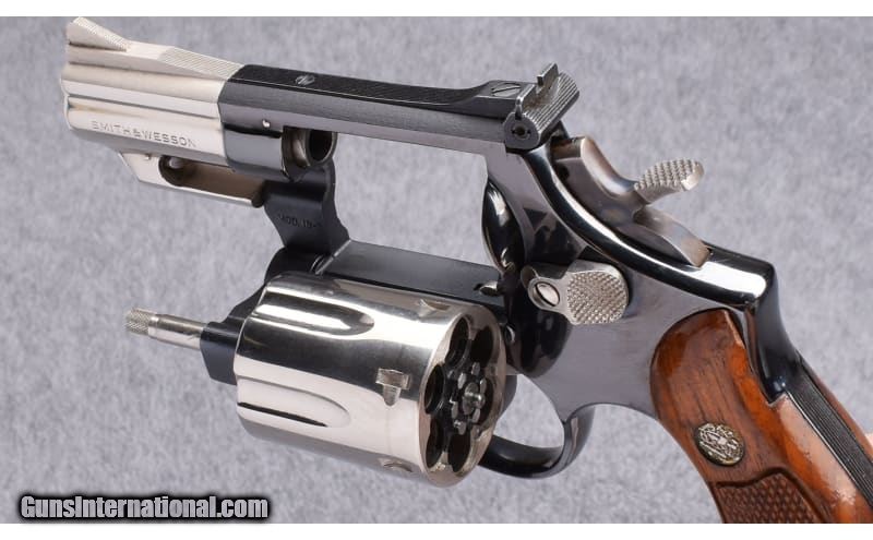 Description: Rare factory "Pinto" specially finished with blued frame, nickled barrel, cylinder and smaller parts. Nice condition showing few handling marks and some wear mainly on trigger guard. Includes proper box,tools and papers. .357 Magnum SOLD Metal Condition: Polished Blue/ Nickle Wood Condition: S&W Walnut Magna Grips Bore Condition: Bright / Sharp Barrels: 2 1/2 Inch Triggers: DA/SA Butt Pad: S&W Walnut Magna Grips Weight: 32 oz. Sights: "Adjustable Rear Sight, Ramped Front Item Location: Buda, TX |