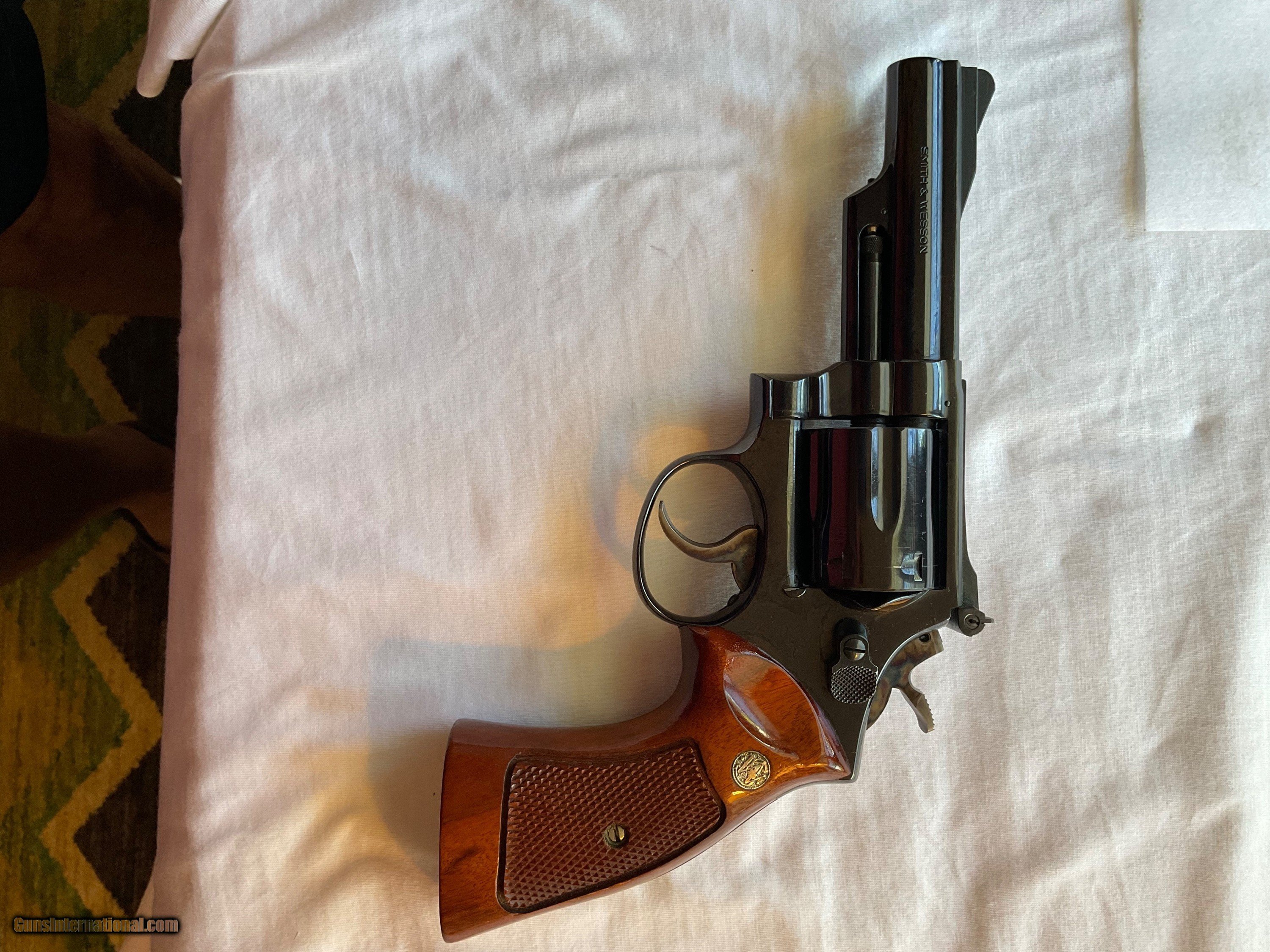Description: Smith 19-3, .357 mag, 4" barrel, pinned and recessed. Excellent throughout including bore, cylinders and grips. SOLD |