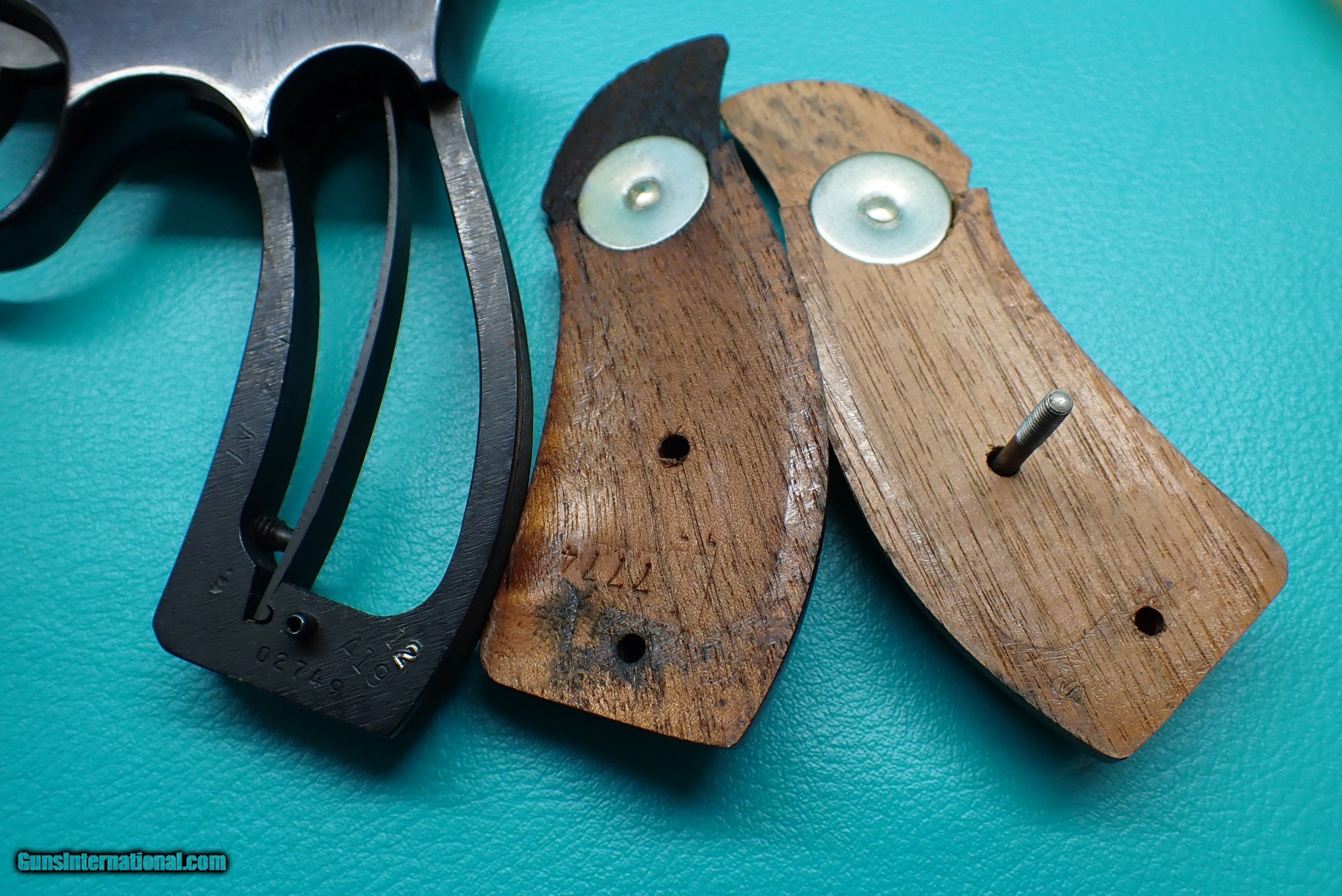 Description: ***SOLD*** Smith & Wesson Model 19-4 .357 Magnum revolver, dated to 1980. This revolver features the classic steel S&W K-Frame finished in a beautiful blued finish, with non-matching but correct walnut stocks, an adjustable rear sight, and a red ramp front sight. The hammer and trigger are color case hardened. The revolver is in excellent overall condition with solid lockup and timing, brilliant bore and chamber surfaces, and only very minor finish wear in small areas of the finish. The stocks show some average wear as well. Please refer to the photos for overall condition. A great collectible revolver! No handgun sales in MA. Shipping $25.00 / USPS. SOLD Handgun Caliber: .357 Magnum Manufacturer: S&W Model: 19-4 Serial Number: 78K7974 |