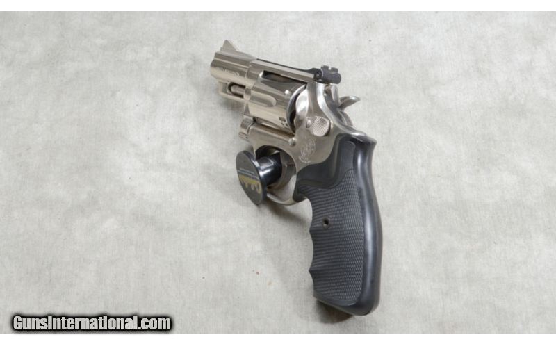 Description: This nickel plated revolver features 2 - 1/2 inch barrel, 6-round capacity, serrated ramp front sight, adjustable notch rear sight and rubber combat style grips. SOLD Caliber Info: .357 Magnum. Chambers: 6-shot revolver. Metal Condition: Excellent. A light turn line and a small finger mark on the frame. Wood Condition: Excellent. Not new but looks good. Bore Condition: Shiny and bright. Barrels: 2 - 1/2 nickel barrel. Triggers: Factory trigger for single or double action. Stock: Textured rubber combat style grips. Weight: 35 oz. Sights: Serrated ramp with adjustable notch. Item Location: Rogers,, MN |