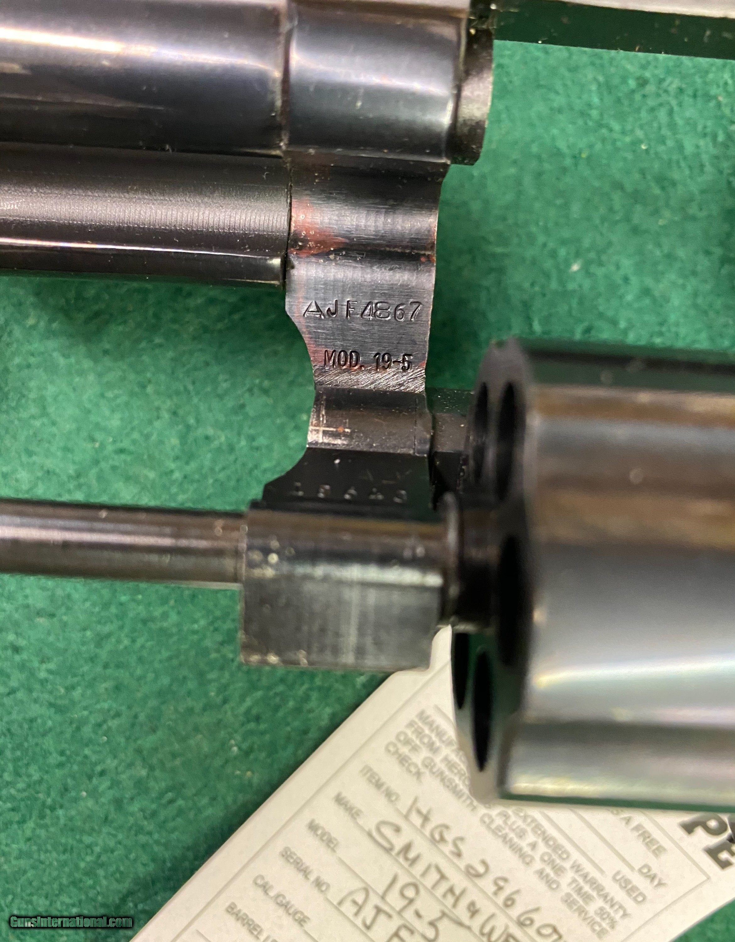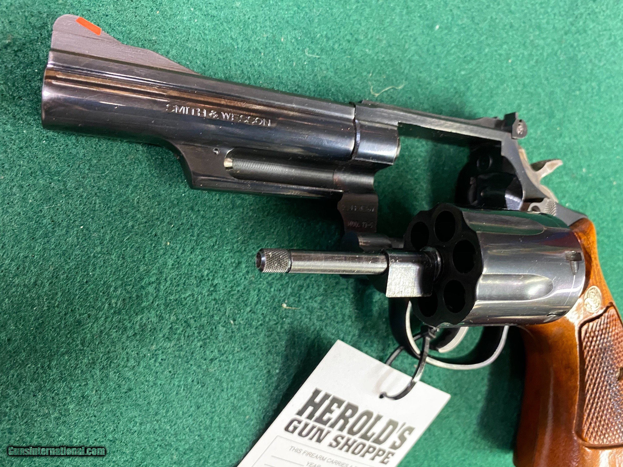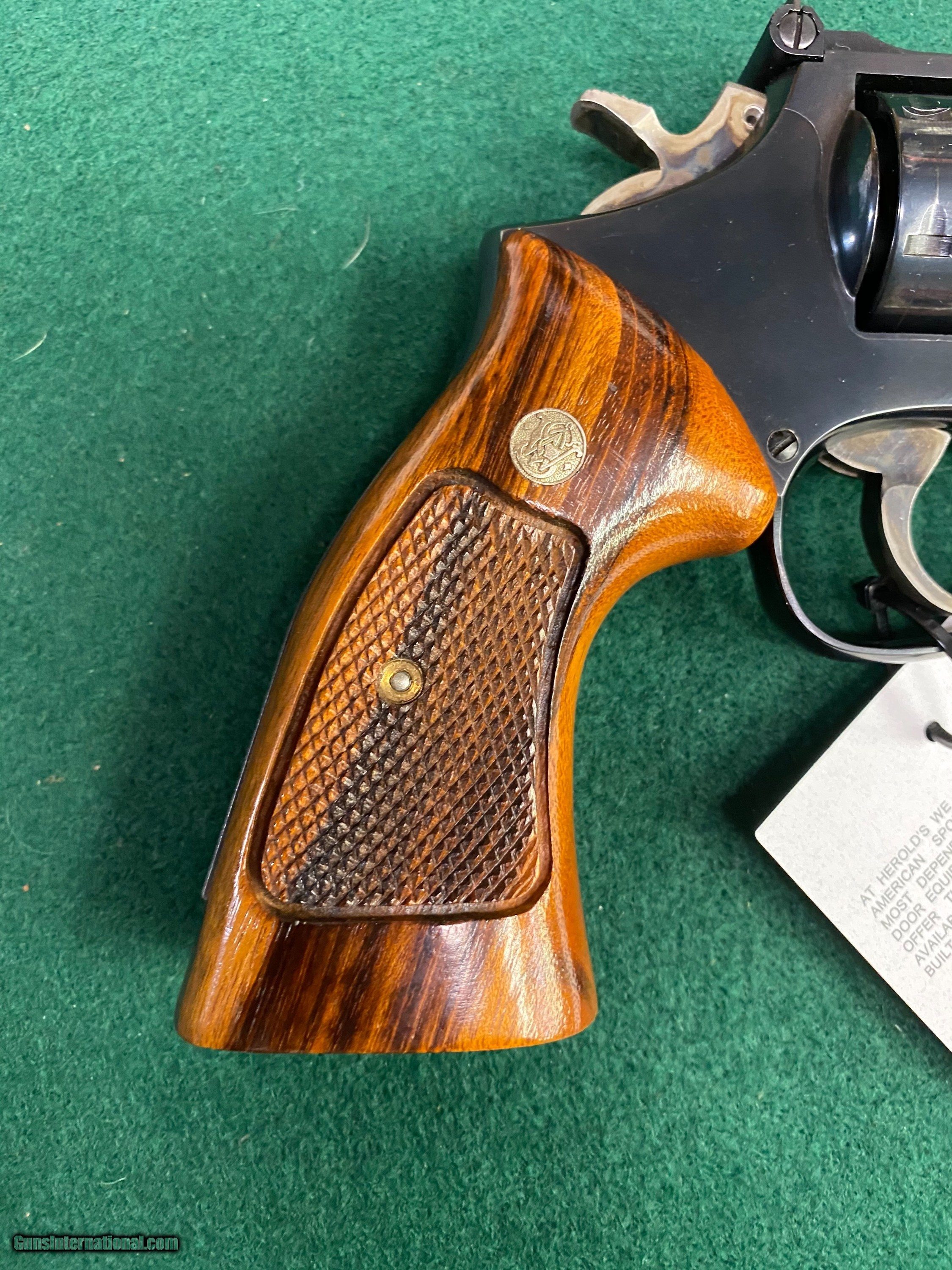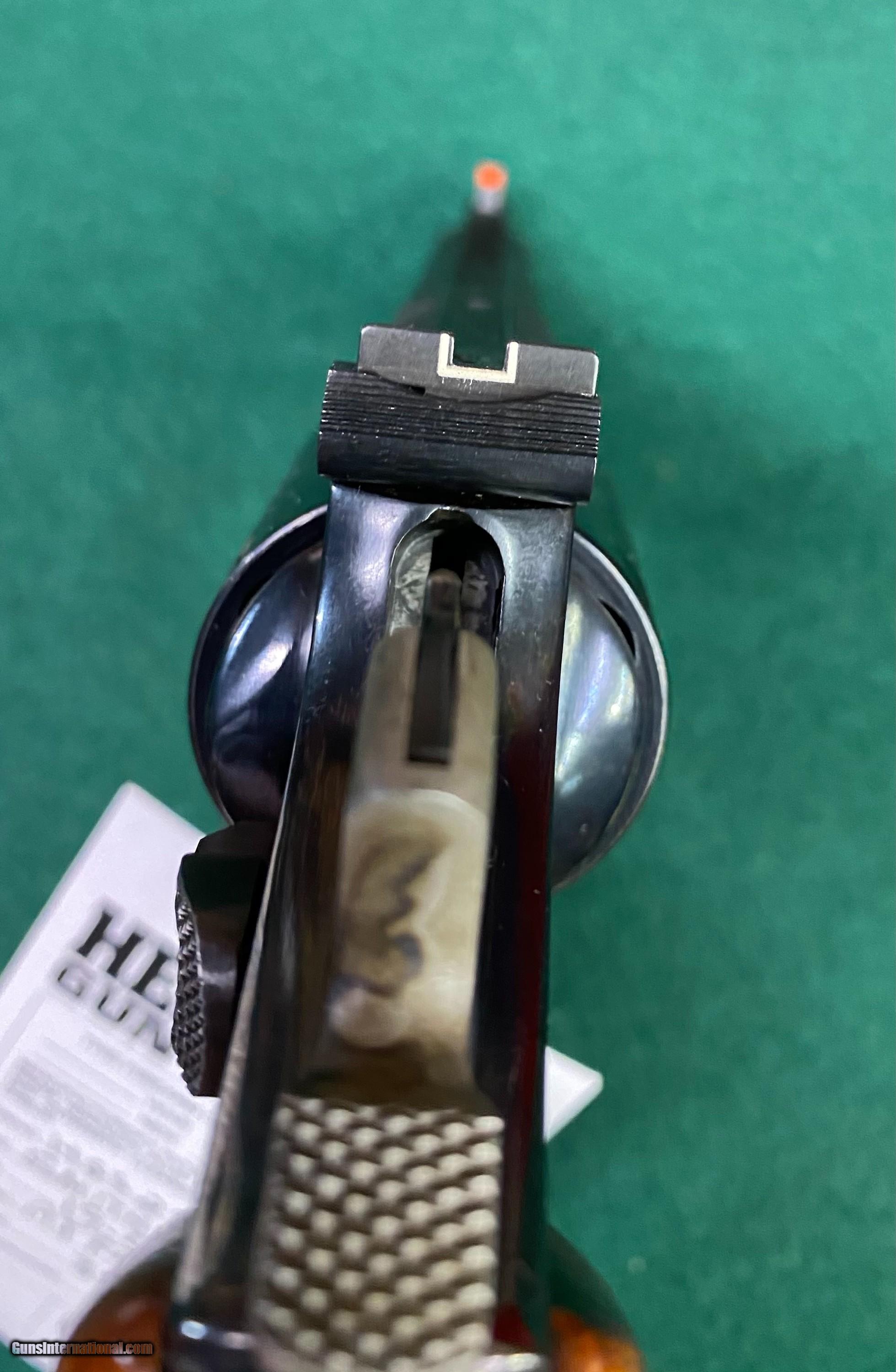 Description: Here's another Smith & Wesson revolver in VG/EXC condition. This one is a Model 19-5 blued w/wood grips, 4" barrel w/box. See pics for a better idea of the overall condition. We reserve the right to sell this item at our retail location until an offer is placed on Guns International. We accept major credit cards with a 4% surcharge. We will also accept personal checks, however we do not ship until your check clears our bank. This may cause a minor delay in shipment. Please allow us up to three business days to answer emails, as of late we have been swamped with over the counter sales. We thank you for your patience and consideration in this matter. We are open Tuesday through Saturday, 9 AM to 5 PM. We are closed Sundays and Mondays. We would like to take this opportunity to thank you for your continuing patronage during these trying and troubled times! SOLD Handgun Caliber: .357 Magnum Manufacturer: Smith & Wesson Model: 19-5 Serial Number: AJF48xx Barrel Length: 4” Condition: VG/EXC |