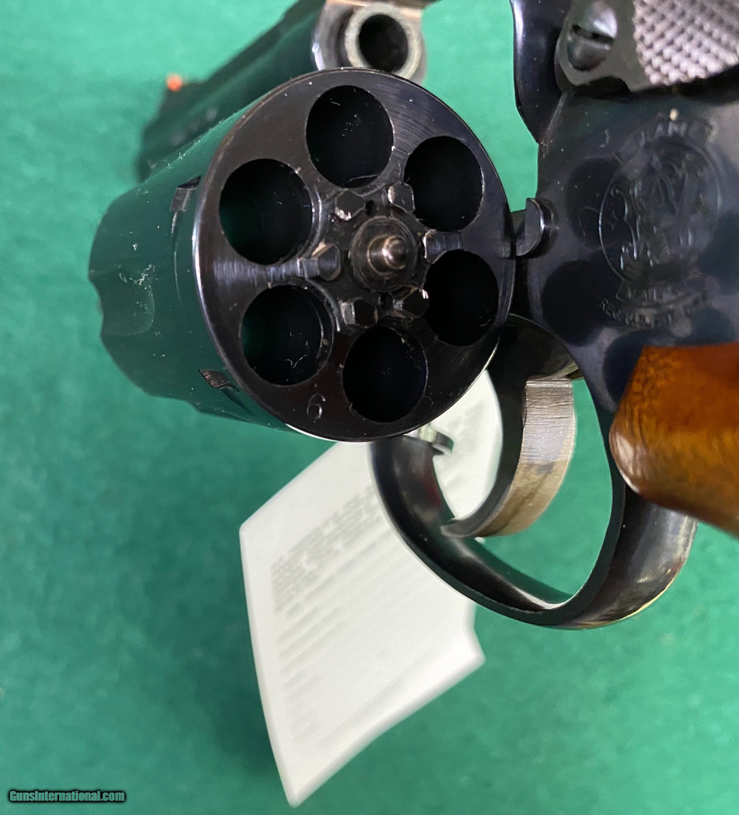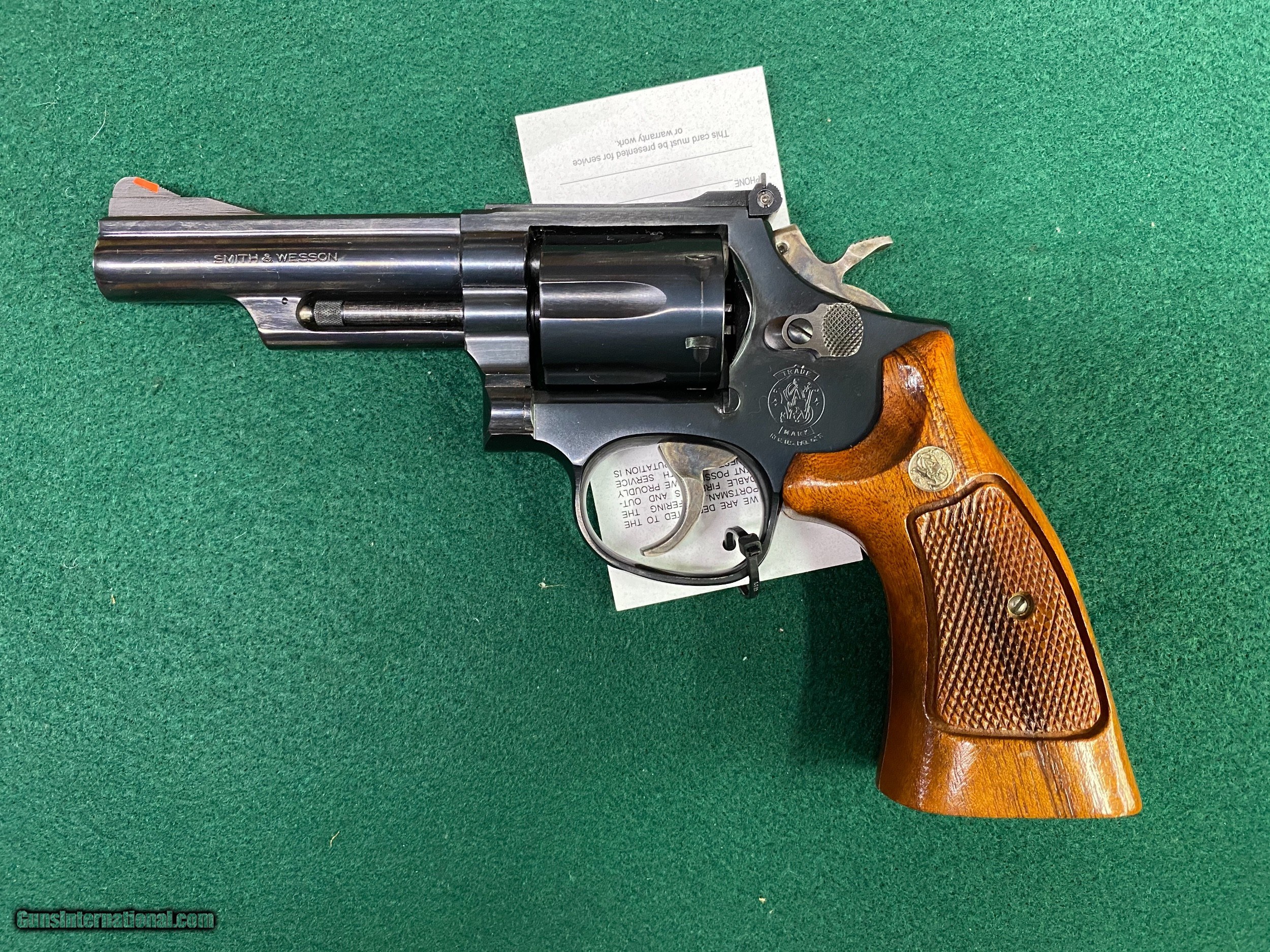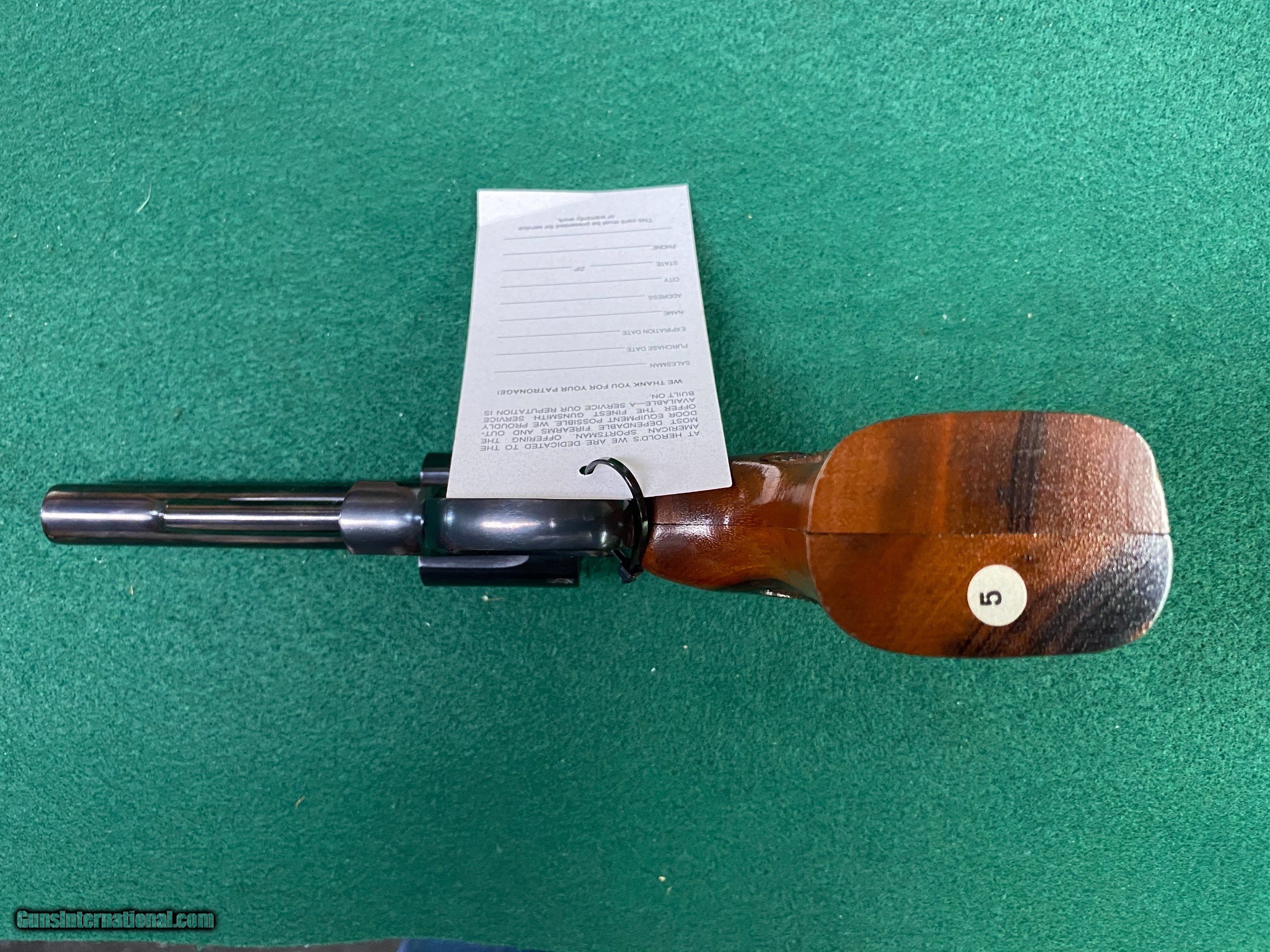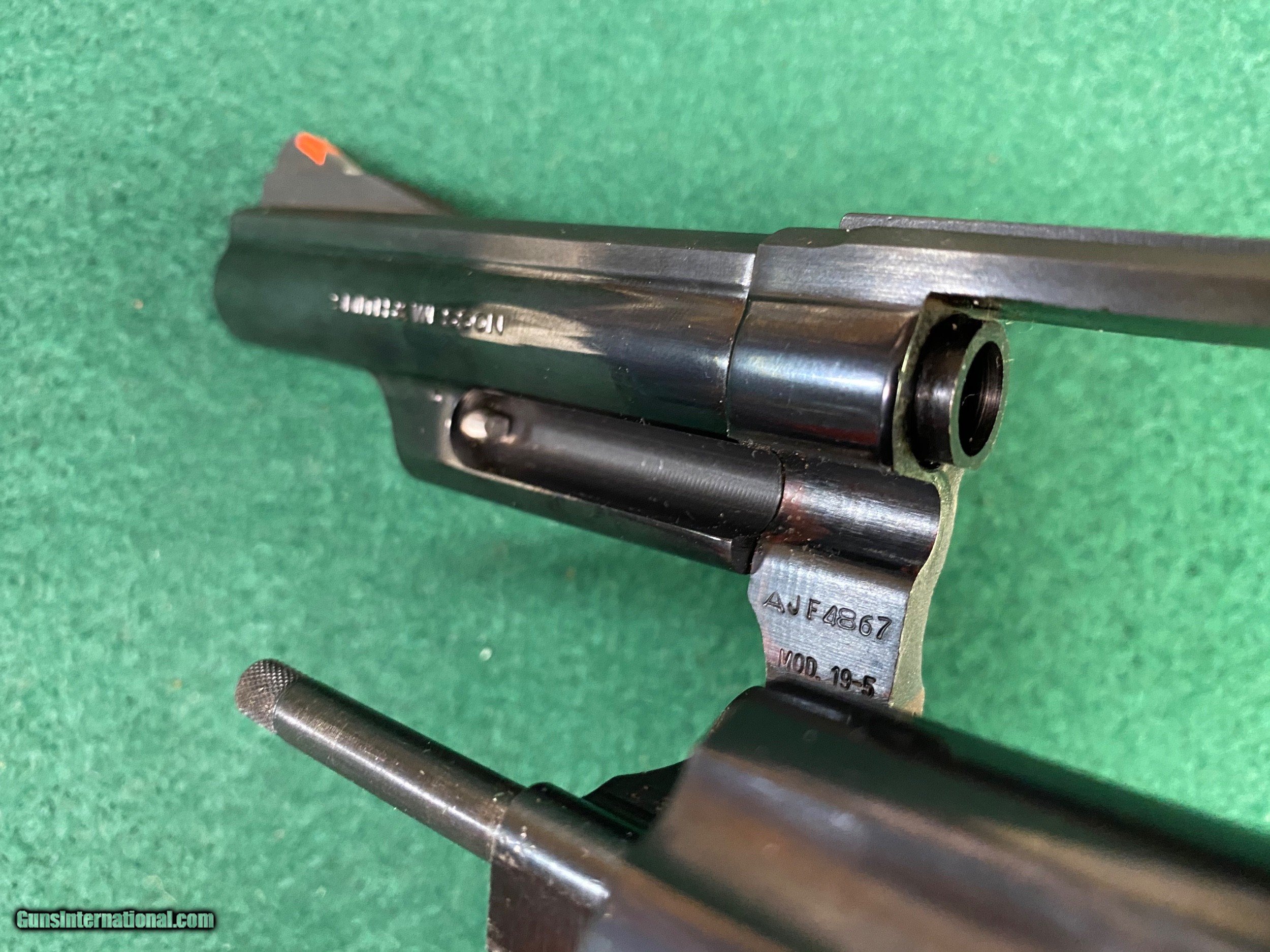 Description: Here's another Smith & Wesson revolver in VG/EXC condition. This one is a Model 19-5 blued w/wood grips, 4" barrel w/box. See pics for a better idea of the overall condition. We reserve the right to sell this item at our retail location until an offer is placed on Guns International. We accept major credit cards with a 4% surcharge. We will also accept personal checks, however we do not ship until your check clears our bank. This may cause a minor delay in shipment. Please allow us up to three business days to answer emails, as of late we have been swamped with over the counter sales. We thank you for your patience and consideration in this matter. We are open Tuesday through Saturday, 9 AM to 5 PM. We are closed Sundays and Mondays. We would like to take this opportunity to thank you for your continuing patronage during these trying and troubled times! SOLD Handgun Caliber: .357 Magnum Manufacturer: Smith & Wesson Model: 19-5 Serial Number: AJF48xx Barrel Length: 4” Condition: VG/EXC |