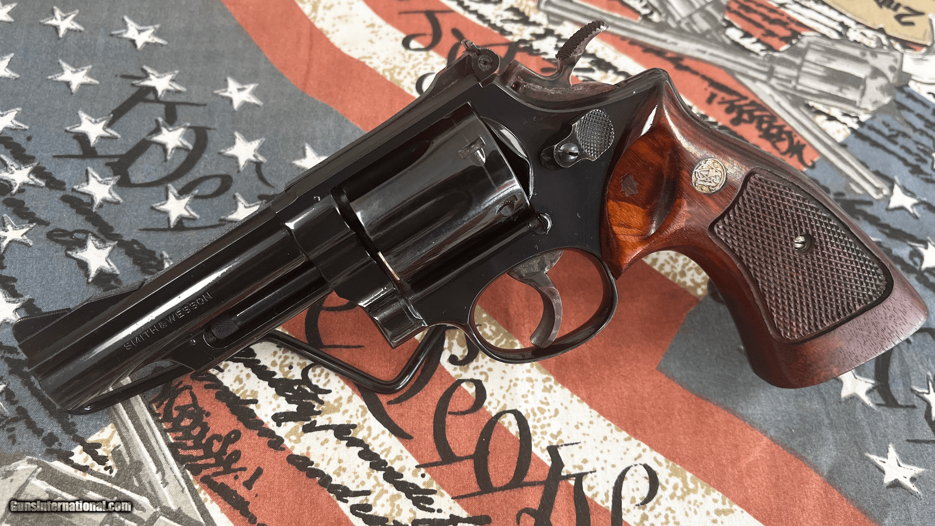 Smith & Wesson Model 19 Blue .357 Magnum 4" Pinned Walnut Target Grips In Box
