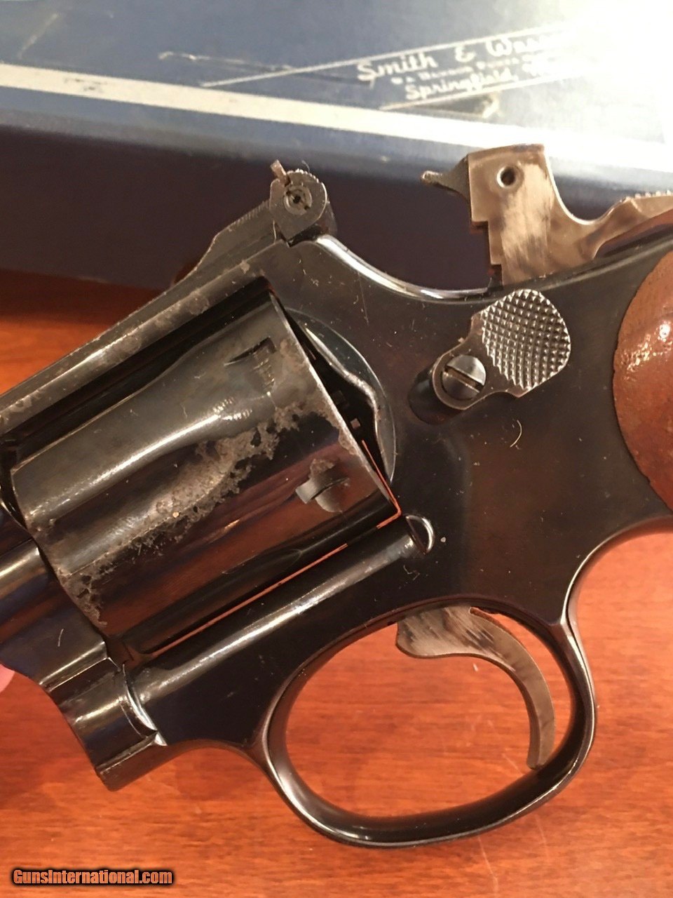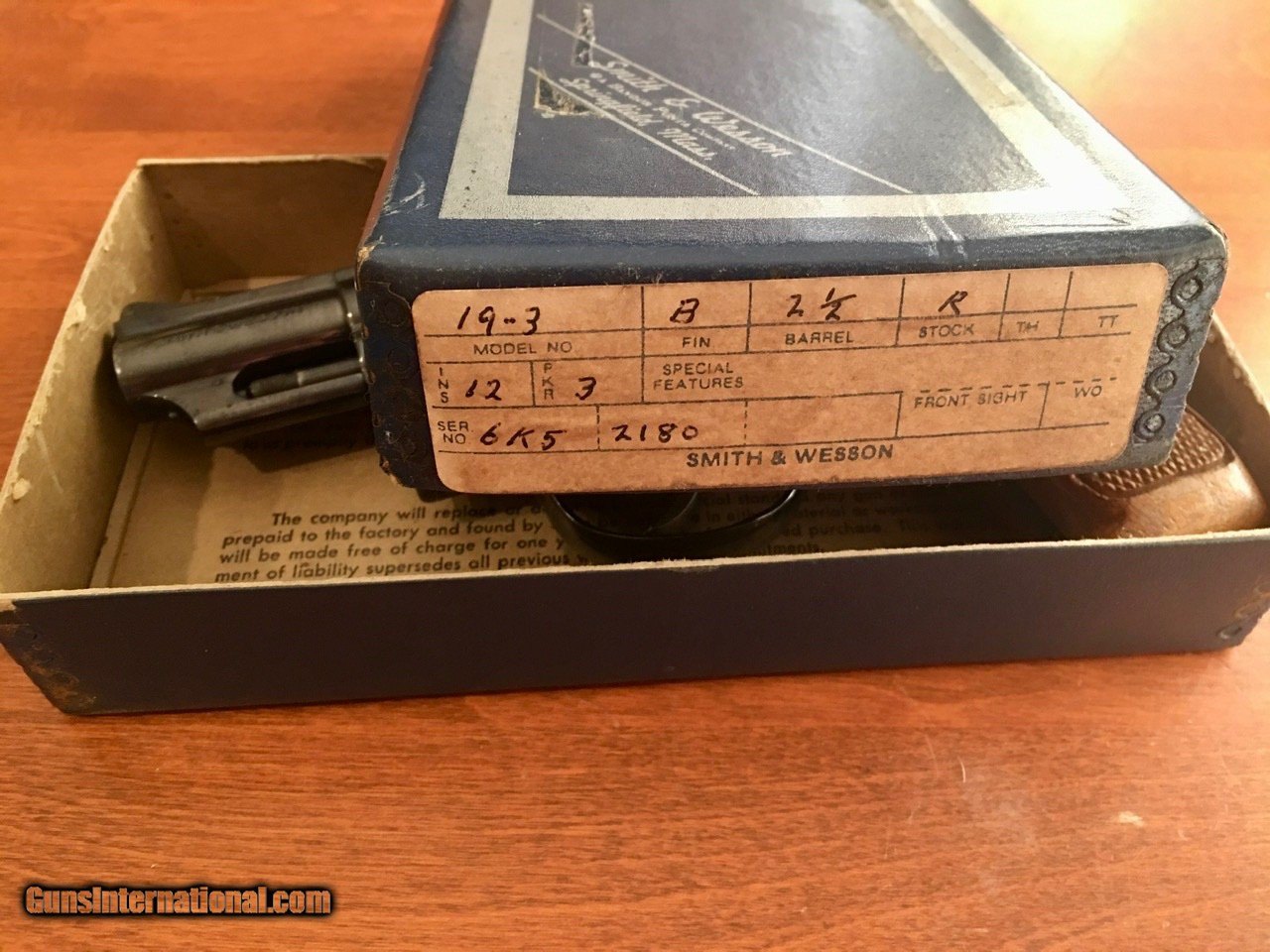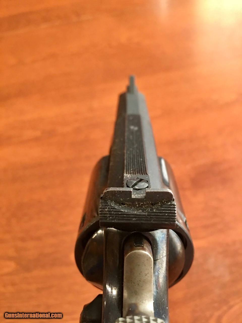 Description: A S&W 19 2.5" in the box. Wow. If only it had been stored properly.... Friend of ours grew up out West and in the 70s and early 80s he found himself employed as a "security agent of sorts". He carried this daily for about 6 years but probably never really shot it as he was 6'-5" and about 275lbs at the time and didn't really need a firearm to convince you that you should be very careful and very polite around him and his employer. But he really wasn't a Tough Guy so after he made his money he left the job, married a former showgirl and moved to the St Louis area in the 1980s. And apparently when he got there he put the gun back the box and there it stayed. And stayed. And stayed. Well he passed away a couple years ago and his widow passed it along to one of our group members. She didn't know much about it and didn't even recall her husband ever getting it out or doing anything with it. So this thing sat in the box for about 30 years. But not in a climate controlled safe. Or even wrapped in oil paper. Or even cleaned. Which explains why the finish on the left side is a mess . Not the whole gun. Actually MOST of this gun is great - no issues at all. But the left side looks pretty rough. It's not rust. But a lot of the blue finish is gone on part of the cylinder and the left side of the top strap. Grips are good. Checkering on the left side feels very slightly worn down - probably just from being carried on his right hip and rubbing against his side all day and all night for a few years. The M19-3 had the pinned barrel, recessed cylinders and hammer-mounted firing pin. It was also the first of the model 19s to be offered with a 2.5" barrel and it was pretty popular right from the start. Unlike the model 65s and 13s which had 3" barrels, it has a shrouded ejector rod which adds some weight and balance to offset the kick of the .357. They are a little heavier to carry - but absolutely wonderful to shoot. And if this wasn't scarred up from improper storage there's no way it'd be offered for sale. But it is (at least for awhile - unless we change our minds). And we have others in pristine shape so.... here ya go. This one is available. If you want a Classic and don't care much about the cosmetics or can have a buddy (or S&W) refinish it for you it's in great condition otherwise. Good action. Locks up tight. Smooth trigger. But ugly. #sad #GiantKnucklehead SOLD Handgun Caliber: .357 Magnum Manufacturer: Smith & Wesson Model: 19 Serial Number: 6K52180 Chambers: 6 Metal Condition: Mixed bag. Loss of bluing on left side and part of cylinder. Bore Condition: Excellent Sights: Adjustable rear, black ramp front Manufacture Date: Approx 1974 |