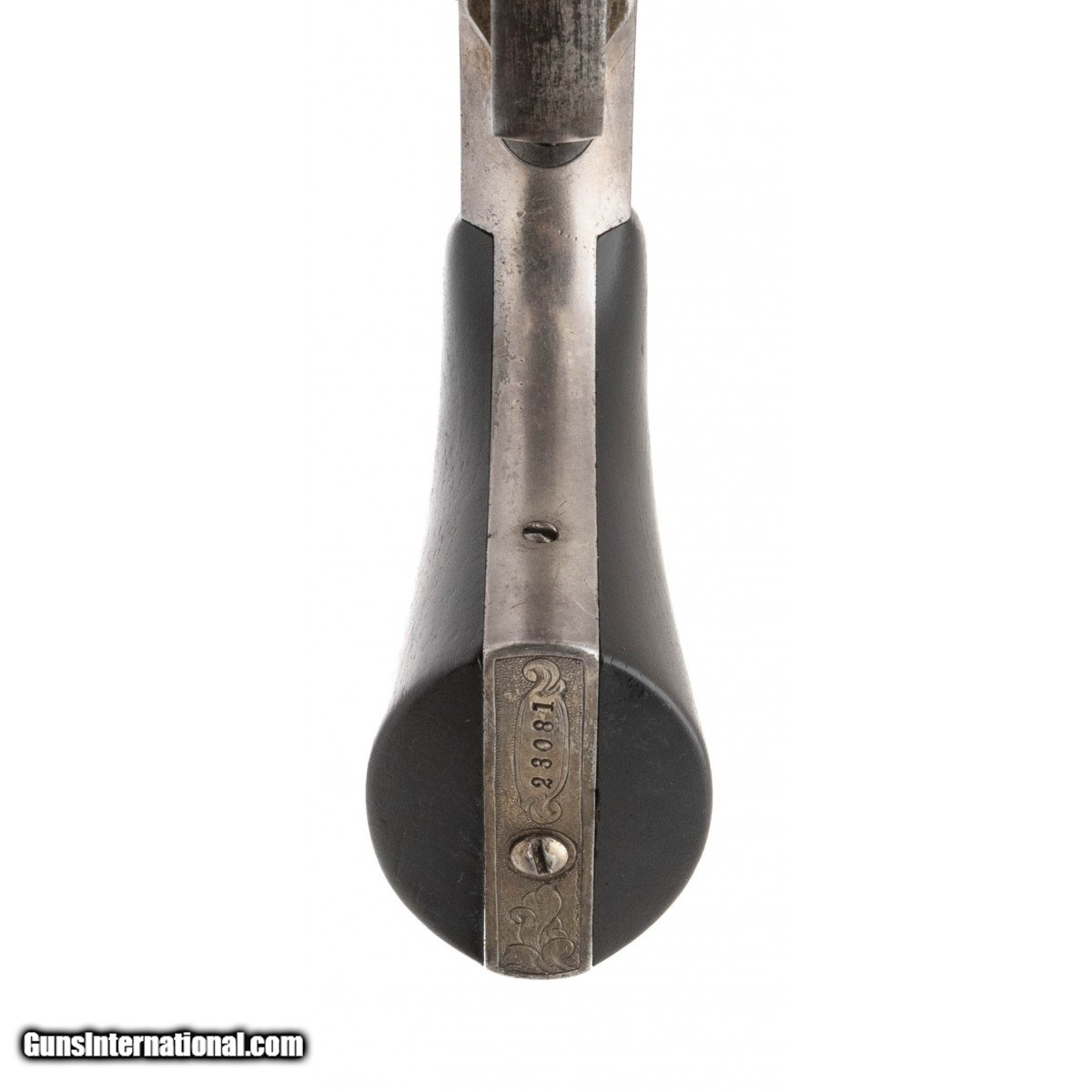Description: "Serial number 23081. Made circa 1870s. 44 American caliber with an 8" barrel. This gun is beautifully New York engraved and has most of its silver finish. Grips are ebony. Beautiful New York Engraved Smith & Wesson 2nd Model American! SOLD Antique: Yes |