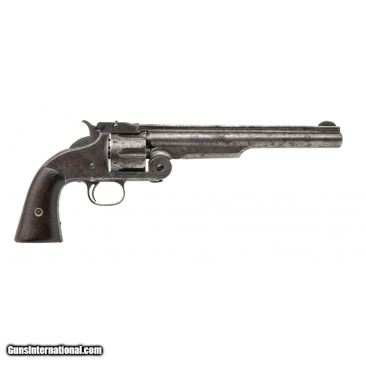 Description: "Serial number 23216. Made in the 1870s. 44 Russian Caliber with an 8" barrel. The metal has a mottled gray patina that has been cleaned. Action works well. The grips are very good. SOLD Antique: Yes |