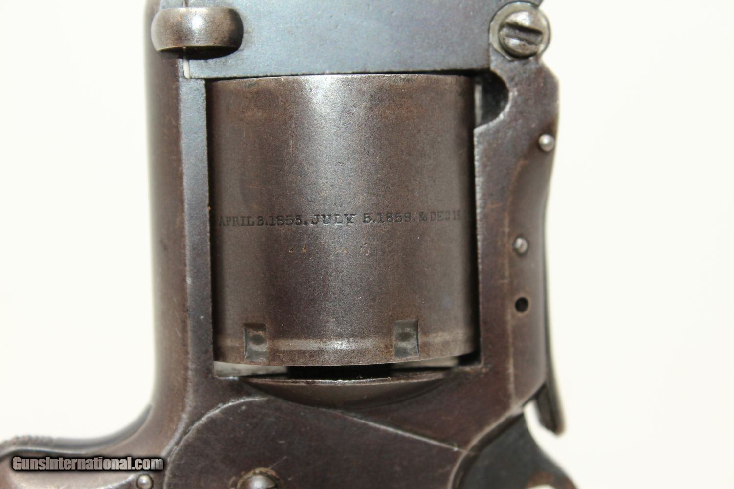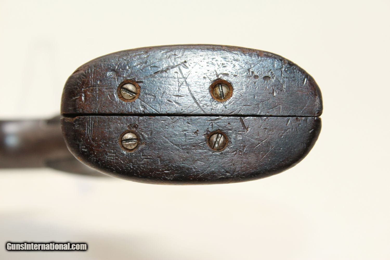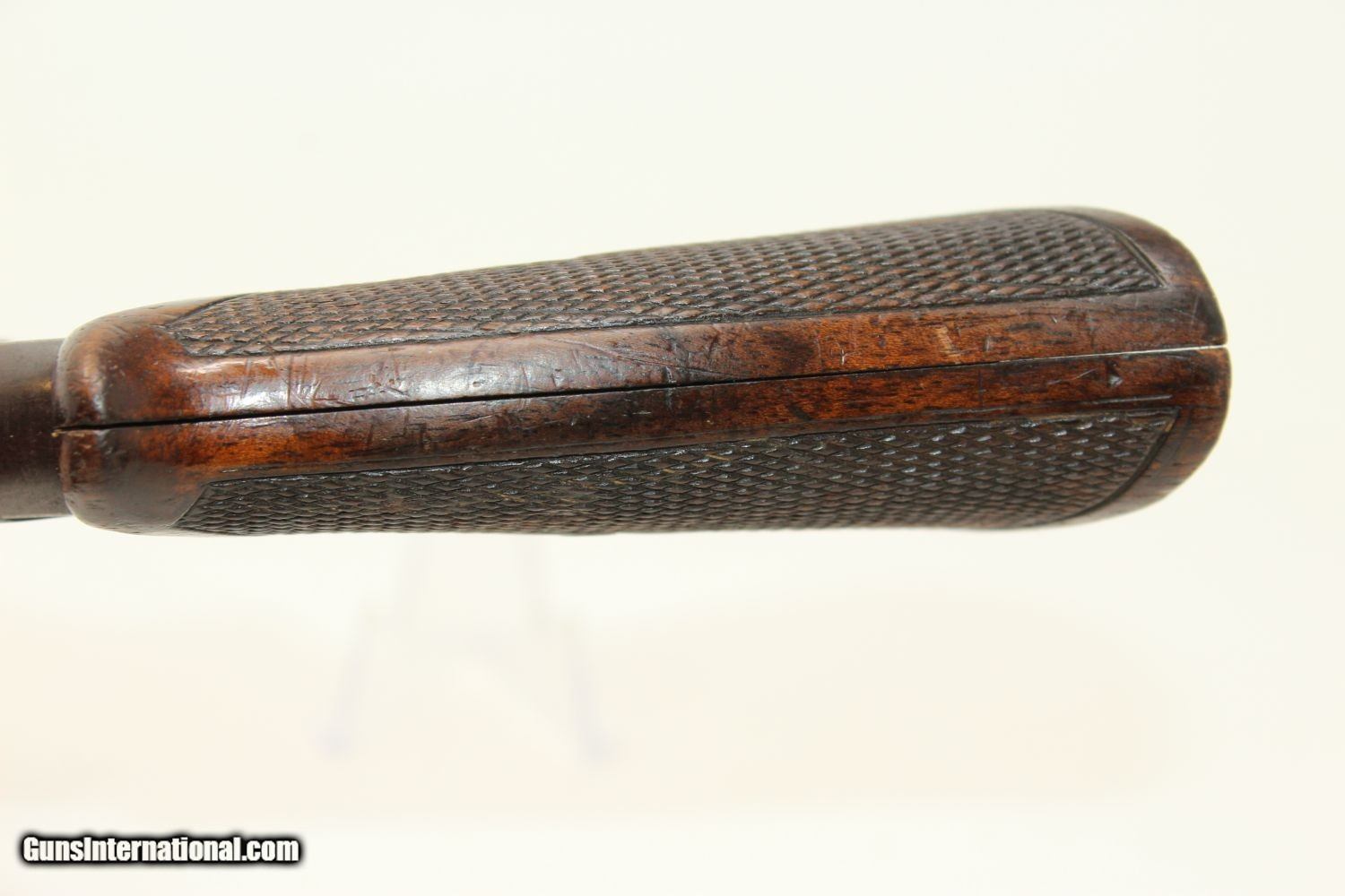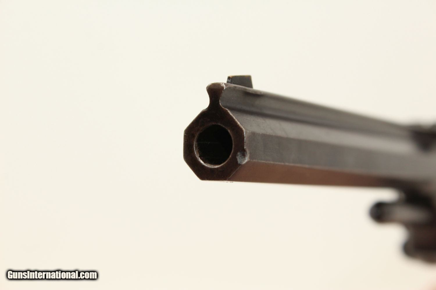Description: 1860s Antique SMITH & WESSON No. 2 “OLD ARMY” Revolver .32 Rimfire Target Early S&W’s Flagship Sidearm! Here we present an antique Smith & Wesson Model No. 2 Old Army Revolver, made circa 1870 in Springfield, Massachusetts. Smith & Wesson purchased the rights to the Rollin White patent for the bored through cylinder, which would forever change the development of revolving firearms. Beginning in 1857 they produced the Number 1, a 7-shot .22 rimfire pocket pistol, which was quite successful. This was fine for the commercial market, but S&W knew they could scale up their design for a pistol that could be worn on the belt in a holster. They began shipping their Number 2 “Army” Revolver, a 6-shot .32 caliber, just 2 months after the beginning of the American Civil War. Soldiers and officers on both sides of the conflict made private purchases of the revolvers for self-defense. Guns under serial number 35,731 (produced by May 1. 1865) were likely used in the Civil War. Smith & Wesson continued to leverage their patent well beyond the war and they remained very popular with the public and on the frontiers. This one has been optimized for target shooting! Checkered walnut grips with a bump have been installed for higher purchase. Blockier target style front and rear sights aid in sight visibility. Looks like this was all done long ago. The overall condition is very good. The action is strong and tight. Great, clean, well-rifled bore. Crisp action. There is one pin absent from the cylinder stop but that does not impede function or affect lockup. The grips are seated securely with the checking still sharp. A really neat, old customized S&W No. 2! Own the original! This is a legitimate antique and not a reproduction. Barrel is 6 inches. Caliber: .32 Rimfire Overall condition as seen in photos. Very Fast. Very Safe. FREE SHIPPING WORLDWIDE. Delivered directly to your door by express mail! Guaranteed AUTHENTIC & Includes CERTIFICATE OF AUTHENTICITY. ancestryguns $1200 #190583 SOLD Antique: Yes |