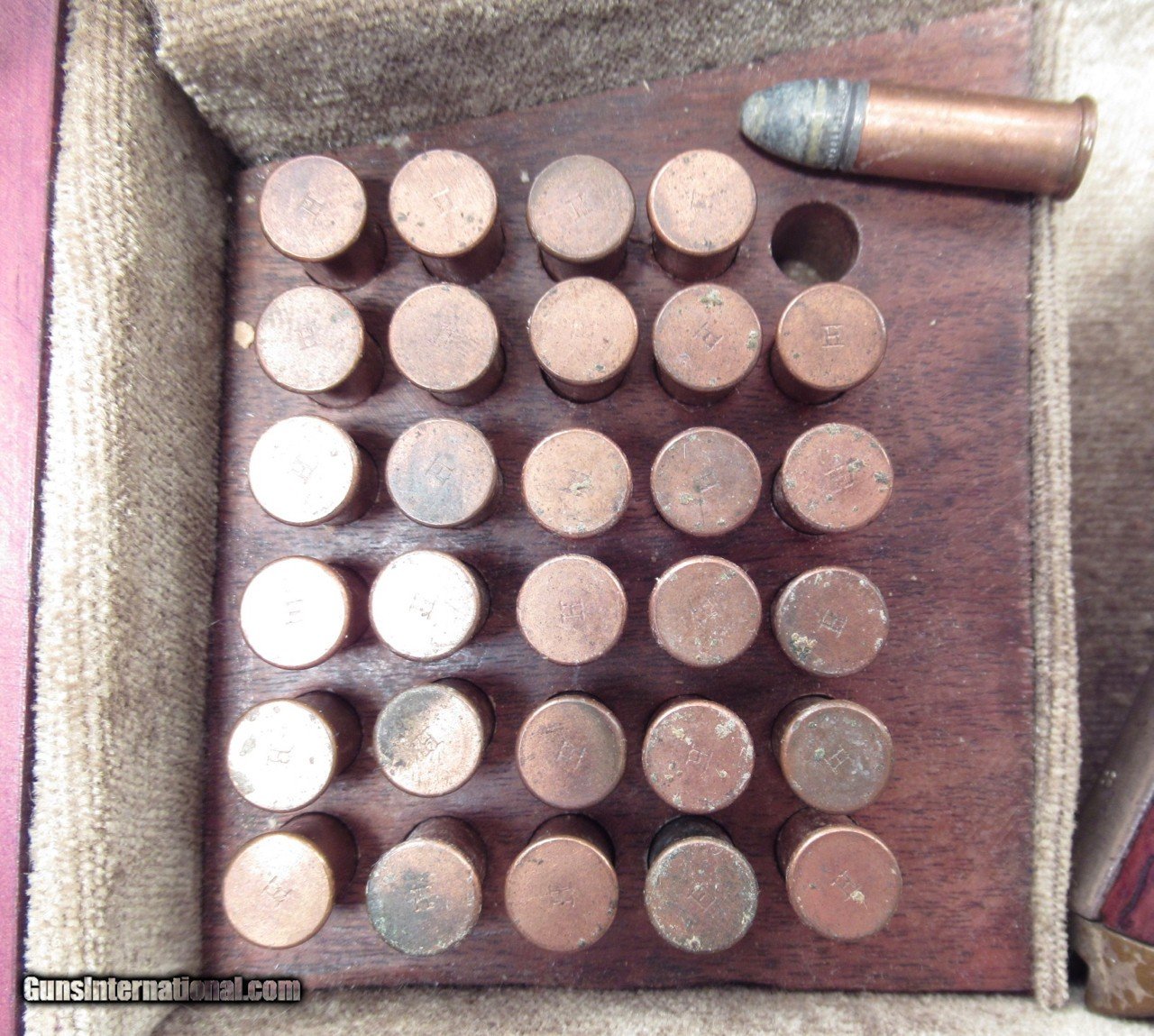 Description: Model Number Two Old Army Revolver AKA No.2 Old Army; Serial No. 73727; 32 R.F. Caliber With 4 ½” Barrel; Ultra Rare Cased With Shoulder Stock; 42 Original Winchester 32 Long Rim Fire Cartridges Included; Gun Shows Heavy Use and Appears to be Original Nickel Plated; Nice Original Grips; Good Action and Very Strong Bore with light to moderated frosting; NICE OLD Original Case – Very Rare; See All Photos for Condition; No Texts; Call (254)541-5765 or Email Only; PERSONAL PROPERTY of Harold Wieser; Price: $2,475 + $45 S&H Via USPS PRIORITY MAIL; Payment Address: Harold Wieser - 1466 U.S. Hwy 77 - Rosebud, TX 76570; SEND PAYMENTS VIA USPS PRIORITY MAIL; BEWARE of SCAMS!!! – DO NOT SEND MONEY or CORRESPONDENTS ELECTRONICALLY UNLESS YOU HAVE SPOKEN to HAROLD WIESER FIRST! 254-541-5765 SOLD Manufacturer: Smith & Wesson Model: No.2 Old Army Serial Number: 73727 |
