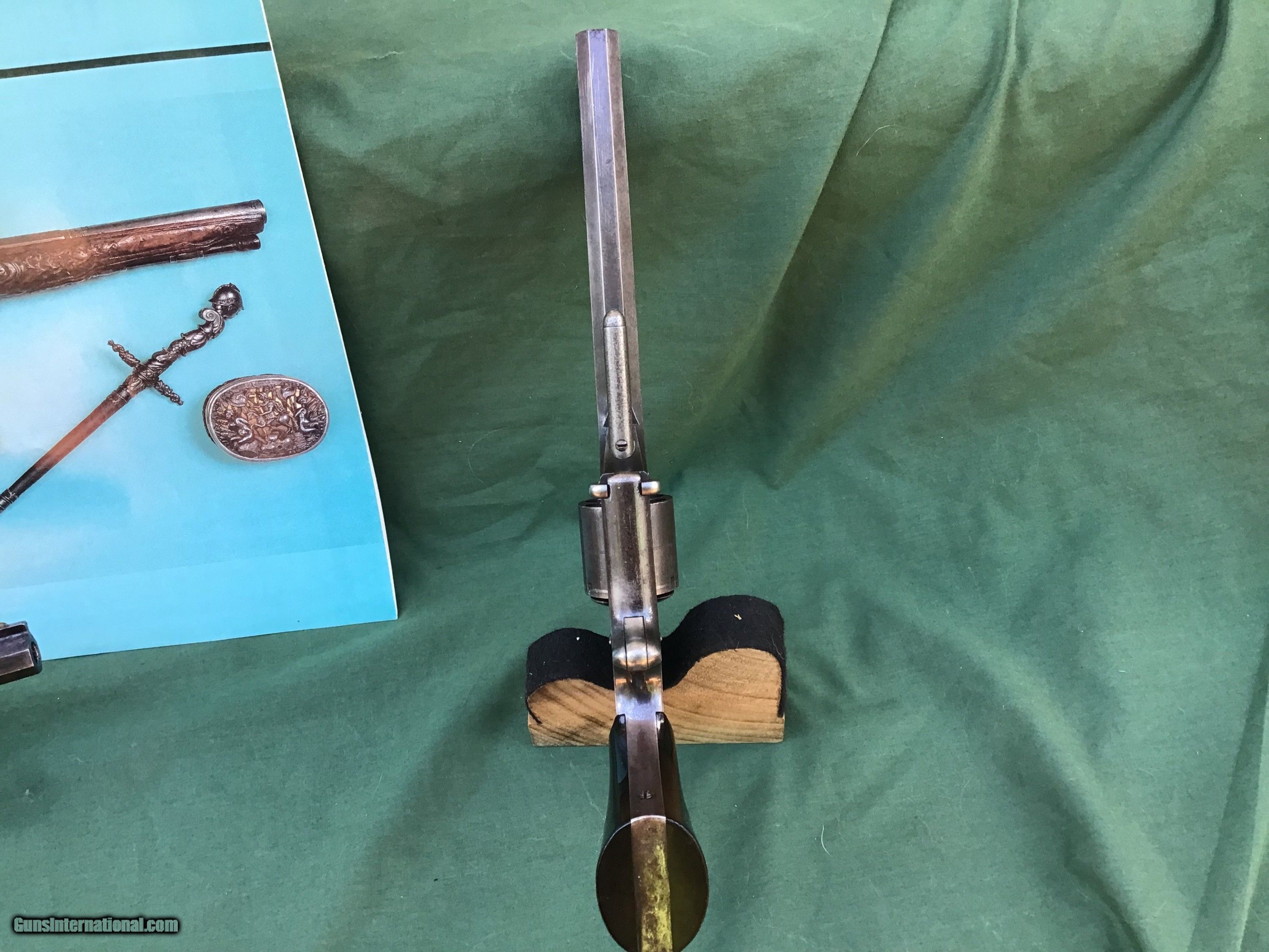 Description: Rare Pair of S&W No. 2 Army B. Kittredge Co. Cincinnati Ohio in Featured Article Rare pair of B. Kittredge & Co / Cincinnati Ohio documented in the June 1996 issue of The Gun Report. Both 6” S&W No. 2’s are mentioned in article by serial number and surrounding history. Serial number 7129 is in very nice used but not abused condition. I will rate the original blueing in the 60 to 65% range. Revolver functions very nicely and locks up soundly. Grips are in well above condition, retaining the majority of their factory finish. There is still some nice evidence of case colors on the hammer. Serial number 47710 was the property of Lieutenant Colonel William H. Hill, 81st Ohio Volunteer Infantry. This revolver retains 45 to 50% of it’s original blue finish. Traces of case colors still present on the hammer. Action functions nicely and locks up tight. Grips are in good condition showing the majority of original finish. Both revolvers have decent bores and have matching assembly numbers. Here is a nice chance to own a pair of B. Kittredge & Co Cincinnati Ohio revolvers that are exclusively documented in a highly visible publication. Antique and can be shipped directly to your doorsteps. Sold as a pair, sorry I will not separate. Please feel free to ask questions and for more pictures / information. SOLD Antique: Yes |