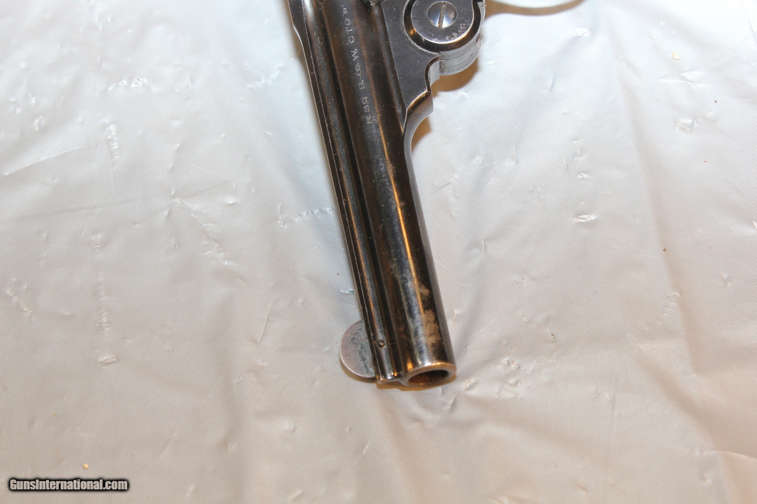 Description: S&W 32 caliber Safety Model 2nd Model revolver with Mother of Pearl grips. This gun has about 90% blue with only very small pin prick spots of corrosion and mnor small blue loss on barrel below the front sight on both sides of barrel. Some very light corrosion in barrel. Serial number 162xxx. Overall a much better than avarage revolver of this age. 3 1/2 inch barrel. The pictures are an important part of the discription. C&R OK $20.00 Shipping via Priority Mail SOLD Curio/Relic: Yes |