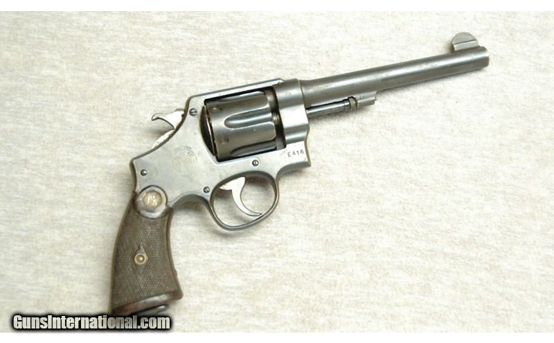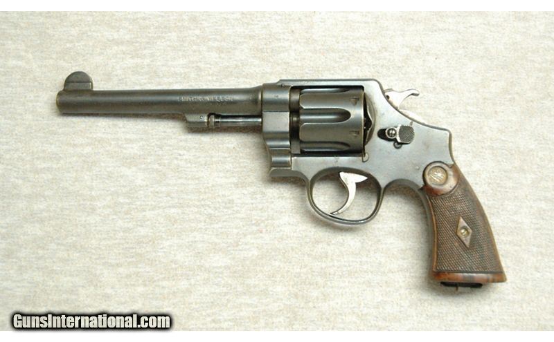 Description: Very good, light wear, small nicks and scratches, few small areas light corrosion. British proof marks, factory wood grips and lanyard ring. A good pick for S&W collectors. .45 Colt SOLD Chambers: Revolver Metal Condition: Very good Wood Condition: Very good Bore Condition: Bright Barrels: 6 1/2 Triggers: Double and single action Butt Pad: Factory grips Sights: Fixed sights Item Location: La Vista, NE |
