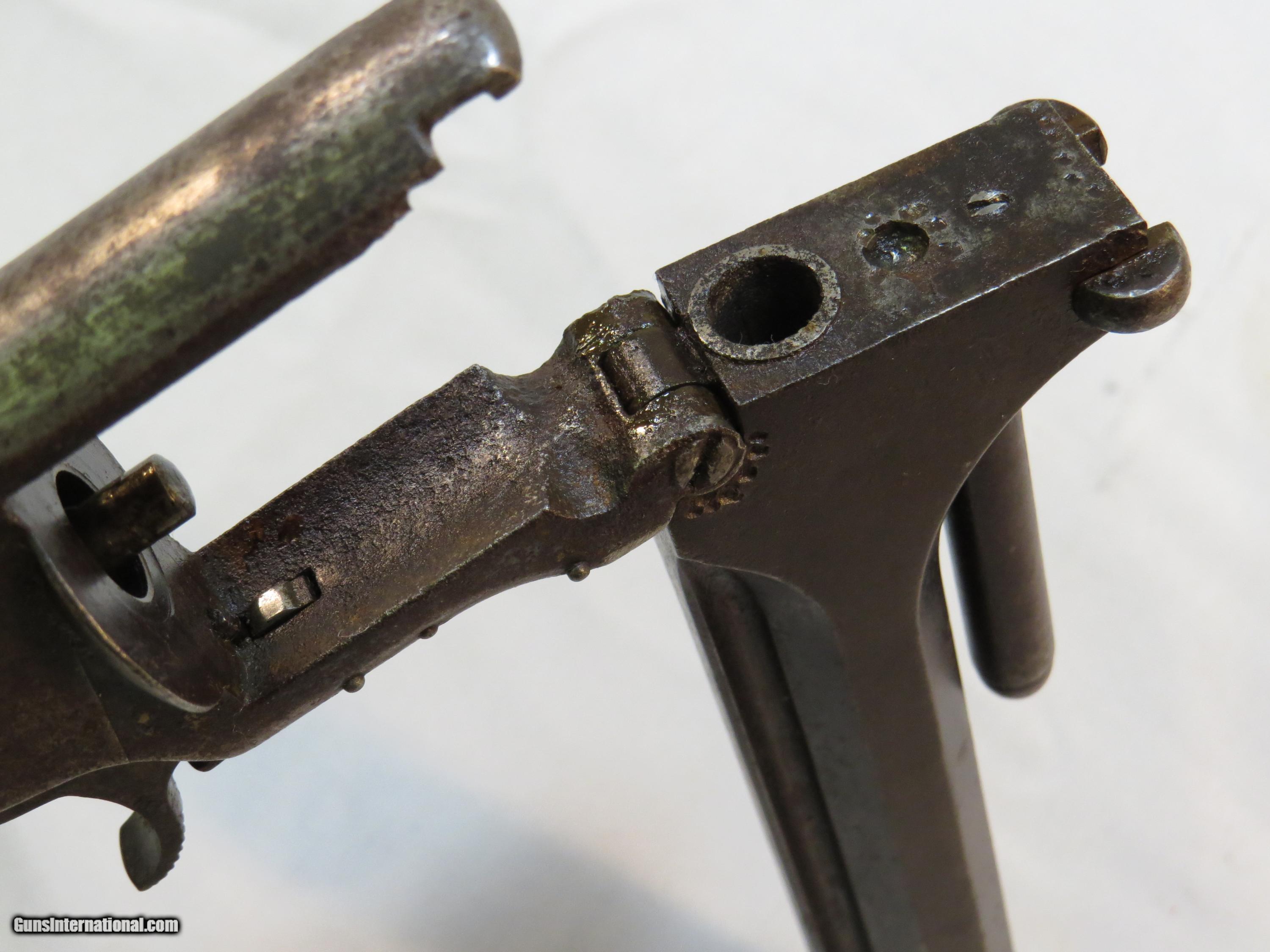 Has a large majority of the original bluing, and the timing and lockup are great. The bore has sharp lands with some pitting. The barrel has some side to side play that i believe could be removed by changing the screw where it attaches and swings from the top strap. The Smith & Wesson Model 2 Army or Old Army is similar in appearance to the Model 1, 2nd issue, and was extremely successful from a commercial standpoint. Released just in time for commencement of hostilities in the Civil War. Smith & Wesson had, in this revolver, the only weapon able to fire self-contained cartridges and be easily carried as a backup by soldiers going off to war. This resulted in a backlog of more than three years, before the company finally stopped taking orders. Approximately 77,155 manufactured between 1861 and 1874. Rare. Please Read our full disclaimer! The buyer is responsible for determining the condition of the gun, please ask for additional information or more photos if unsure before making your offer. See the pics; I show it all so you know exactly what you are getting, nothing hidden & no surprises. Further information about this item can be obtained by emailing: beammeeryahoo, or by calling: (409)554-8186. We only accept returned guns on a case by case basis depending on the circumstances, and charge a 20% restocking fee on all returned guns. Have questions, ask. All items are sold AS IS with NO warranty or guarantees, implied, expressed, or otherwise (Inquire with manufacturers to verify any warranties they may offer.) Buyers are solely responsible for determining the safety of items purchased. No firearm should be fired without having the weapon initially inspected by a qualified gunsmith. The firearms offered have NOT been TEST FIRED unless otherwise stated, but have been given a visual inspection for sale purposes only. We are not gunsmiths and can sometimes miss things. It is recommended that buyers have all firearms inspected by a competent gunsmith prior to use. A valid FFL is required for all transactions (C&R Type 3 FFL's are Not accepted). Buyers will be charged for shipping costs to an authorized FFL dealer, and will receive a copy of my FFL with the gun. Shipping is not offered to locations outside of the United States. Accepted forms of payment are charge/debit cards (Visa, Master Card), cash (Wire Transfer), money order (Preferably USPS), Cashier's/Teller/Certified Check or personal check (Item is held for up to 10 business days to allow ANY checks or money orders (except USPS) to clear.) A 3% service charge will be added to purchases made with charge/debit cards. Layaway is not offered. Returns are not accepted, however, a 20% restock fee will be charged in the rare case that a return is authorized. Buyers are solely responsible for their awareness of and compliance with all laws and regulations in their state of residence regarding firearms. By purchasing, buyer agrees to release seller from all liability, whether criminal or civil, arising from the purchase, ownership, possession, or use or misuse of purchased items, and against damages, injury or death caused by use or misuse, or defective merchandise. Thank you for your interest & please check out my other listings. SOLD Antique: Yes Manufacturer: Smith & Wesson Model: Model 2 Army Serial Number: 31411 Caliber Info: .32 Long Rimfire Manufacture Date: c.1861 |
