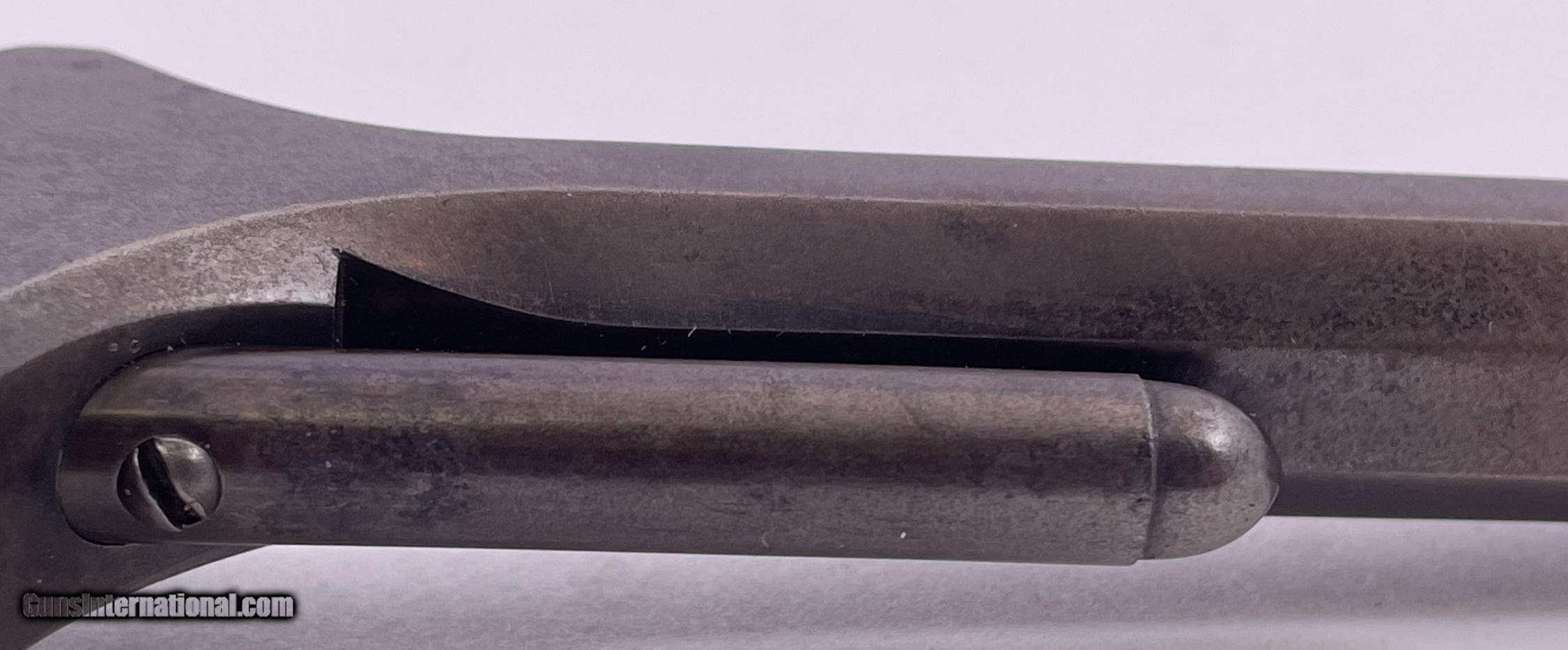 Description: This is the eary variation with only 2 pins in the top strap. Marked on right side of frame "B Kittridge & Co. Many of these Kittredge marked guns were issued to the 7th Kentucky Cavalry. See photos for condition. Mechanics are perfect. SOLD Antique: Yes Serial Number: 138 Barrel Length: 6 |