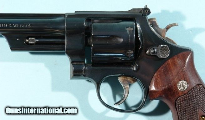 Description: 1984 SMITH & WESSON MODEL 24-3 OR 24 3 .44 SPECIAL 6 1/2" BLUE REVOLVER. Serial number "AEJ80XX" and all matching. All the factory briliant blue remains with all the case colors on the hammer & trigger. Factory adjustable rear sight and correct front sight. Excellent bore, rifling and chambers. Trigger smoothed out with no grooves for clean trigger pull(prefessionally done). Replacement Eagle coke-bottle shaped S&W medallion give it the classic feel in hand. Prime example in a fun caliber. Little use at all with only faint drag line on cylinder SOLD |