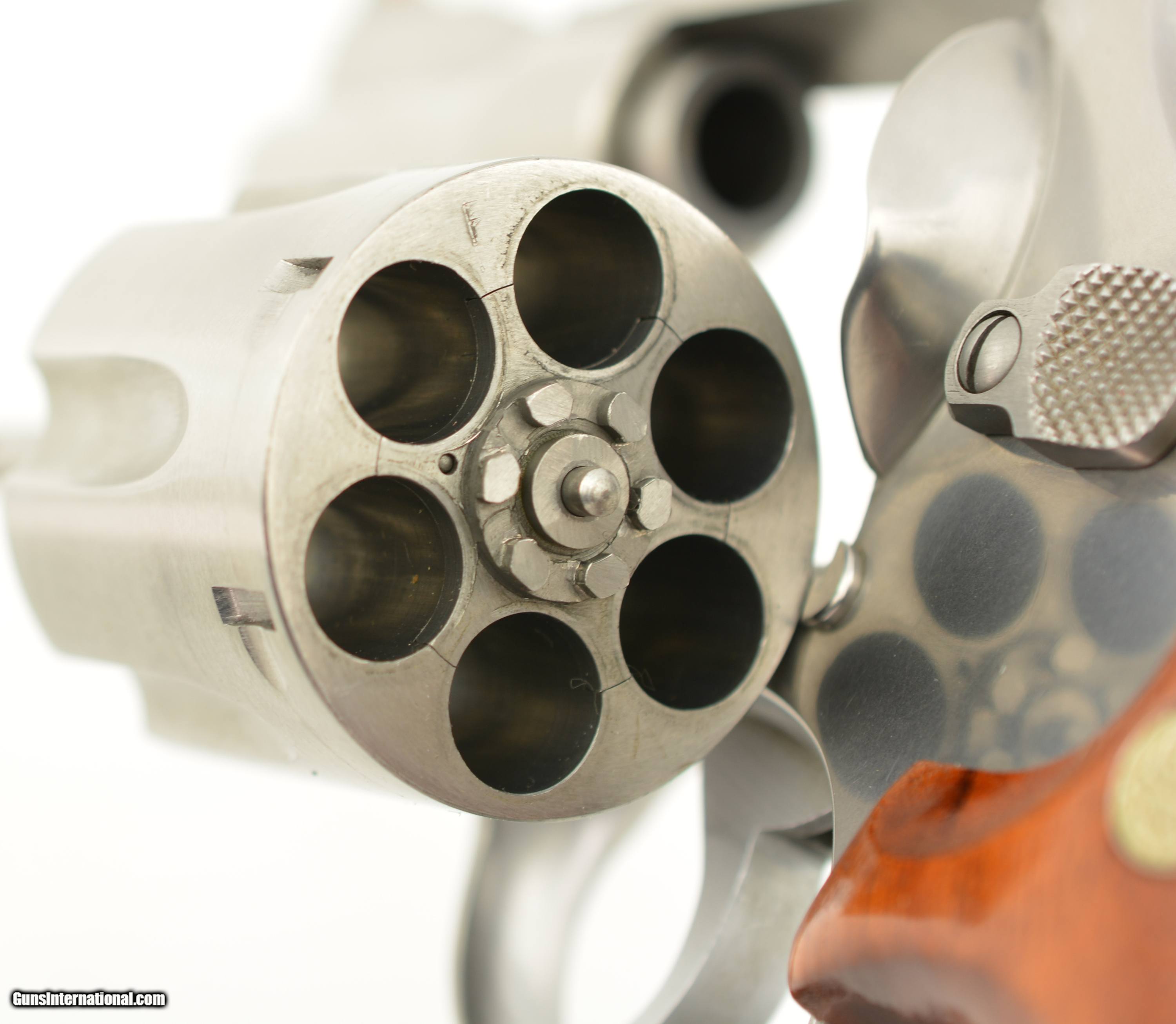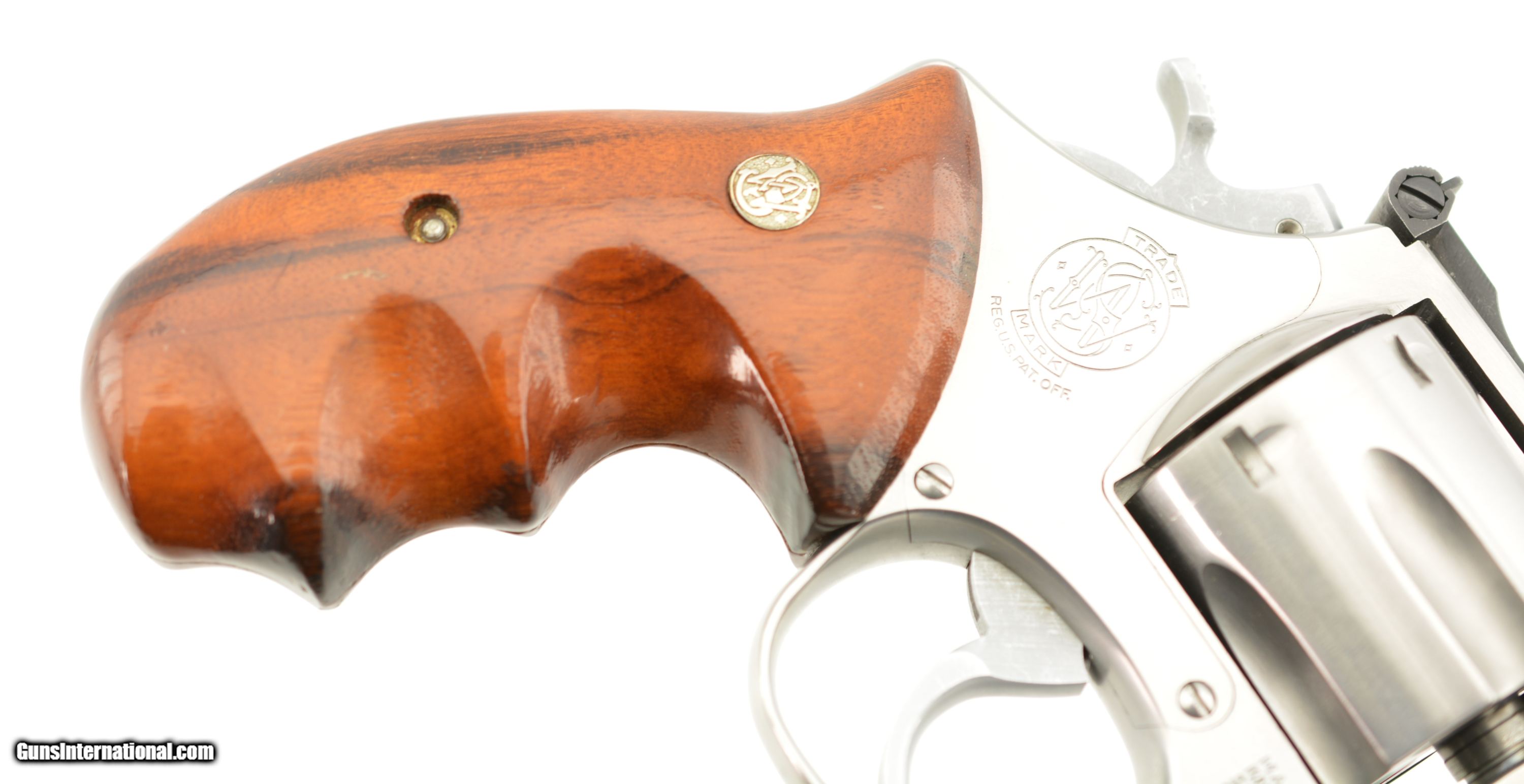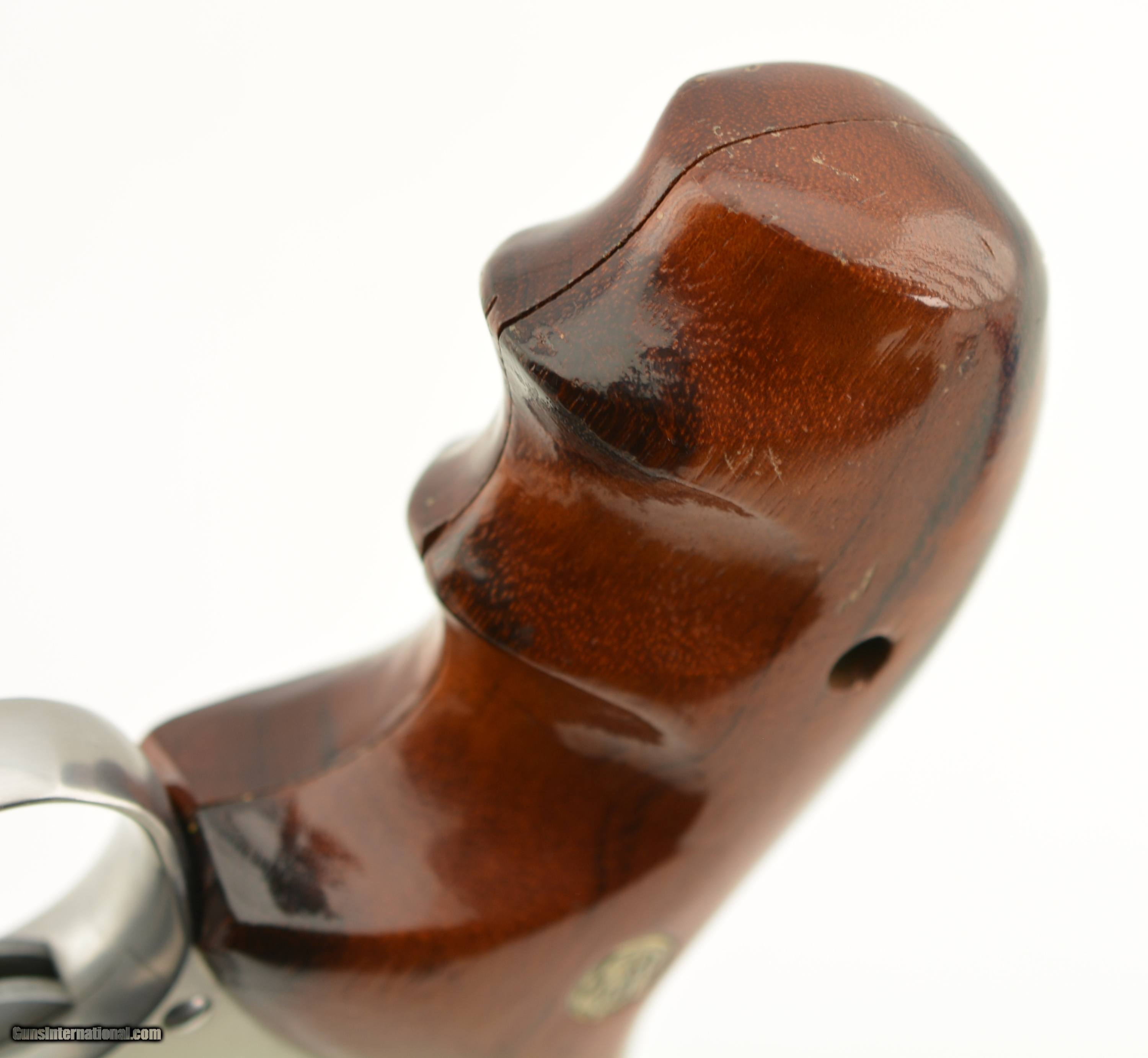 Description: Serial #ALW8190, .44 Special, 3" barrel with an excellent, bright bore. This is one of 5,000 such revolvers made for Lew Horton between 1985 – 1987, and features: a short, 3" barrel, adjustable rear sight, and round butt frame with Goncalo Alves combat grips. The revolver exhibits only hints of past use save for a very mild turn-ring, and the grips are in excellent condition with almost no handling marks or blemishes marring the original varnish. The revolver is housed in a correct, one-piece Lear Siegler box with papers and Model 624 end label (different serial number though). These are desirable revolvers, and this example rates excellent overall. FFL SOLD Manufacturer: S&W Model: 624 Serial Number: ALW8190 Caliber Info: .44 Gauge Info: .44 |