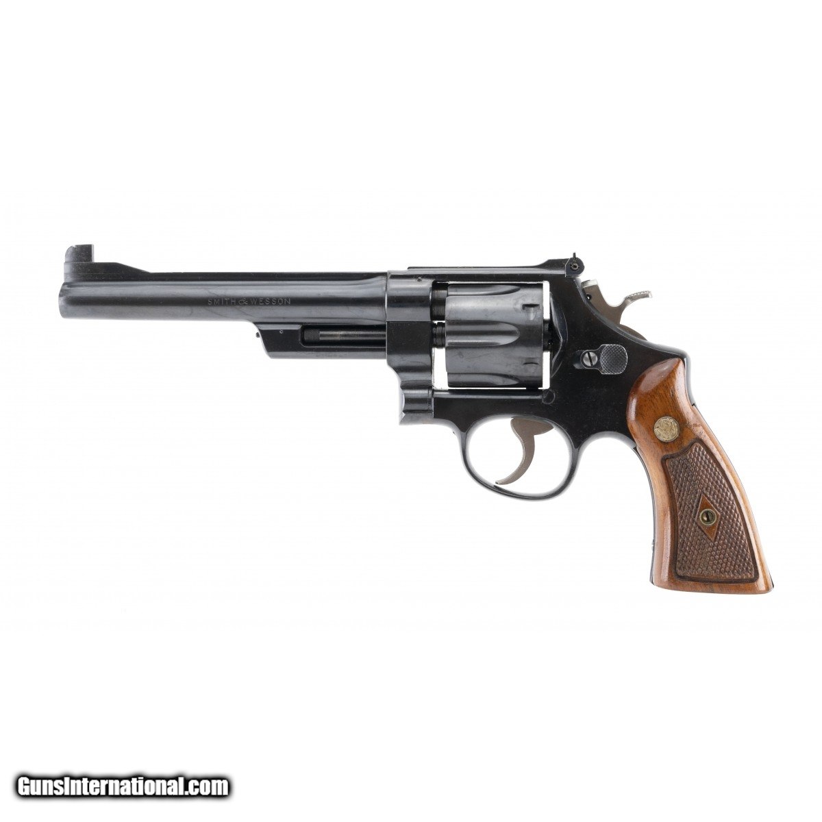Description: " 5-screw pre-model 25 Model of 1950 Target revolver. Has a 6.5"" tapered barrel. The metal has been refinished and shows wear. The bore and action are excellent. SOLD |