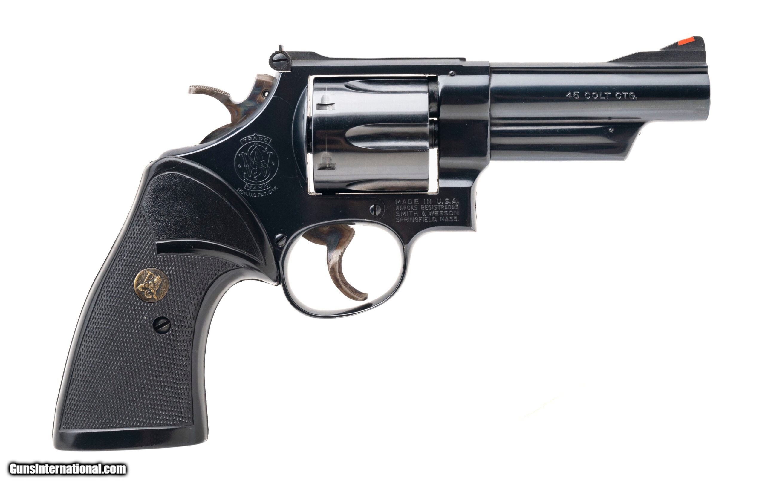 Description: "SN: N736572. 1980's Vintage, .45 Colt with a 4"" pinned barrel. Bore is bright with strong rifling. Rare N-frame revolver. Blued finish is in very good condition. Pachmayr grips are in very good condition. Overall condition is very good. SOLD |
