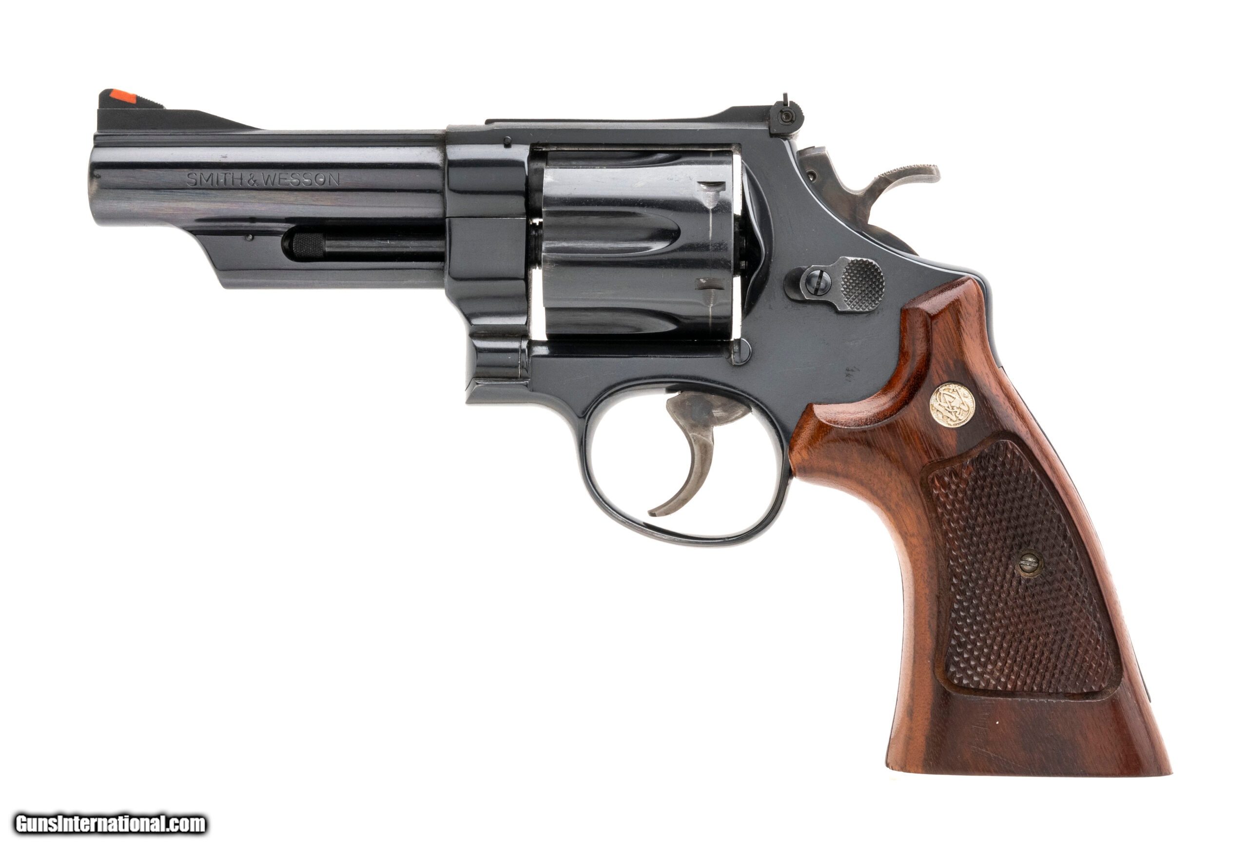 Description: "SN: N846539. .Made around 1980, .45LC with a 4"" barrel. Early model 25-5 with a pinned barrel and a smooth trigger job. Has about 92% original blue finish with light carry wear. The checkered target stocks are very good also. A very desirable N frame S&W revolver. SOLD |