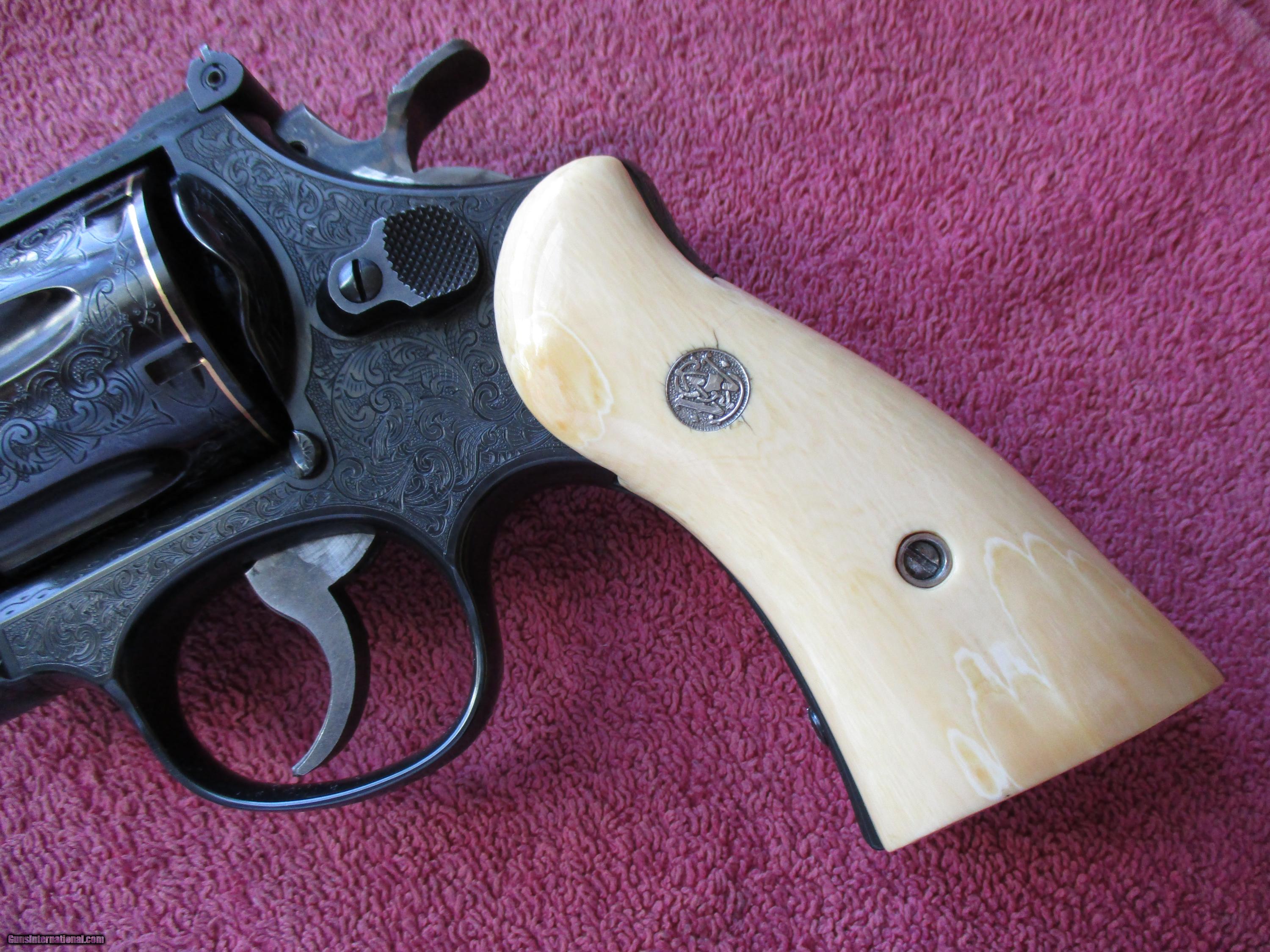 Model of 1955 45 Target 4'BBl. .45Colt, Master Engraved with Gold Inlays By Michael Gouse Ivory Stocks Mint Beautiful!