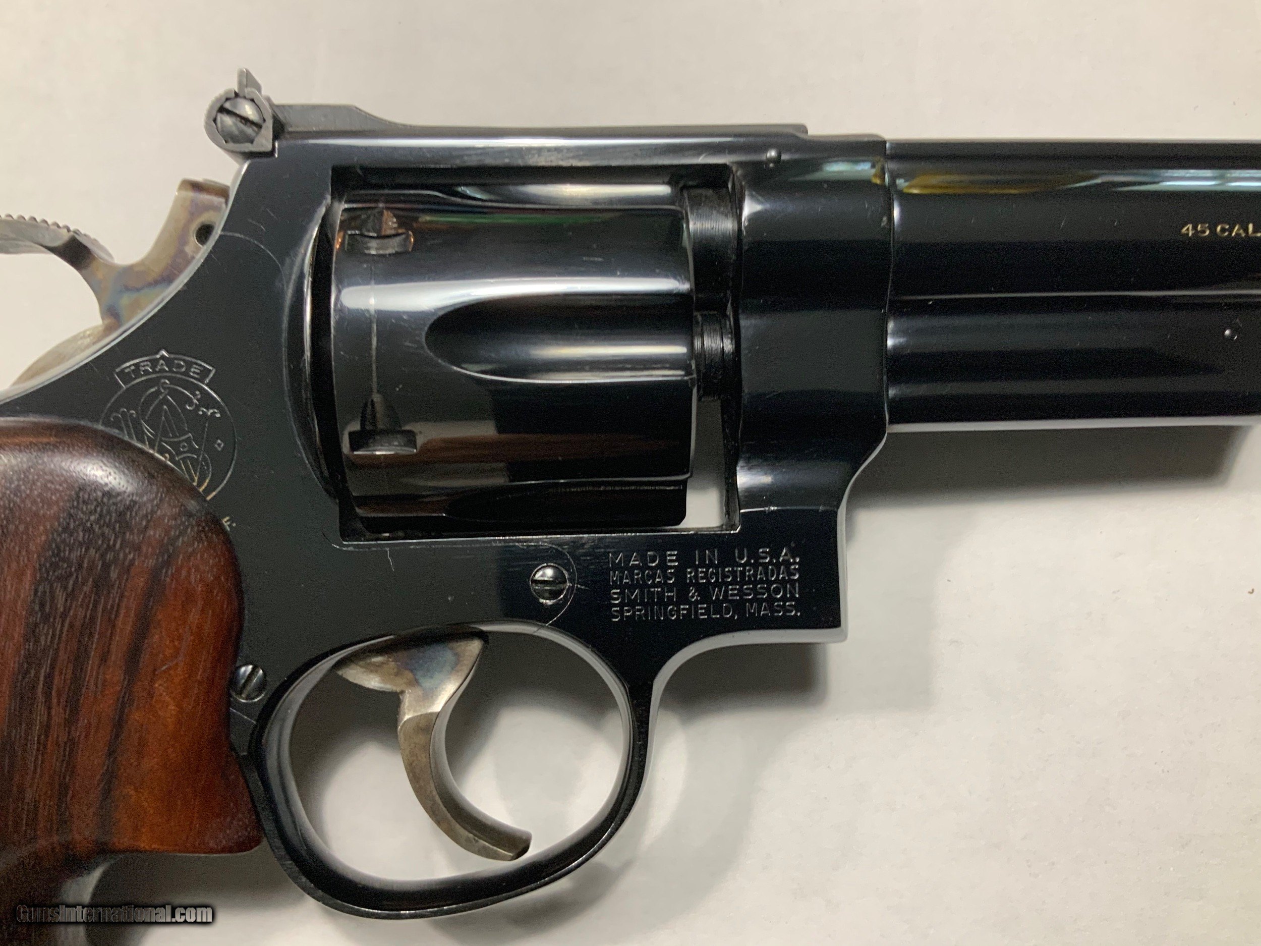 Description: S & W model 25-2 ACP. Also fires .45 auto rim, which has always been my choice. Revolver is in very nice condition and a great shooter. Have only taken it to a range. Has signs of normal use as you will see, magnified by pics, but an accurate description. Has Hogue grips on it and will send grips it came with. Also half moon clips, one original set and some extras. The bluing is incredible, the older S & W brite blue! Will only ship to an FFL and only where gun is legal to own. Copy of my driver's license will be included for transfer. If shipping from an FFL is required, there will be an additional $20.00 fee. Shipping will be included in the price. Any questions please call Tom at 239-980-4173. Thanks for looking. SOLD |