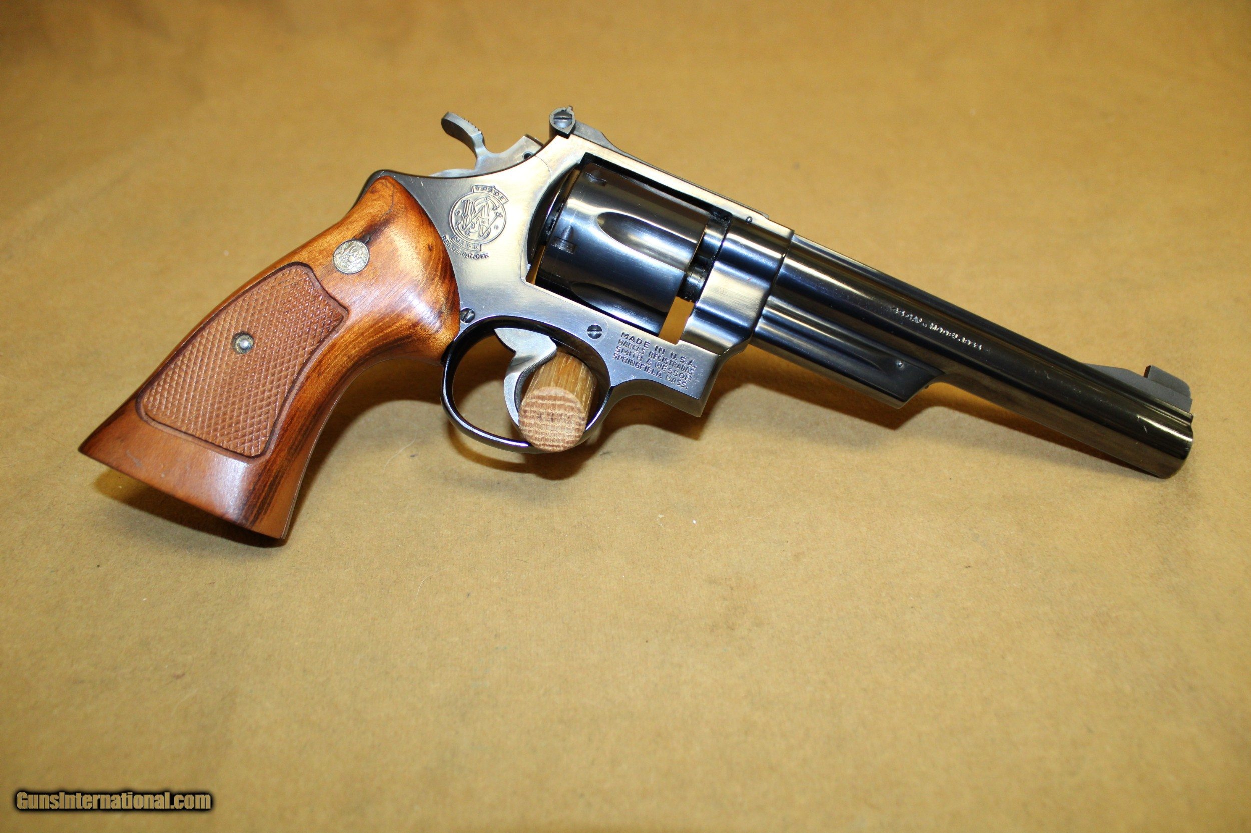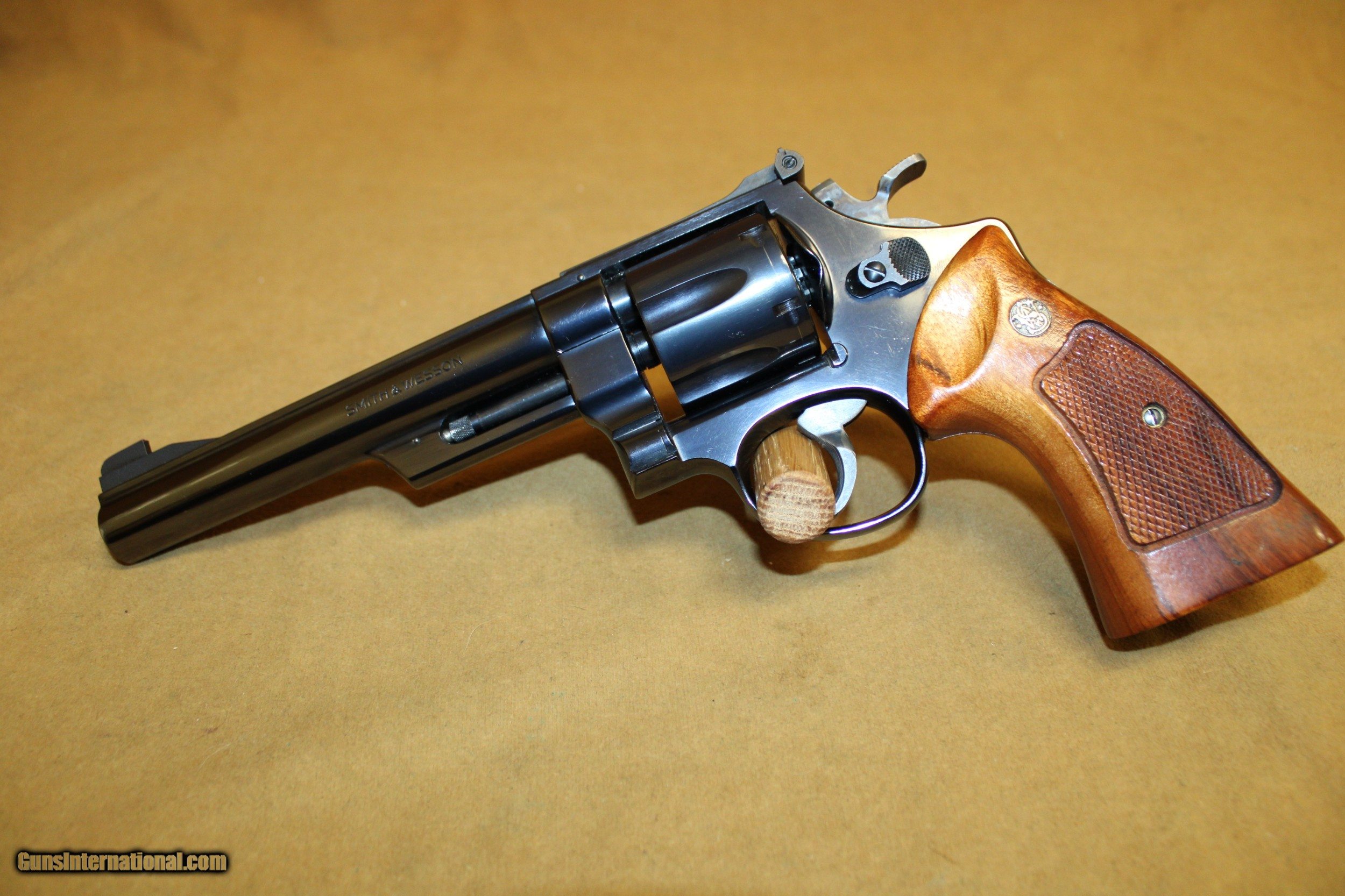 Description: The overall condition of this Model 25-2 is excellent, with only a tiny bit of muzzle wear. The target grips are fine, and the case color on the target hammer and trigger is strong. The bore is like new and shiny. This gun comes with all the giblets: paperwork, 5 moon clips, S&W tools, and presentation case. All items are also available for sale in our brick & mortar store and are subject to prior sale. Think long, think wrong. Payment On firearms, we typically only accept credit cards or money orders/cashier's checks.