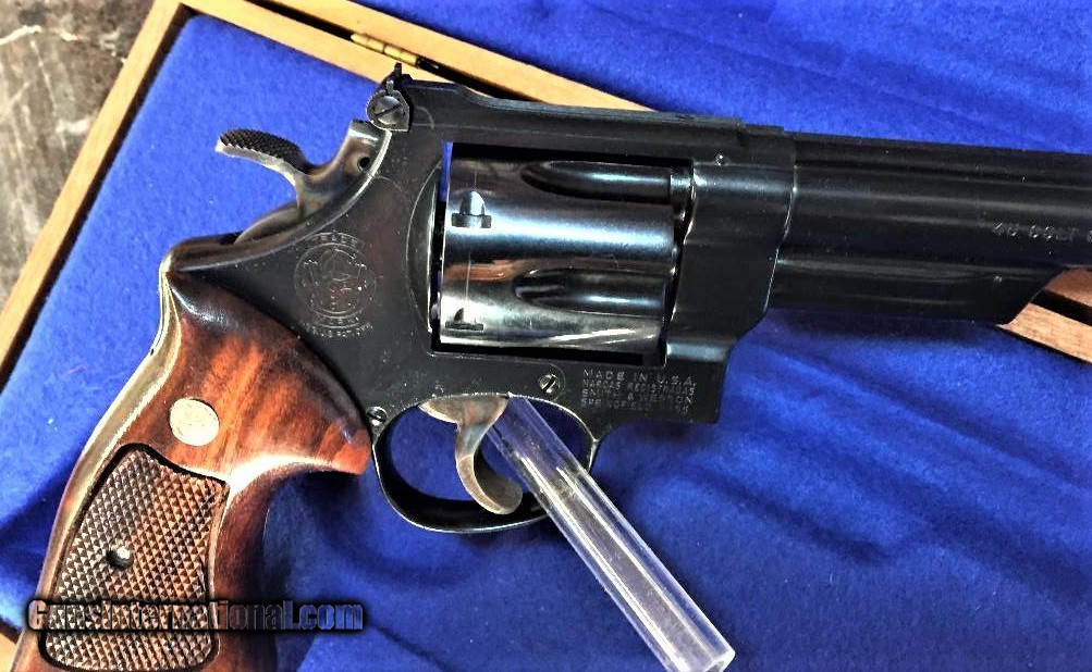 Description: Nice cased Model 25-5 8 3/8. 45Colt. Gun is as new in original wood box.Target trigger/hammer/grips. light drag line on the cyl. but gun appears as new unfired. Box interior is new. Original paperwork, no tools. $1300.00 FFL req. Shipping 30.00 lower 48. C/C add 3%. SOLD Manufacturer: Smith and Wesson Model: 25-5 Serial Number: N676757 Caliber Info: 45 Condition: excellent |
