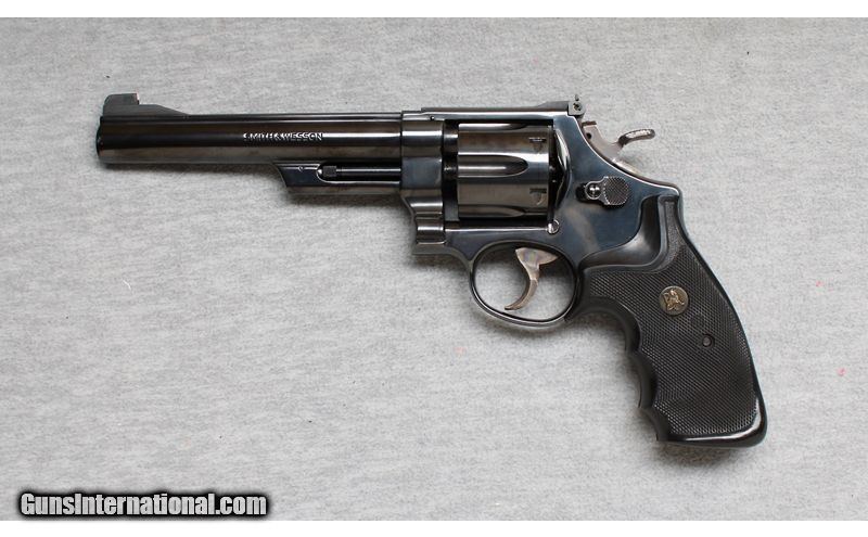 Description: Excellent, few small nicks and scratches. Large frame .45 caliber S&W revolver with 6 1/2" barrel, adjustable sights, wide target rigger and hammer, and Pachmayr grips. A great choice for home defense or for collectors. .45 Auto SOLD Chambers: Revolver Metal Condition: Excellent Wood Condition: Grips are excellent Bore Condition: Bright Barrels: 6 1/2 Triggers: Double and single action Butt Pad: Pachmayr grips Sights: Adjustable Item Location: La Vista, NE |