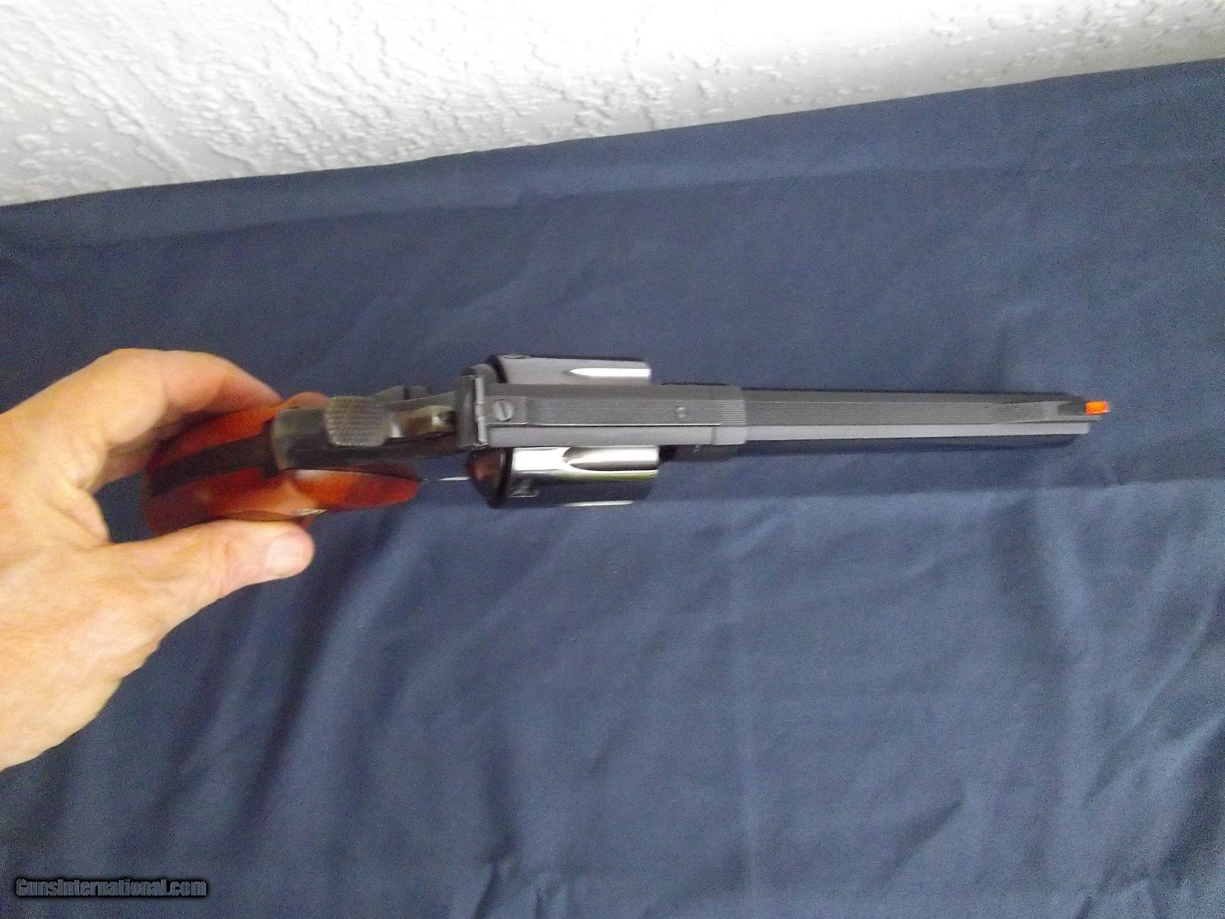 Description: Up for Sale is my Smith & Wesson 25-5 Revolver with the 6" Barrel and Blued Finish in the Presenttion case. It is from my personal collection. It is in excellent condition in the 98-99% category. It comes in the presentation case with the papers and the tools .It has the 3 Ts. The only issue is there is a crack on the right side on the plastic inner lining and a few light scratches on the top of the wood case. I have shown these in the pictures. I don't think any one will be disappointed with this piece. I have priced it fairly. I will be listing more of my vintage Smiths over the next few days. It will be shipped by Priority Mail. Postage cost is $50.00 Thanks for looking. SOLD Handgun Caliber: .45 Colt Manufacturer: Smith & Wesson Model: 25-5 Serial Number: N660252 Barrel Length: 6 Condition: 98-99% Finish: Blue |